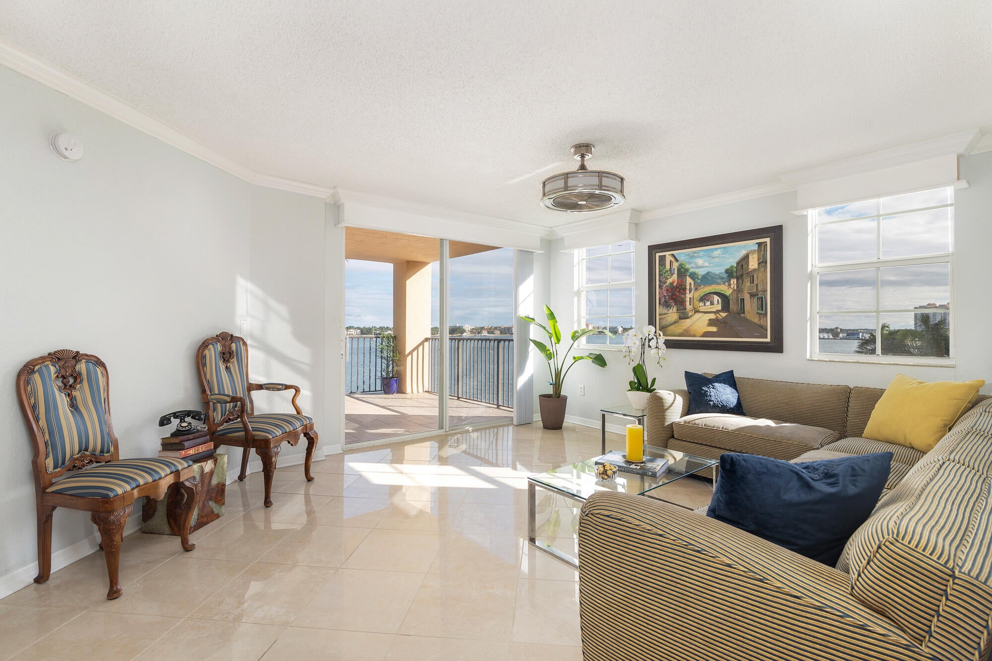 Extraordinary Panoramic Intracoastal Water Views! Picturesque views of Palm Beach Island and Downtown West Palm Beach! This rare 3BR/2BTH corner unit in Flagler Pointe features SE exposure for the best Florida sunrises. Bright and airy open unit with tile floors. Kitchen boasts granite countertops, stainless steel appliances and an abundance of cabinet space. Large balcony overlooking the North Flagler Drive promenade. Primary bedroom features gorgeous water views, a renovated ensuite bath with marble frameless shower and vanity. Two guest bedrooms boast water views as well. The building features a concierge, pool, gym, and onsite manager. Unit has two garage parking spaces and large same floor storage unit . Close proximity to Palm Beach Island, CityPlace, The NORA District & PBI