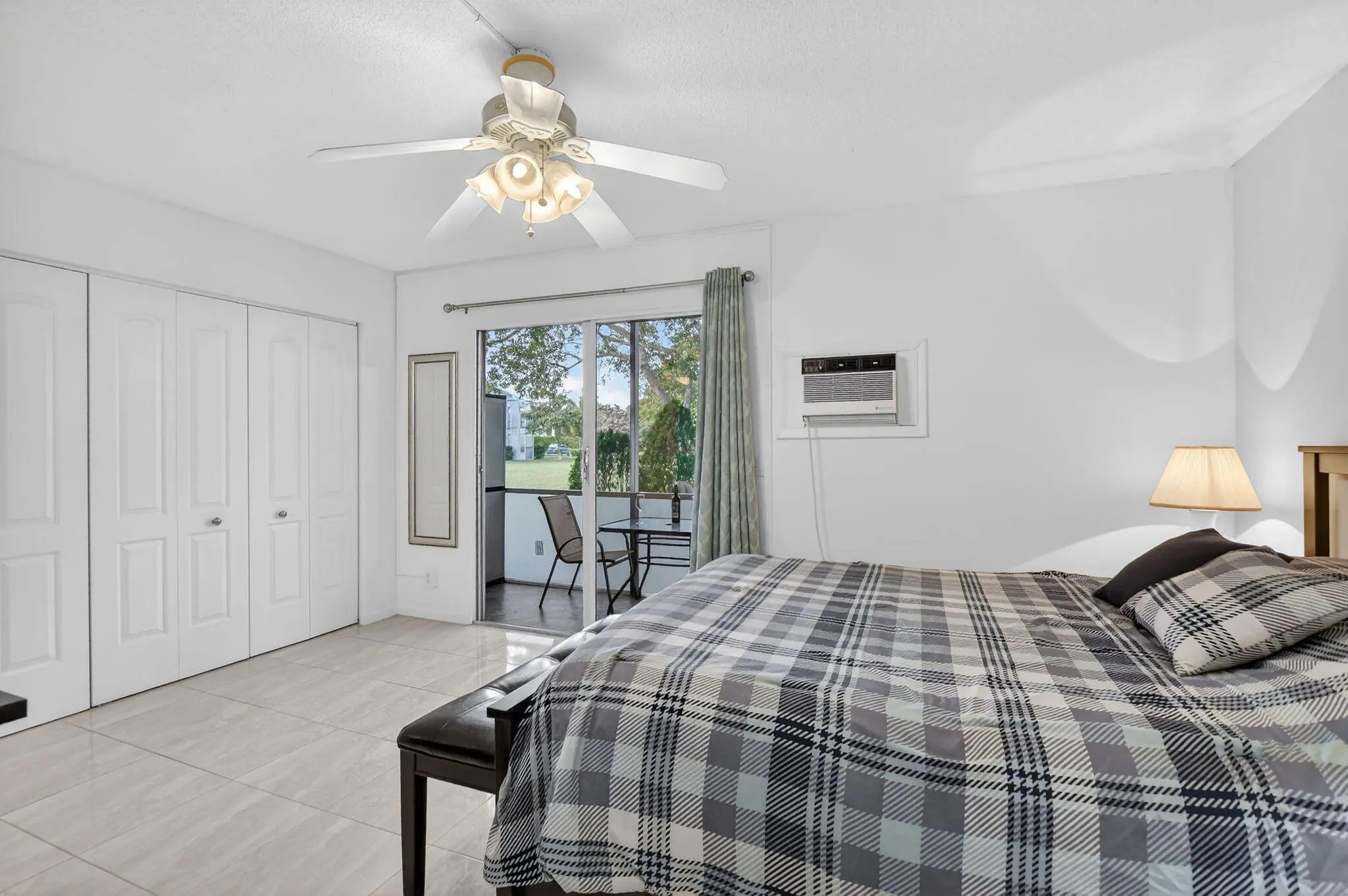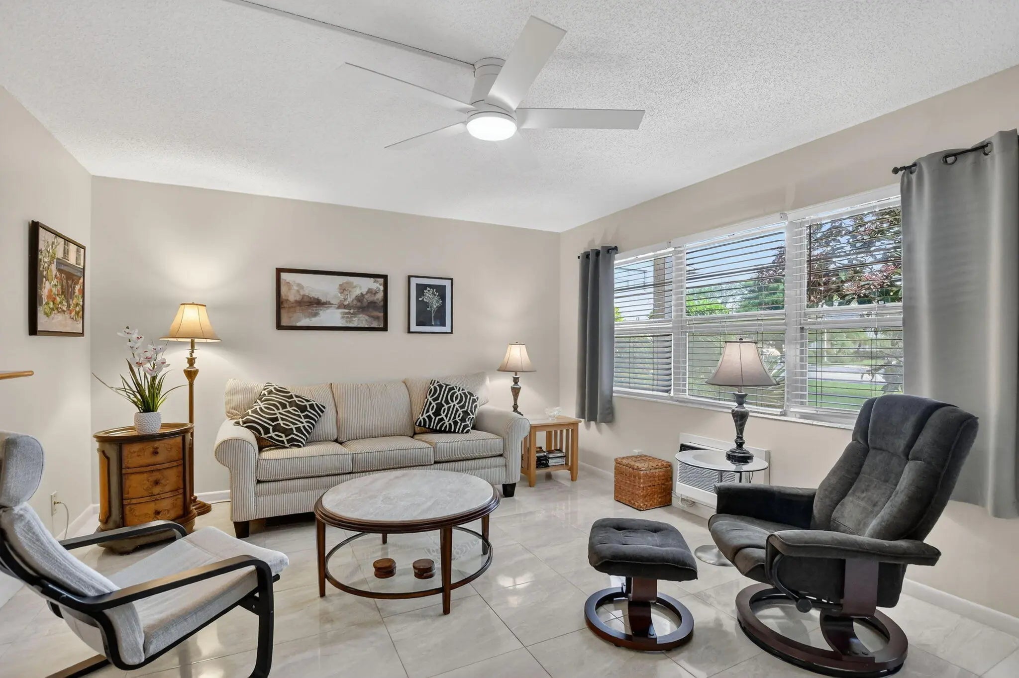 Light and bright first-floor 1-bedroom, 1.5-bath condo featuring a rare private outdoor terrace with barbecue area. The unit offers tile flooring throughout and is fully furnished, turnkey, including a sofa bed ideal for guests. Enjoy relaxing or entertaining on the spacious private patio with seating and grill. Located in a quiet section of Century Village Deerfield Beach, a desirable 55+ community. Residents enjoy resort-style amenities with an active lifestyle, including a grand clubhouse with a 1,500-seat theater, plus proximity to the beach, shopping, dining, and more. Move-in ready.