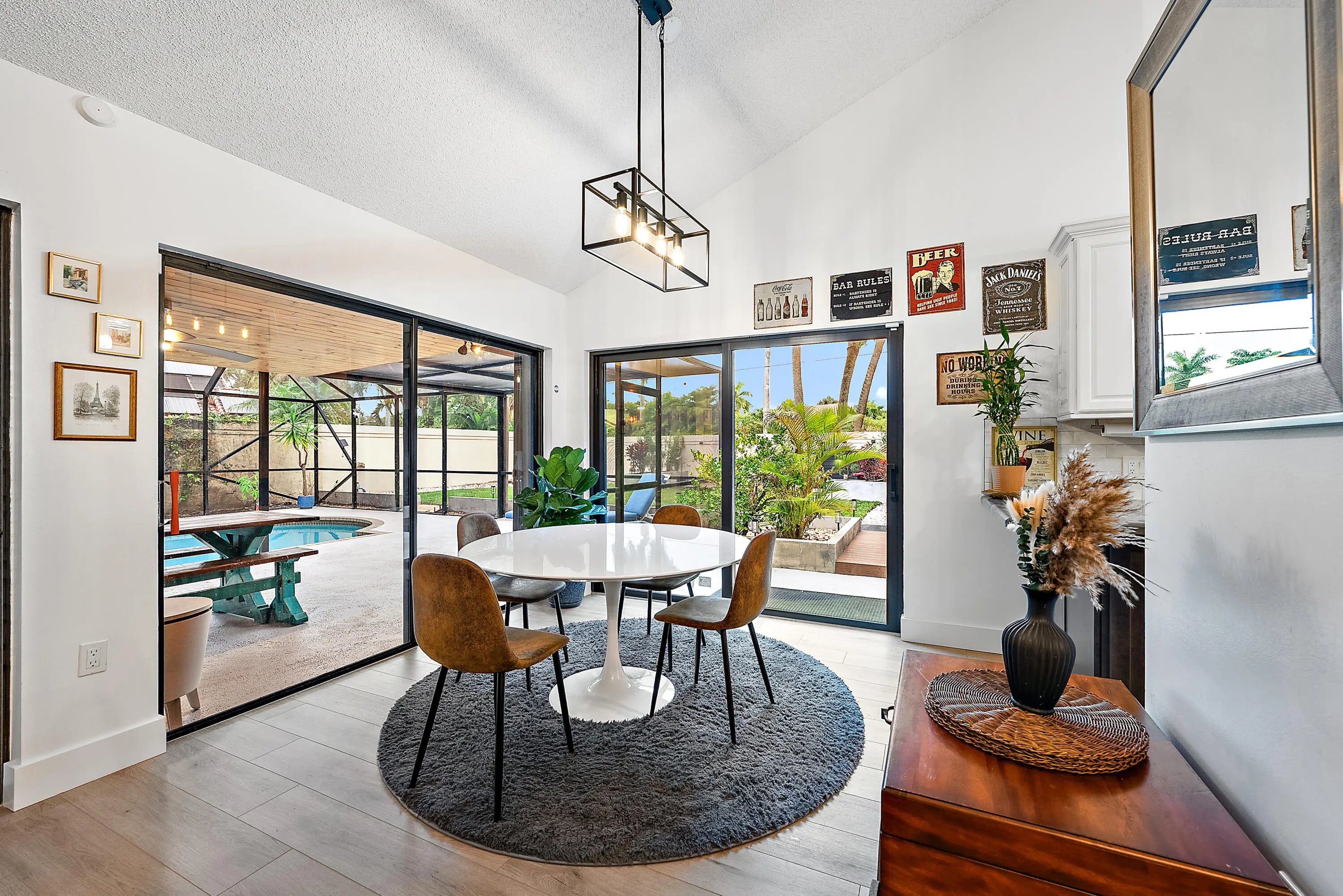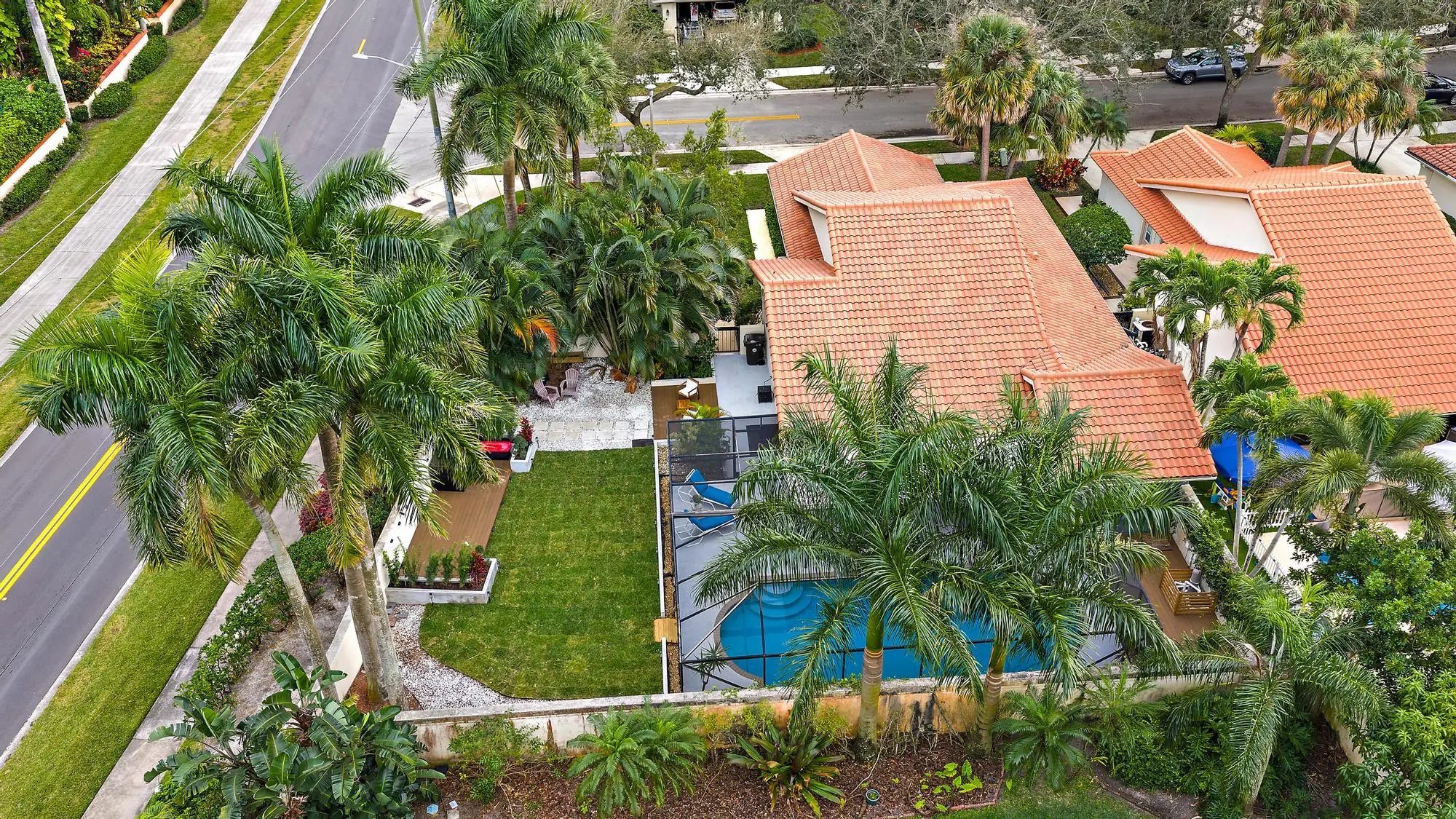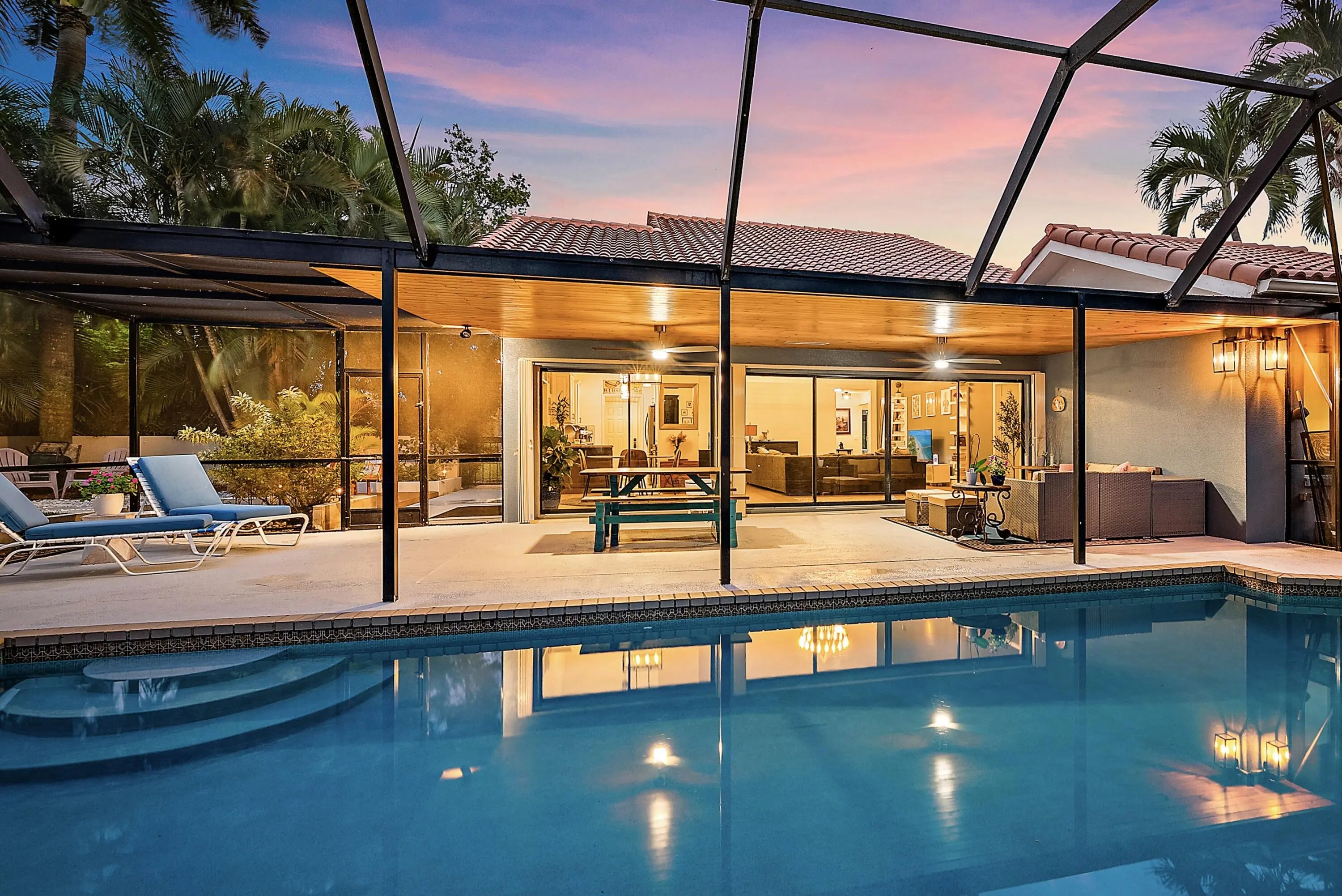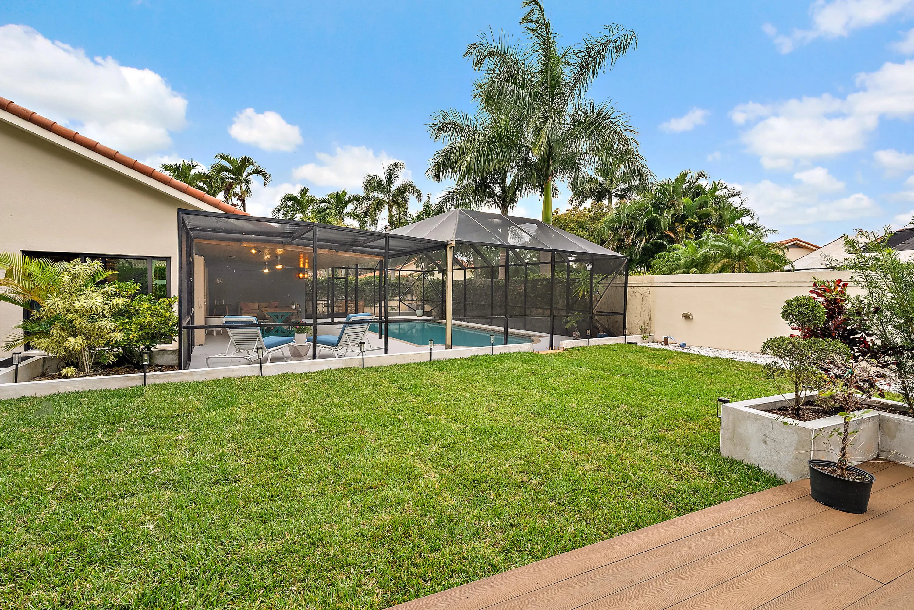 Welcome to this renovated Mediterranean/Spanish-style home offering convenient access to downtown West Palm Beach, beaches, shopping, and I-95. The home features 3 bedrooms, 2 full baths, with one bedroom as spacious loft-style across two levels. Inside are volume ceilings, an open split floor plan, and new luxury vinyl flooring installed in 2025. Major upgrades include a new AC (Sept 2025), whole-home water filtration system and impact windows and doors (2024). The kitchen features marble countertops, and the bathrooms have been updated.The private backyard offers professional landscaping, full wall enclosure, three custom decks, and a large pool with covered patio. Located in Saratoga Pointe with access to parks, pool, tennis, pickleball, volleyball, and playgrounds.