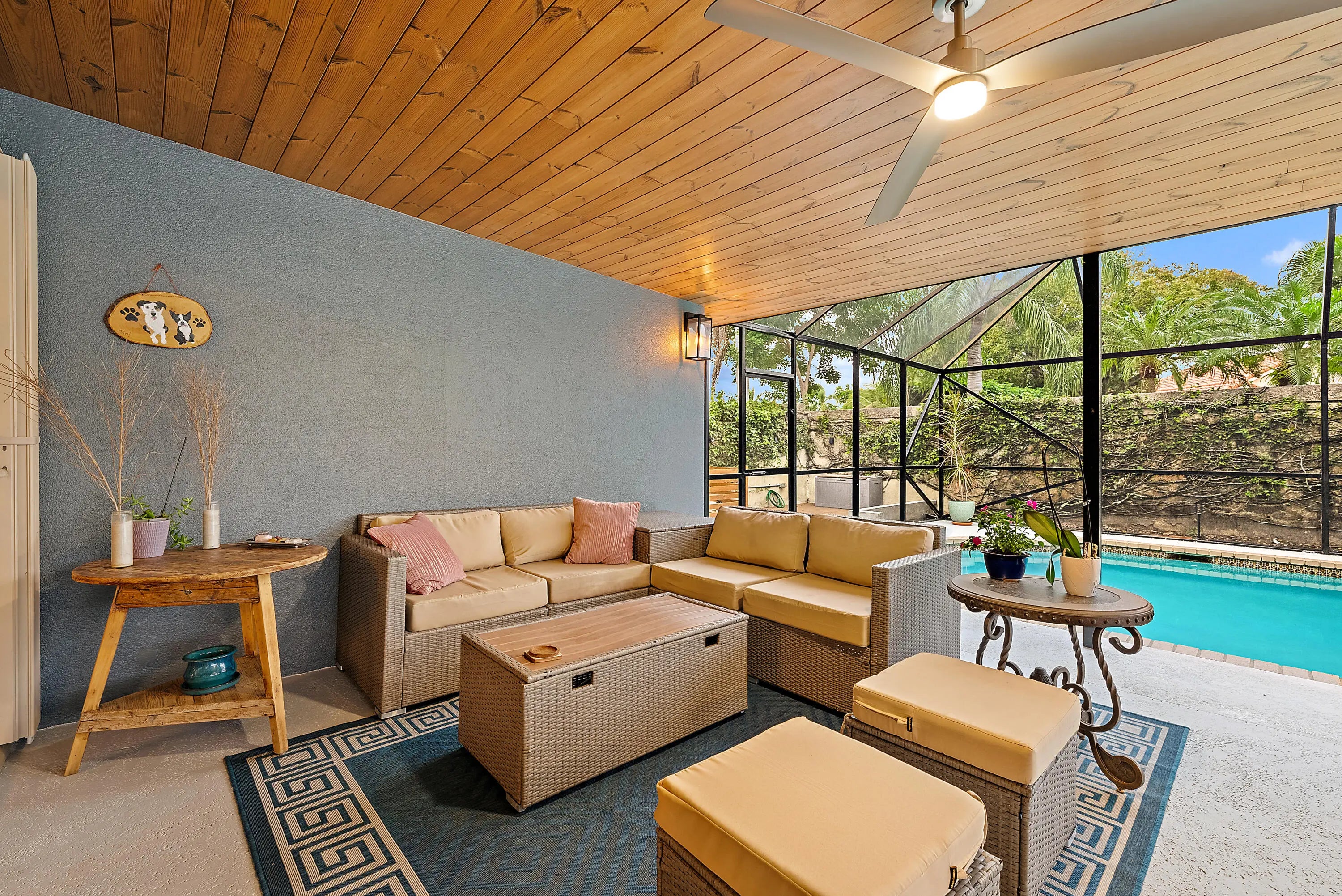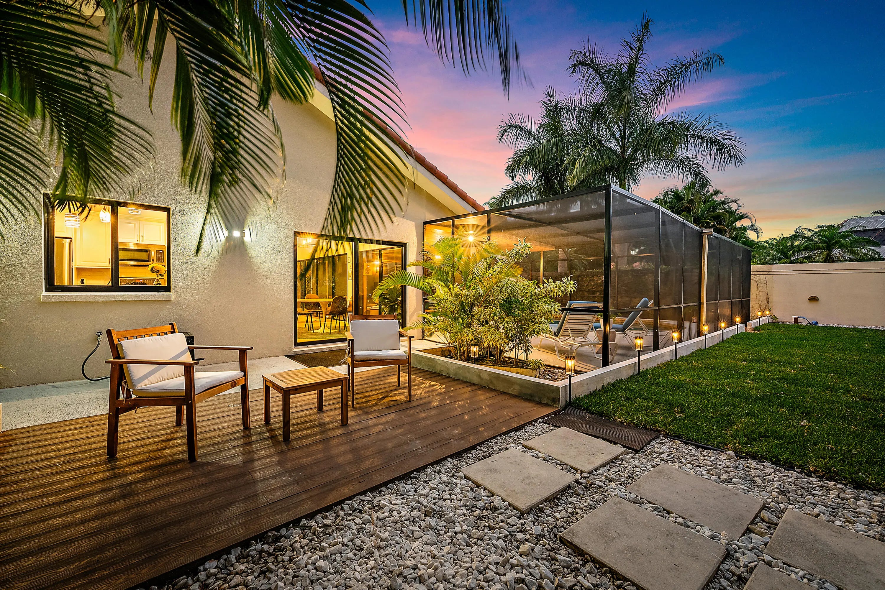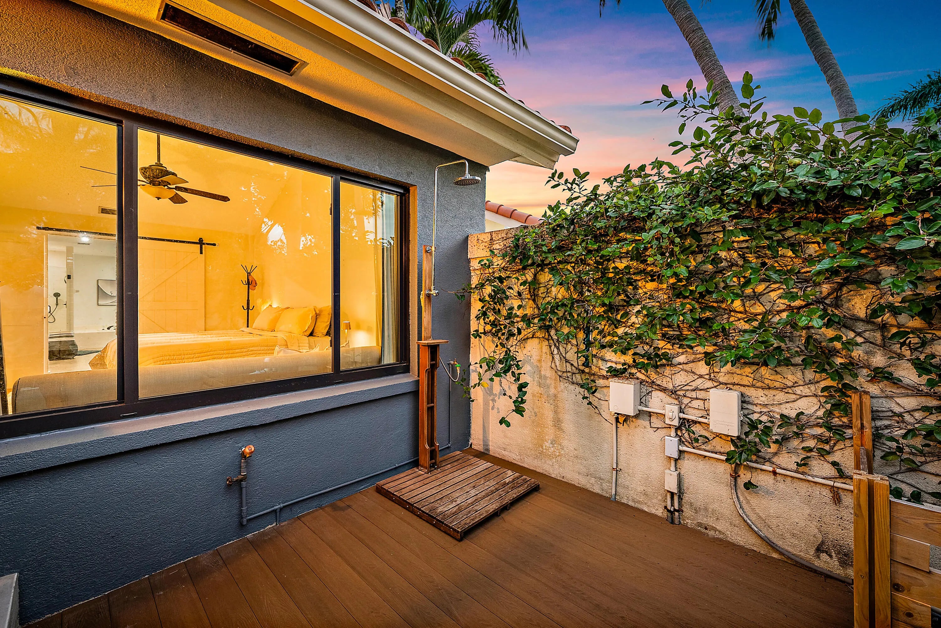 Auto Sprinkler, Covered Patio, Custom Lighting, Deck, Outdoor Shower, Screened Patio