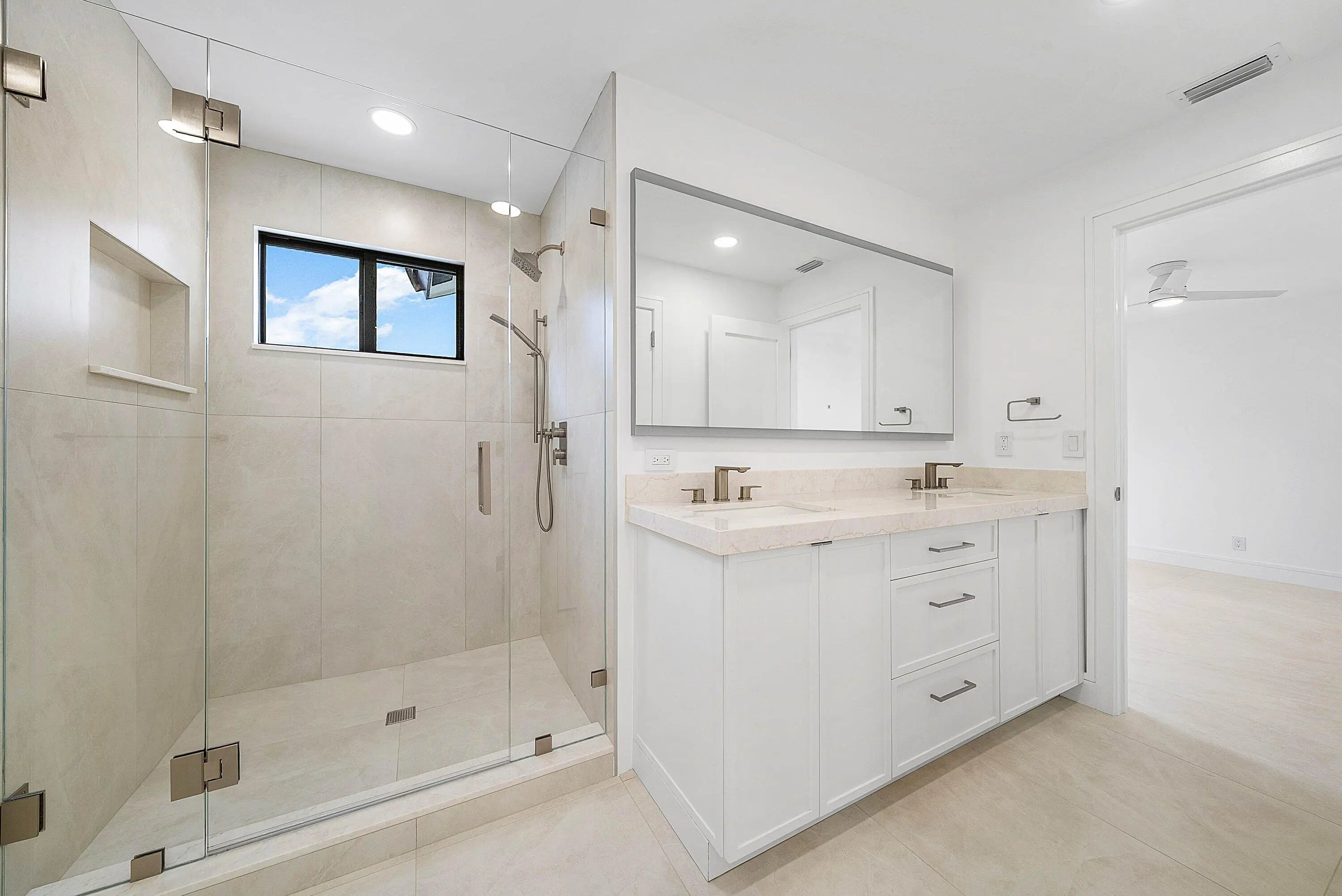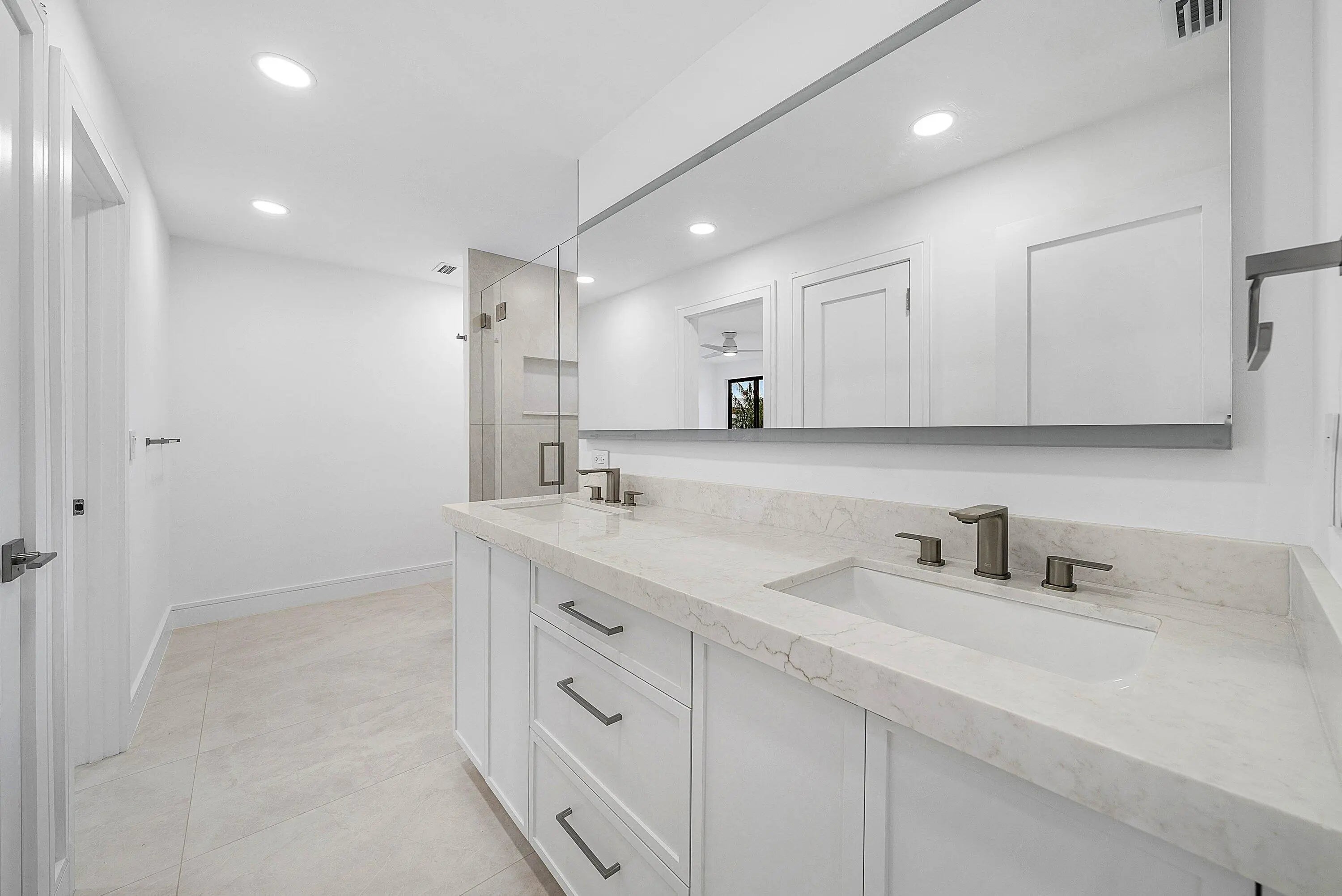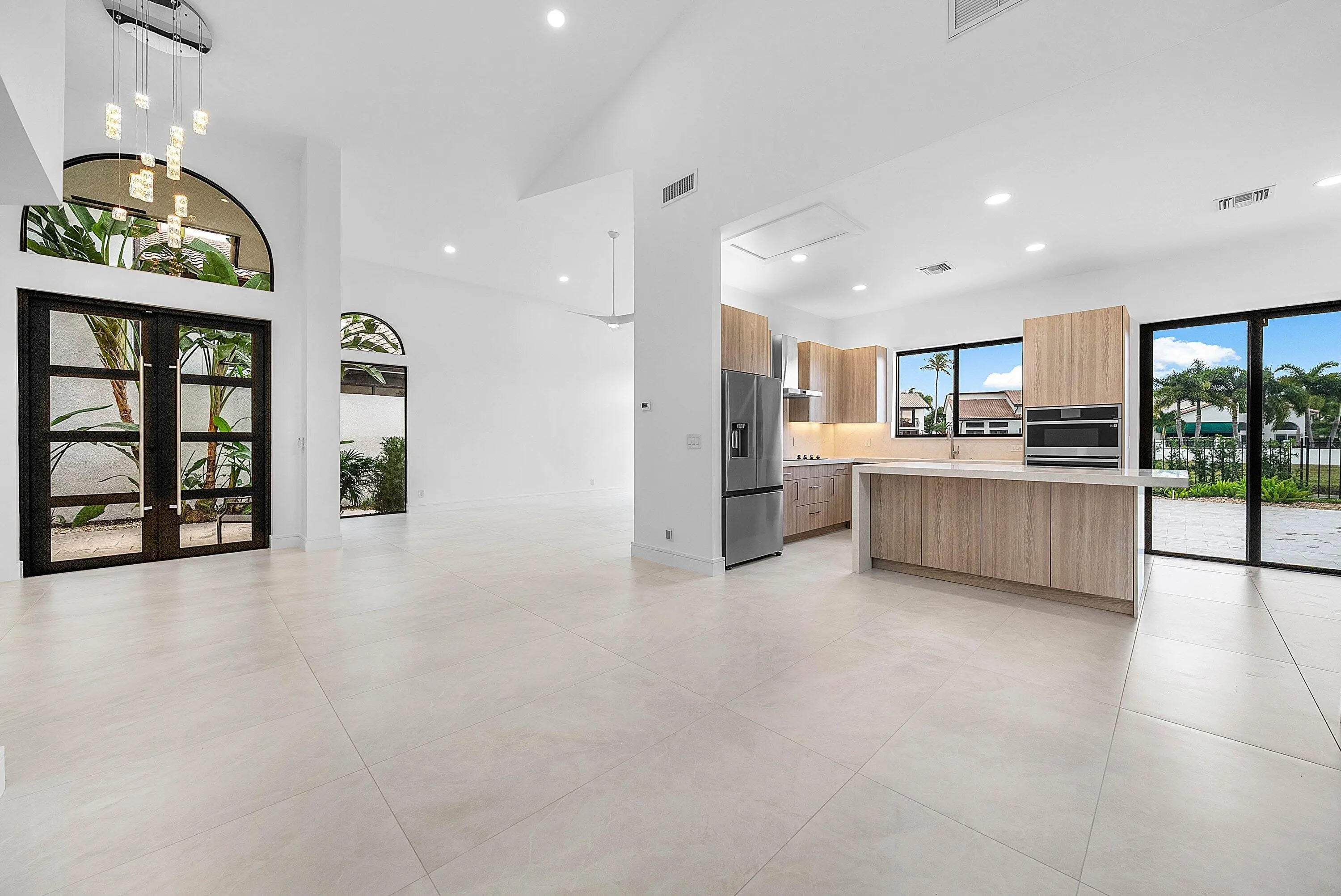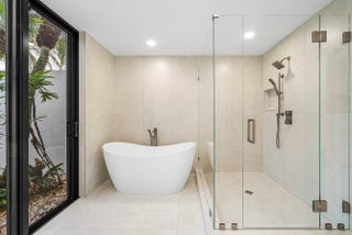 Stunning, and fully renovated 3 bedroom, 2.5 bath residence located in the gated Villa Flora section of Boca Pointe (optional membership). This light-filled, two-story home has been upgraded with high-end premium finishes throughout. A warm modern contemporary design with a calm, elevated feel. Spacious primary suite on the first level featuring a freestanding tub, glass shower doors and double vanity. New porcelain tile flooring runs throughout, complemented by the custom kitchen with all new cabinetry, quartz countertops, and new appliances. Jack and Jill bathroom and loft upstairs. The private outdoor space features a fully refurbished pool, marble pool deck, and updated landscaping. All new impact windows and doors. Custom built-in closets and shelving are installed throughout.