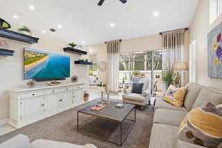 IMMEDIATE PREMIER GOLF MEMBERSHIP AVAILABLE WITH THE PURCHASE OF THIS HOME. Move right into effortless, turnkey living in this furnished and beautifully renovated residence located in the desirable Sandpiper Cove neighborhood within the Platinum Club of America, The Club at Ibis. Offering both style and peace of mind, the home features a NEW ROOF (2021) along with accordion hurricane shutters, making it an exceptional opportunity for easy Florida living.This thoughtfully updated 3-bedroom, 2-bath home is filled with designer touches throughout, including designer light fixtures and fans and a versatile den/third bedroom enhanced with custom built-in office desk and shelving. The kitchen has been refreshed with refaced cabinetry, additional custom cabinetry, and replaced quartz tops.Bathroom updates include new vanities installed in 2019, while the primary bath shower was replaced in 2022, along with a new hot water heater. Additional upgrades further elevate the home's comfort and quality, including a hurricane-impact front door with expertly etched glass for privacy and aesthetic appeal, a 4-ton HVAC system installed in 2018 by Stephen K. Denney, Inc., and a UV air-quality system installed by Service Experts to enhance indoor air quality. Step outside to enjoy a private screened patio finished with Artistic Concrete pavers, providing a tranquil space for morning coffee or evening relaxation. Located within Sandpiper Cove, an intimate enclave within walking distance of The Club at Ibis, residents enjoy exclusive access to the Sandpiper Cove community pool along with the unparalleled lifestyle Ibis is known for. Ownership includes access to a 90,000-square-foot clubhouse, three Nicklaus-family championship golf courses, five dining venues, a state-of-the-art fitness complex and spa, and premier tennis and pickleball facilities. Beautifully furnished, thoughtfully upgraded, and ideally locatedthis residence offers a rare opportunity to enjoy refined club living with Immediate Premier Golf privileges available.