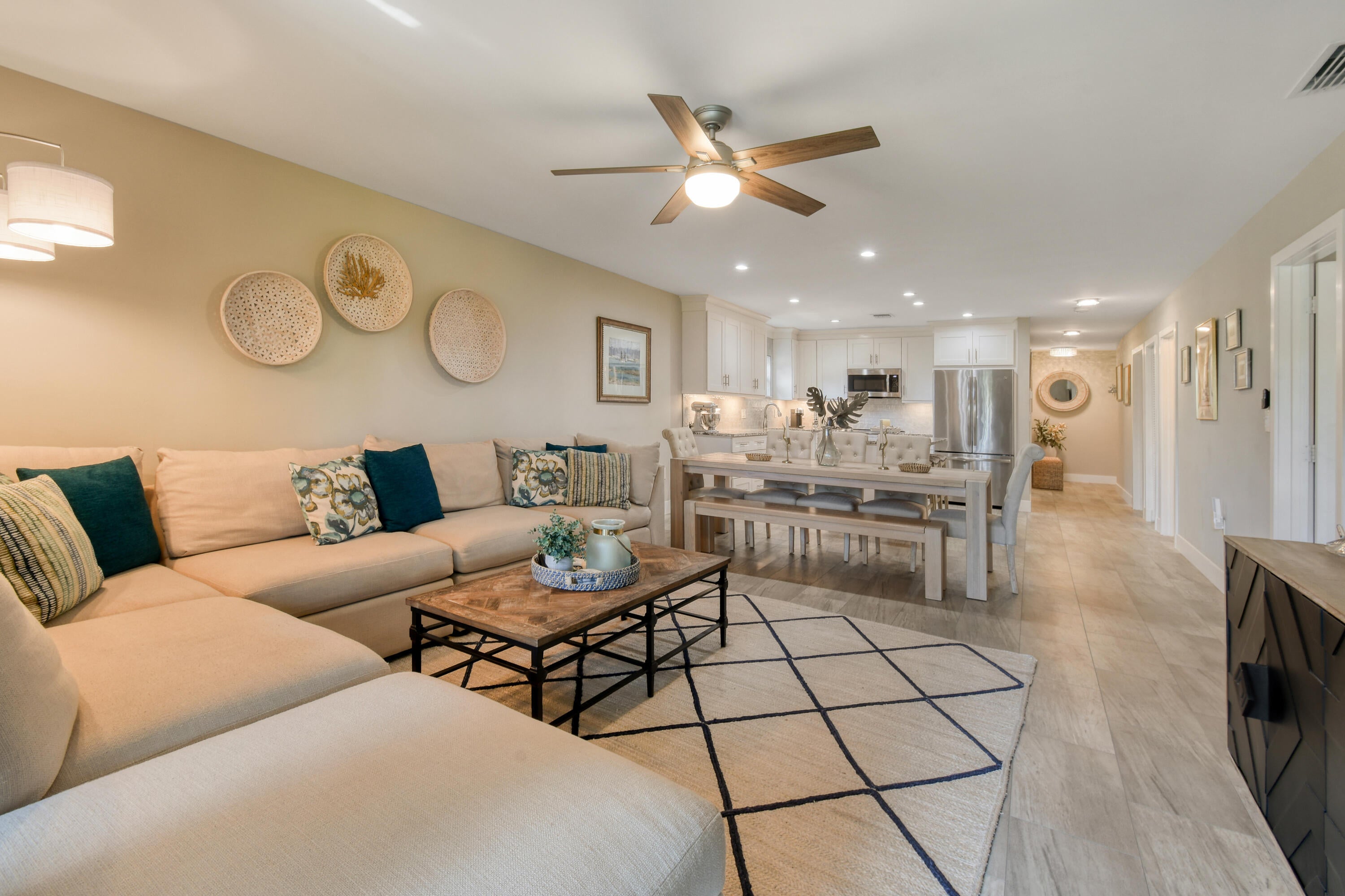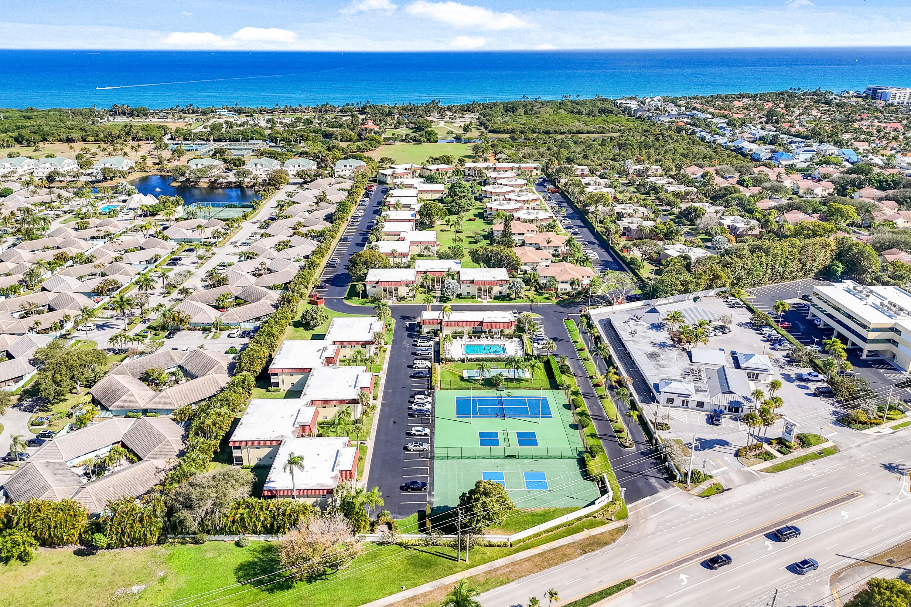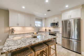 This beautifully renovated 3-bedroom, 2-bath condo in Jupiter, FL delivers the ultimate coastal lifestyle with style, comfort, and walkability. Thoughtfully updated from top to bottom in 2018, this 1,315 A/C sq ft residence is built with solid CBS construction and features a highly desirable split-bedroom floor plan, offering privacy and flexibility for guests, family, or a home office. The home feels fresh and modern thanks to LVT flooring throughout, smooth textured walls, new baseboards, and a newly painted interior, all enhanced by energy-efficient LED lighting, impact windows and doors, new fans, and updated window treatments. At the heart of the home, the renovated kitchen is both functional and elegant. White shaker soft close cabinetry, stone countertops, a tile backsplash, and LGstainless steel appliances create a timeless look, while the center island with bar overhang makes the space perfect for casual dining, entertaining, or morning coffee before the beach. The bathrooms are equally impressive, featuring glass-enclosed showers tiled to the ceiling for a clean, spa-like feel, plus the added convenience of having a washer and dryer in the unit as well. The oversized primary suite includes a large walk-in closet, offering storage rarely found in condos of this size, including an additional outdoor storage closet. Major systems have already been addressed with an updated A/C unit with a UV light and an updated water heater, allowing you to move in with confidence. Step outside and enjoy tranquil lake views with a fountain, a serene backdrop that brings a sense of calm to everyday living. Parking is easy with assigned parking plus ample guest spaces. The community elevates the lifestyle even further with a clubhouse, resort-style pool, tennis and pickleball courts, and direct access to Carlin Park. Best of all, you're within walking distance to Jupiter's beautiful beaches and a variety of local restaurants and bars, making it effortless to enjoy everything this coastal town is known for. Whether you're looking for a full-time residence, seasonal retreat, or low-maintenance investment, this move-in-ready condo offers the perfect blend of modern upgrades, prime location, and the laid-back elegance that defines life in Jupiter, Florida.