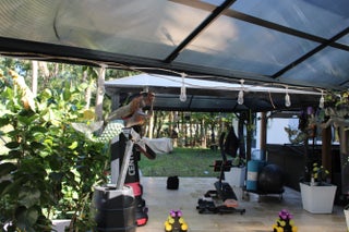 Unique luxury home designed and built by renowned equestrian architects Guiterrez and Uribe. who have also designed plans for a barn complex, FURNISHED with outdoor leisure facilities and equipment. (See all 54 pix with captions on the For Sale listing RX-11156478). Existing improvements include 3 luxury spa baths one located on the Queens Suite balcony, Terracotta marble enclosed South patio with a gate to the enclosed dog run of 3000 Terracotta marble covered spa /bar/ dining/ BBQ kitchen/ gym outside complex. 3 paddock fenced areas. Extensive new landscaping with dozens of roses, fruit and flowering trees and coconut palms. Water & sewer, weekly spa maint. + pestcontr included. Only 1 month rent plus 1 month security deposit required to move in. 2 boats included. Security camerasetc