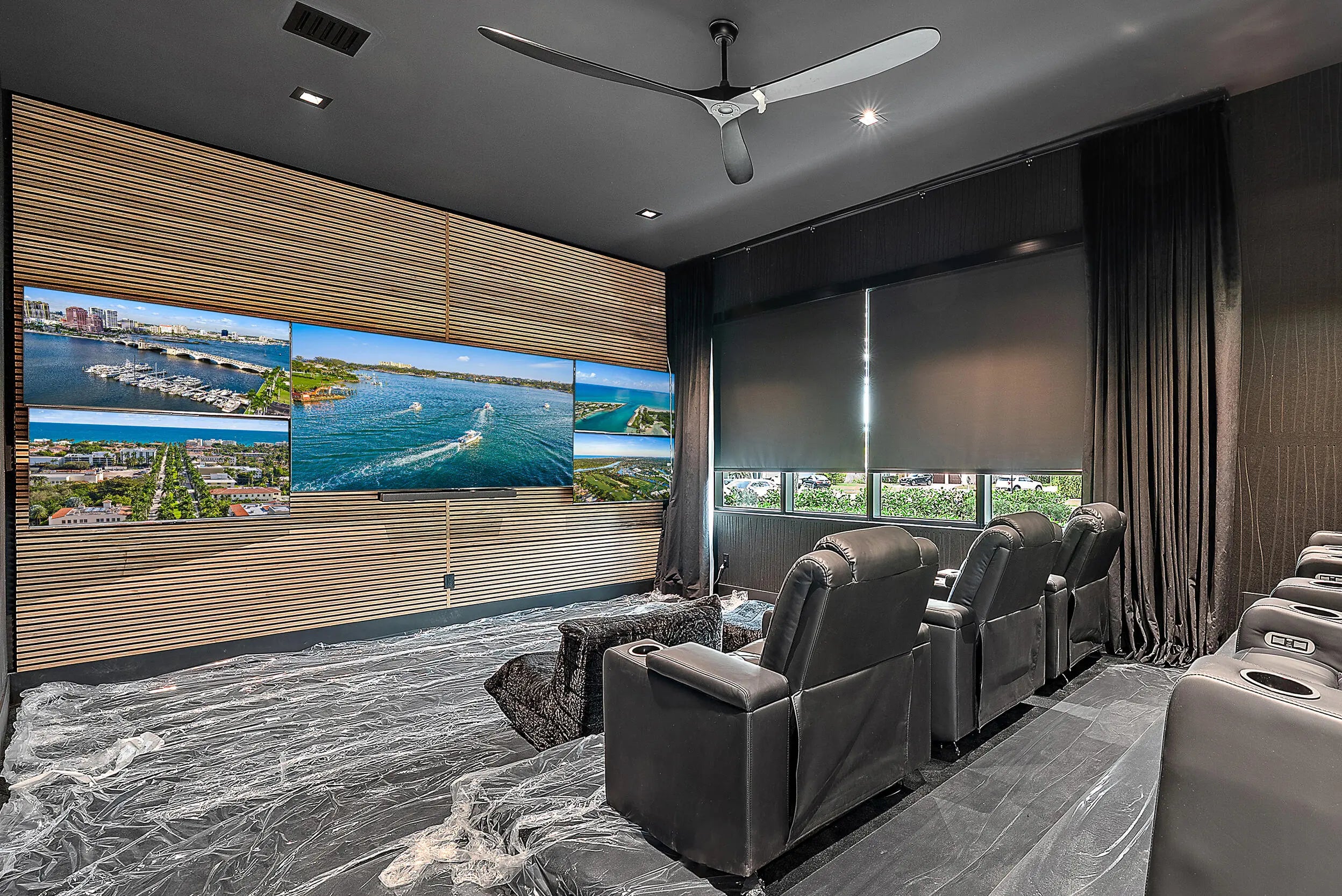 Construction has just been completed on this exceptional coastal estate showcasing sweeping Intracoastal views from one of Palm Beach County's most exclusive streets. Thoughtfully designed and executed with uncompromising craftsmanship, this residence is outfitted with the finest finishes throughout. The home features a showstopping chef's kitchen, private theatre, sophisticated bar room, home gym, executive office, elevator, and five oversized en-suite bedrooms. The extended garages are lift-ready, accommodating up to four vehicles plus a golf cart. Although the property appraiser reflects a 1963 build year due to two small retained portions of the original structure, this is otherwise new construction. Impeccably finished and meticulously maintained, the home is truly turnkey!