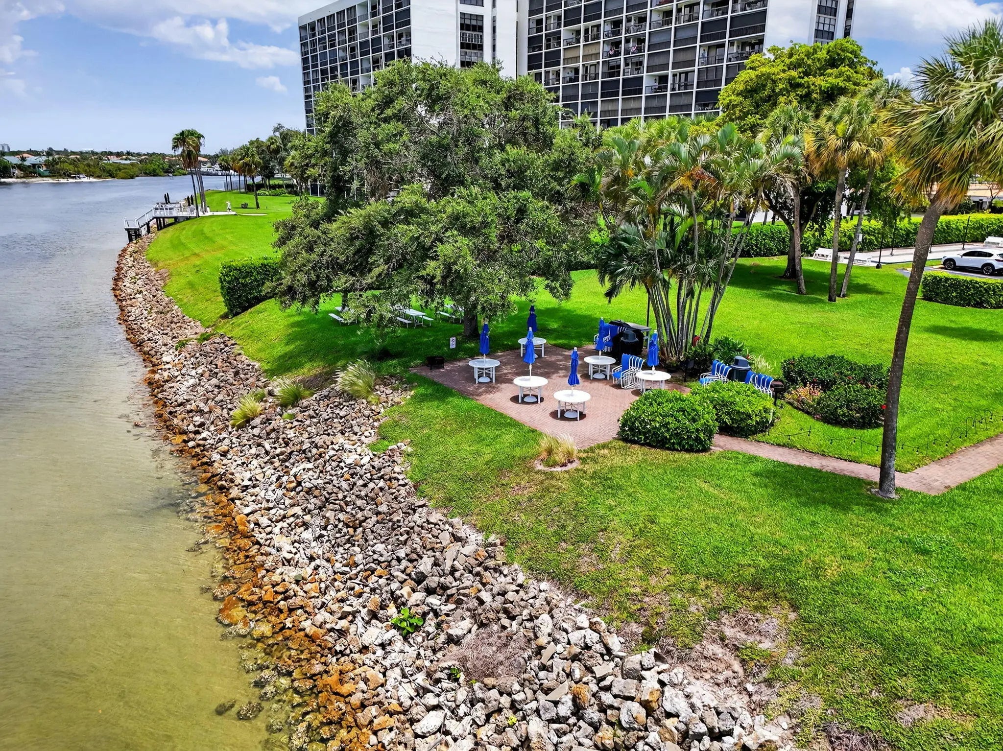 Amazing direct intracoastal & golf course views from this 2bd 2ba condo w/covered parking, this is the epitome of Florida living! Pristine beaches, fine dining/shopping & awarding winning golf course all minutes from this spacious condo w/split floor plan, brand new kitchen, light bright living & dinning area overlooking water & golf course views from balcony! All brand new furniture, washer N dryer in unitTurn Key The building itself has recently been renovated revitalizing this already majestic building w/ fabulous amenities that include, club house, pool, fitness room, library, bocce ball courts, tiki hut , A/C & Hot water heater replace in 2021, two windows are impact w/accordion shutter on remaining doors/windows, unit also has stackable washer/dryer & extra storage.