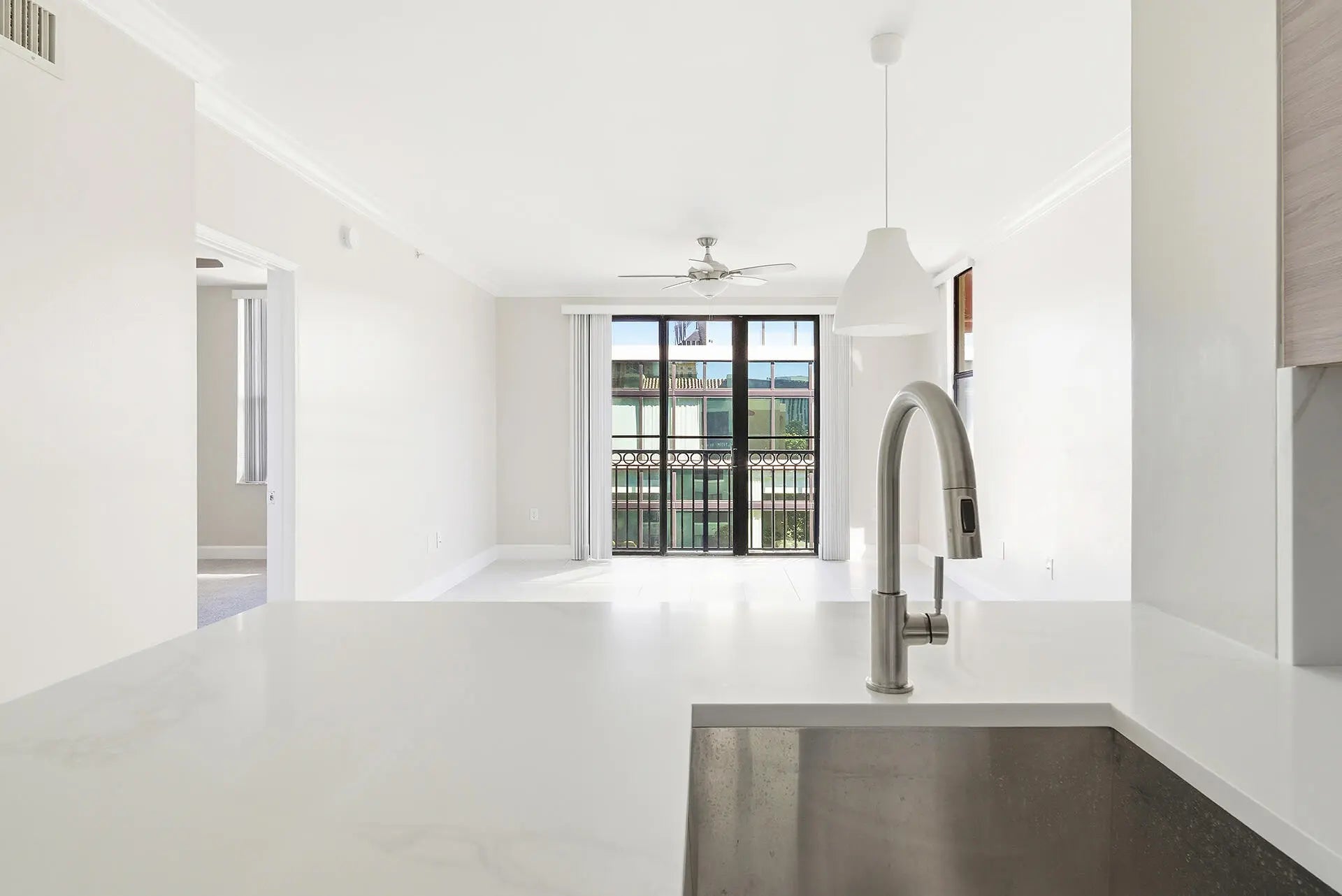 New A/C, new water heater, and an updated kitchen with new countertops, sink, disposal, and dishwasher highlight this penthouse residence in the Courtyards at CityPlace! This 1-bedroom, 1-bath condo offers a bright, airy atmosphere with neutral finishes throughout. The open-concept layout features a spacious living area that opens to a private balcony with city views. Ideally located just steps from CityPlace, enjoy walkable access to shops and dining, along with easy access to I-95 and nearby beaches. Experience downtown living with the comfort and exclusivity of a penthouse unit.