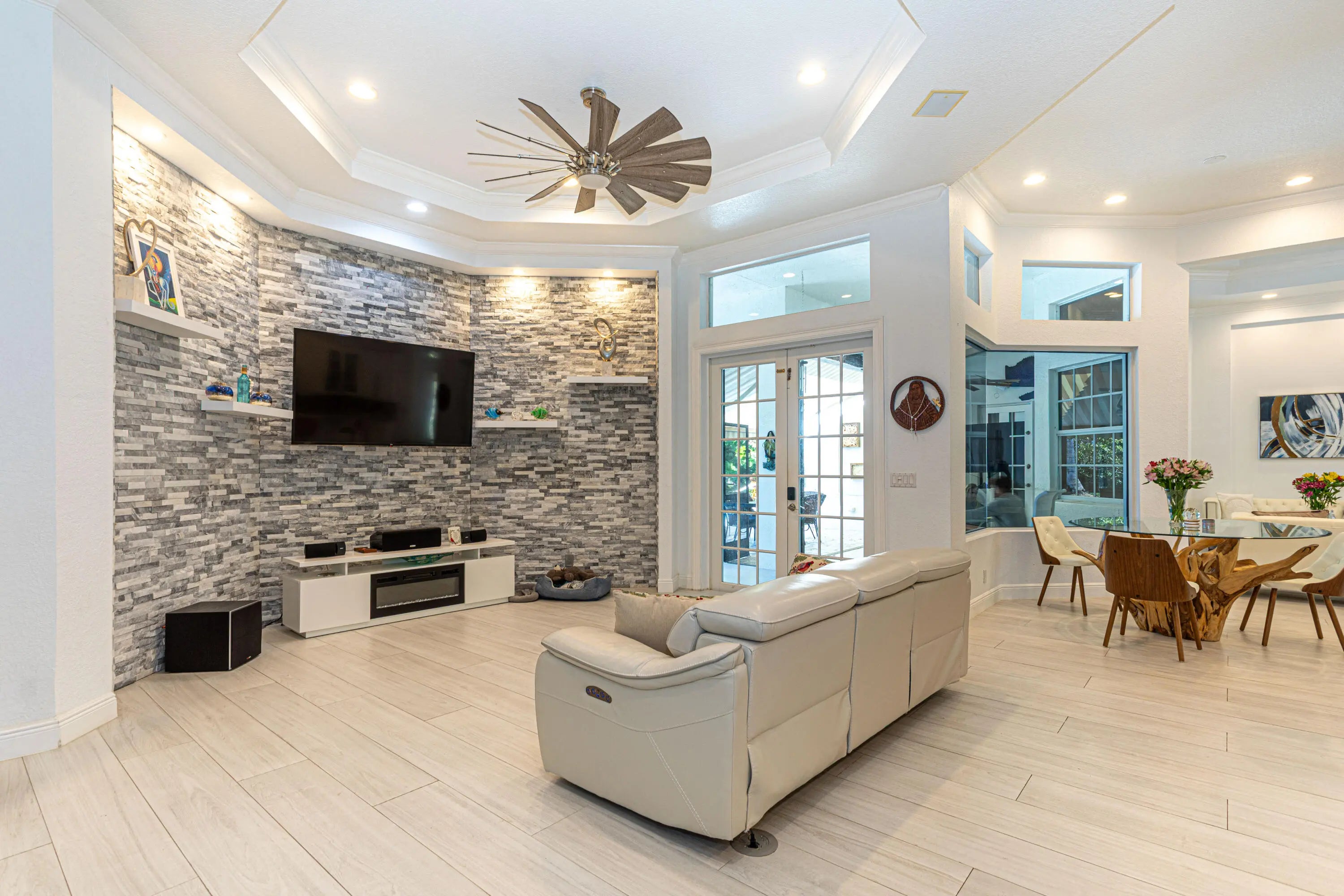 Come and experience Wellingtons aeronautical community. Home features 100ft plus driveway with roundabout, oversize 3 car garage with plenty of storage. Spacious open floor plan with updated large format porcelain tile throughout living, dining and covered patio areas. comfortable kitchen space with plenty of cabinetry storage, walk in pantry, prep area, and more. 12 Foot ceilings makes every space feel voluminous and elegant. Wood flooring throughout bedrooms. Large primary bedroon with his and hers walk in closet space. Covered patio has electric screens that can be open / close with a touch of a button. Bonus Room / Bedroom Flex Space 41 x 14 with full bath. Stand by 30 Kw 125 Amp Genset underground tank.