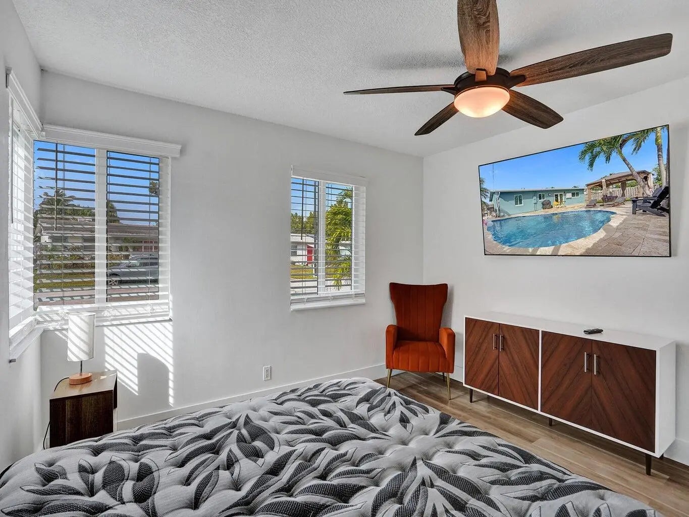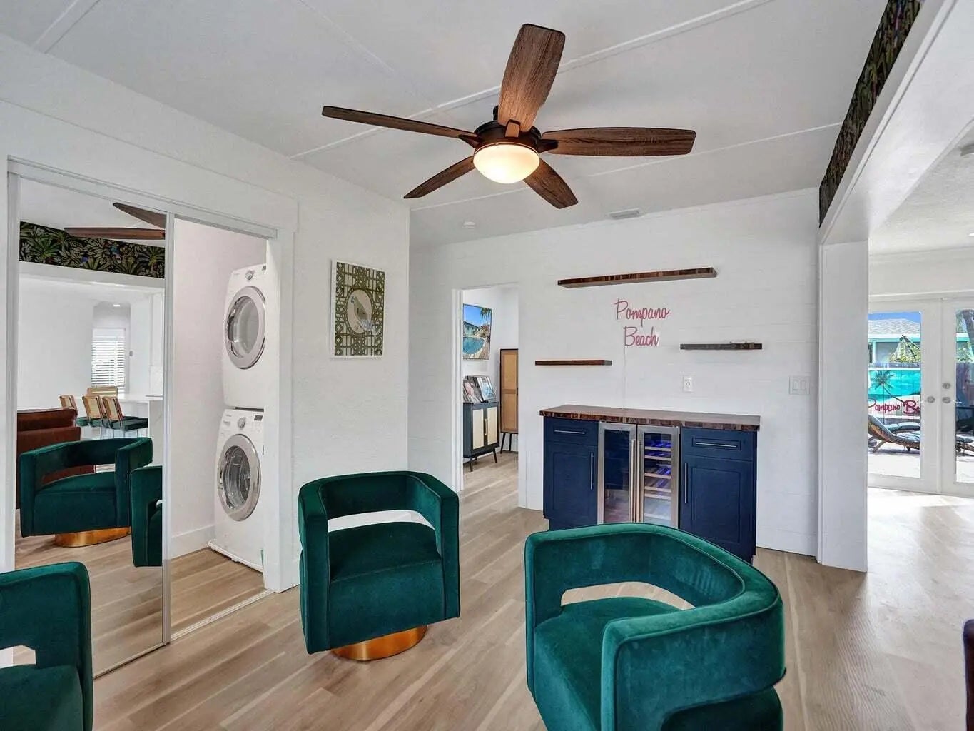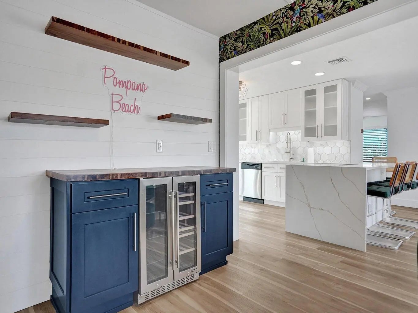 This beautifully upgraded home offers a seamless blend of style, comfort, and functionality. Step outside to your private backyard oasis, where a sparkling saltwater pool awaits. With both heating and cooling options, it's perfect for a refreshing swim on warm Florida days or a relaxing evening soak. Inside, enjoy custom closets and an elegant built in bar featuring a wine fridge, roll out shelving, and floating accents ideal for entertaining. The chef's kitchen showcases a Quartz peninsula, brand new appliances, custom cabinetry, and an induction cooktop. A full size washer and dryer with added storage, along with a smart Nest thermostat, complete the home's thoughtful upgrades. Tenant will be responsible for lawn and pool service.