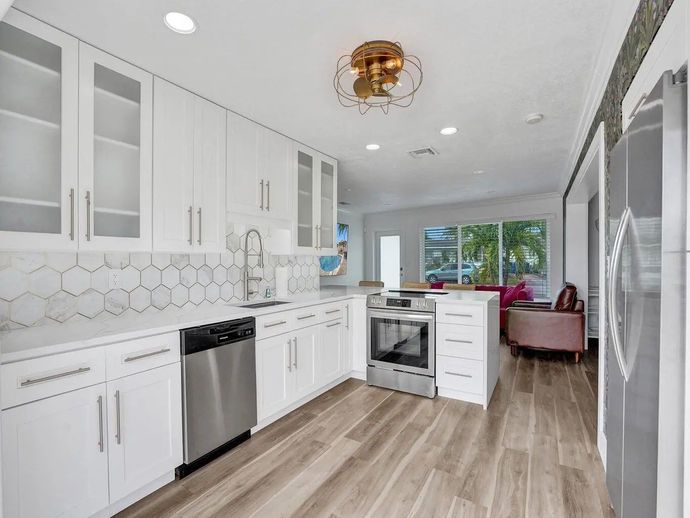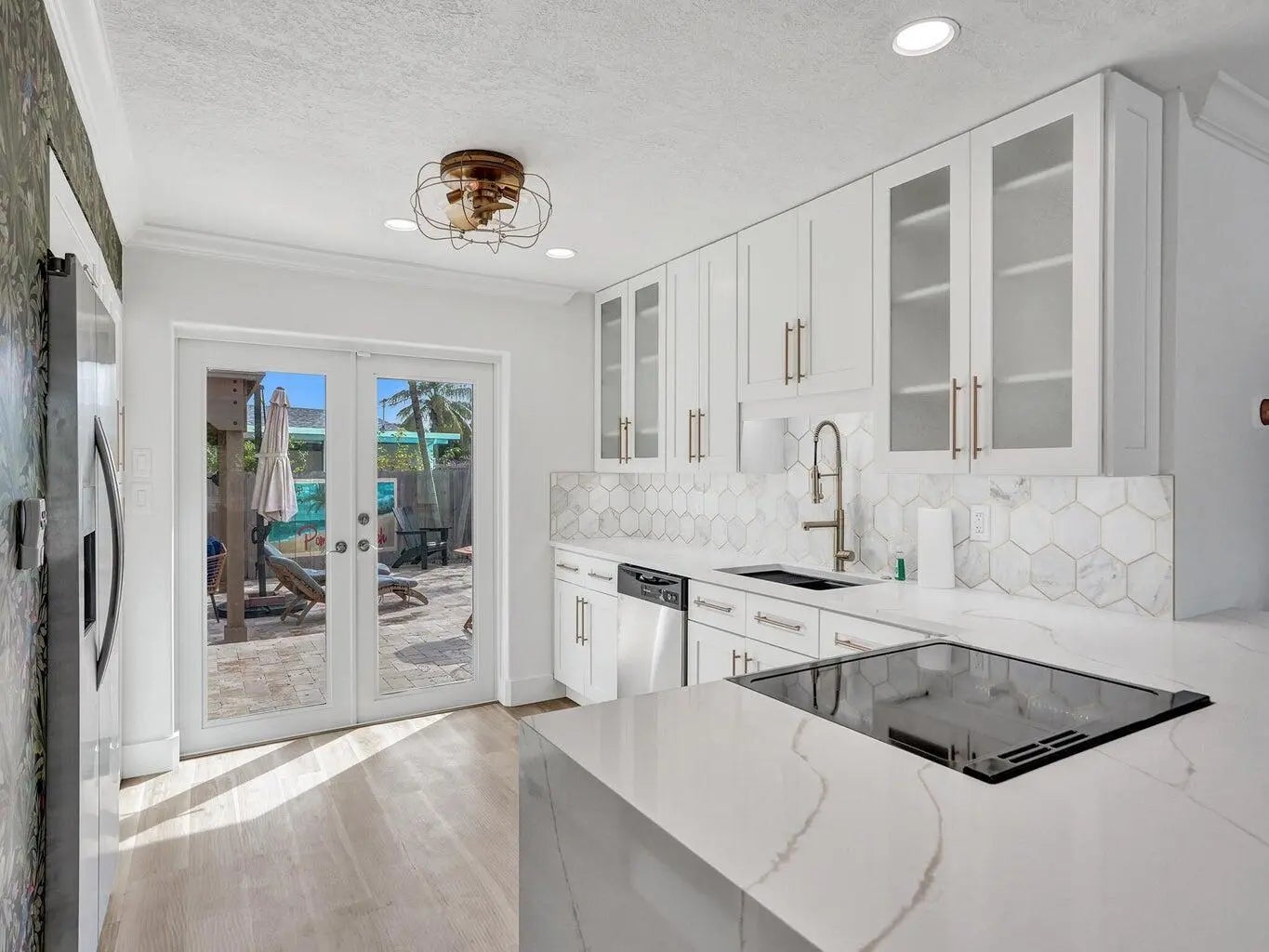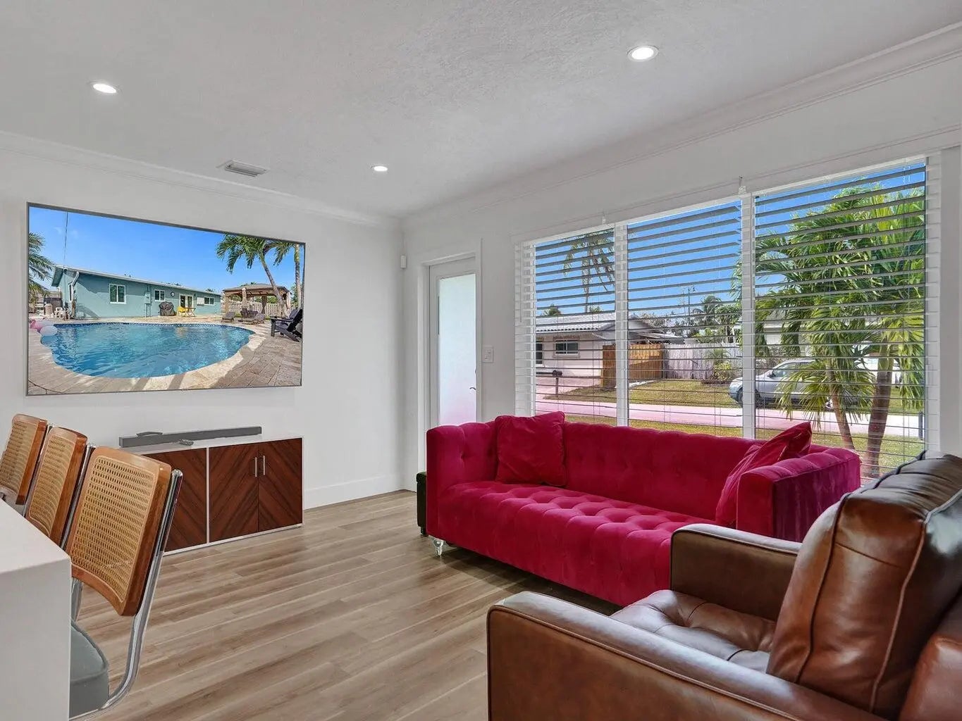 This beautifully upgraded home offers a seamless blend of style, comfort, and functionality. Step outside to your private backyard oasis, where a sparkling saltwater pool awaits. With both heating and cooling options, it's perfect for a refreshing swim on warm Florida days or a relaxing evening soak. Inside, enjoy custom closets and an elegant built in bar featuring a wine fridge, roll out shelving, and floating accents ideal for entertaining. The chef's kitchen showcases a Quartz peninsula, brand new appliances, custom cabinetry, and an induction cooktop. A full size washer and dryer with added storage, along with a smart Nest thermostat, complete the home's thoughtful upgrades. Tenant will be responsible for lawn and pool service.