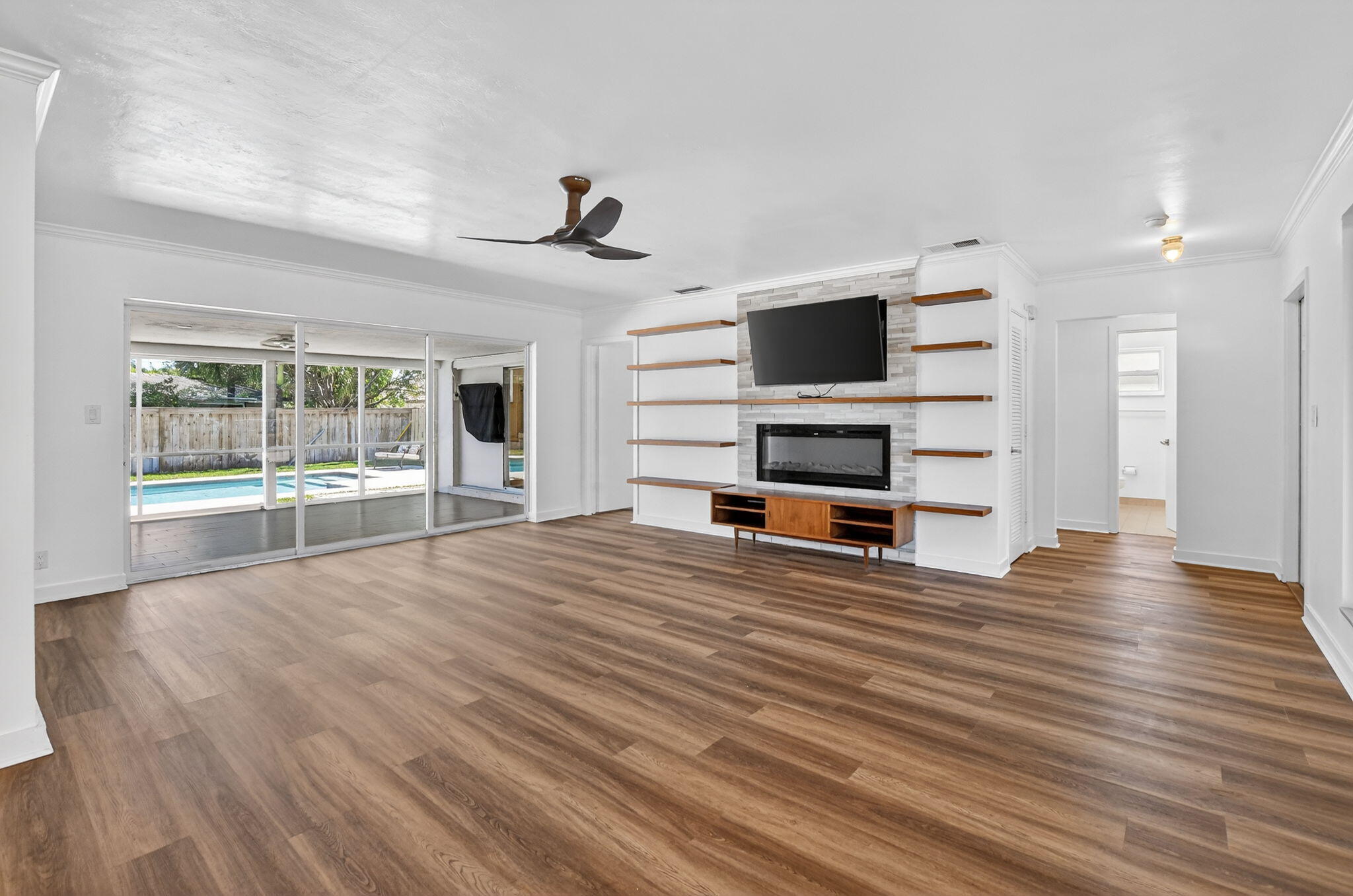Welcome to this inviting 3-bedroom, 2-bath home in the heart of East Boca Raton, just a short walk to Addison Mizner School and moments from Mizner Park, Brightline, I-95, and Boca's beautiful beaches.Inside, a bright open layout is enhanced by brand-new luxury vinyl plank flooring and fresh interior paint, creating a clean, modern feel and a great foundation for comfortable everyday living. The kitchen offers a functional and welcoming space that flows easily into the main living areas, making it ideal for both casual nights at home and entertaining. MORE...The home has benefited from meaningful improvements that add peace of mind, including a newer A/C system, partial hurricane-impact windows along the front of the home, a whole-house generator, and important infrastructure updates such as a ceramic barrel tile roof, relined copper piping, and a GE electrical panel. Step outside to your own private backyard retreat, where a beautiful saltwater heated pool and spacious yard create the perfect Florida setting for relaxing, hosting, or enjoying sunny Boca days year-round. Room to park your boat too! Set within one of East Boca's most desirable neighborhoods and a highly sought-after school district, this home offers an exceptional opportunity to enjoy location, lifestyle, and the chance to make it your own.