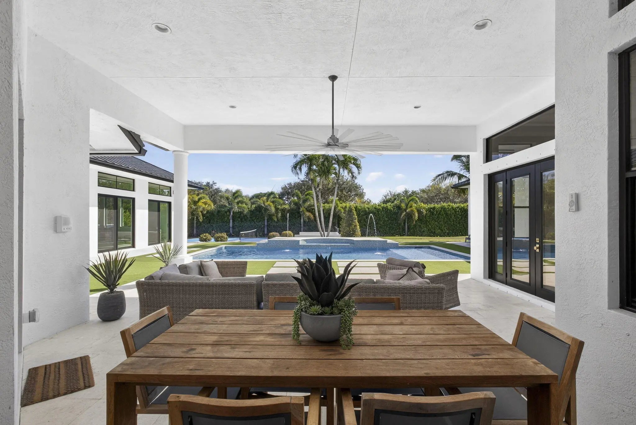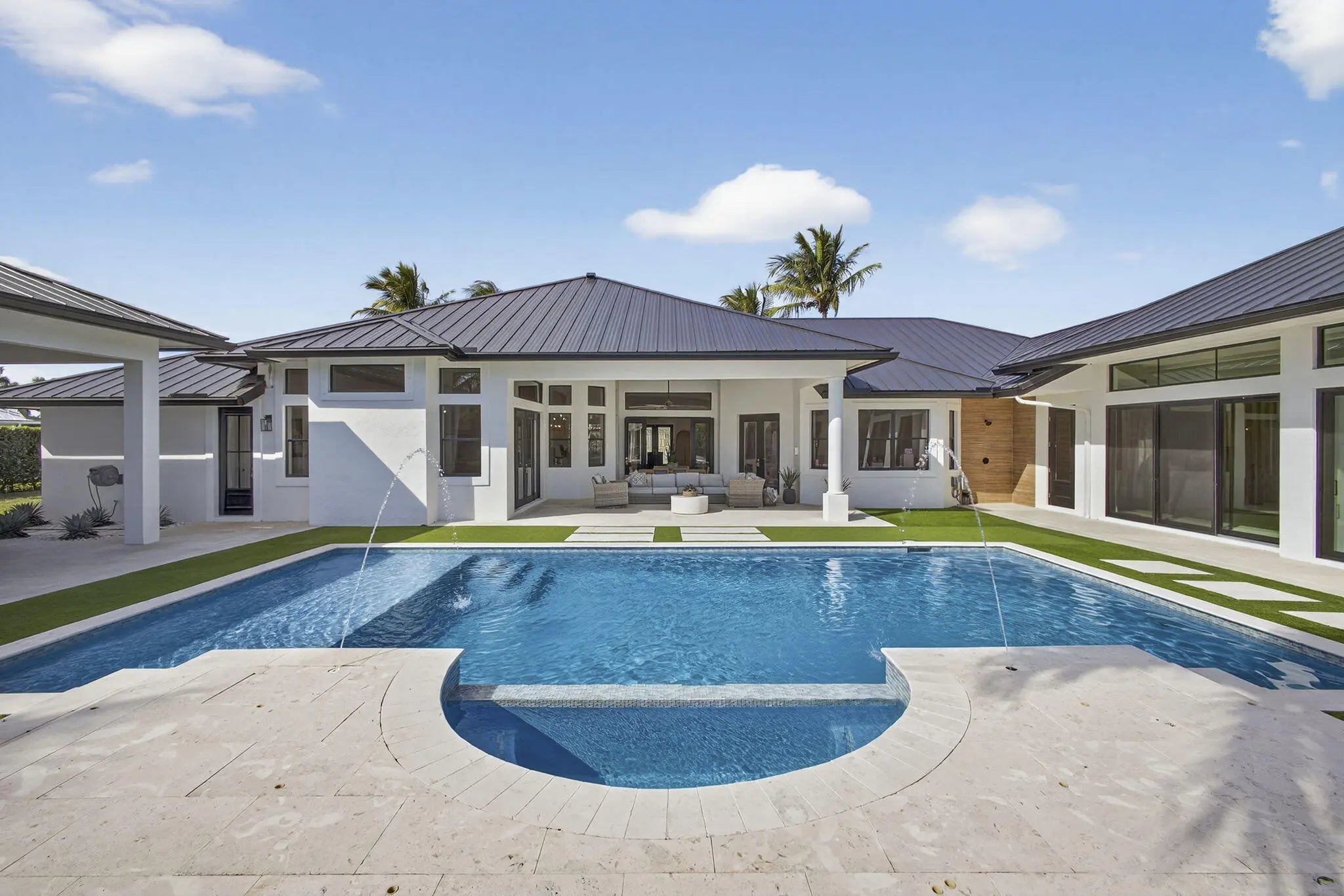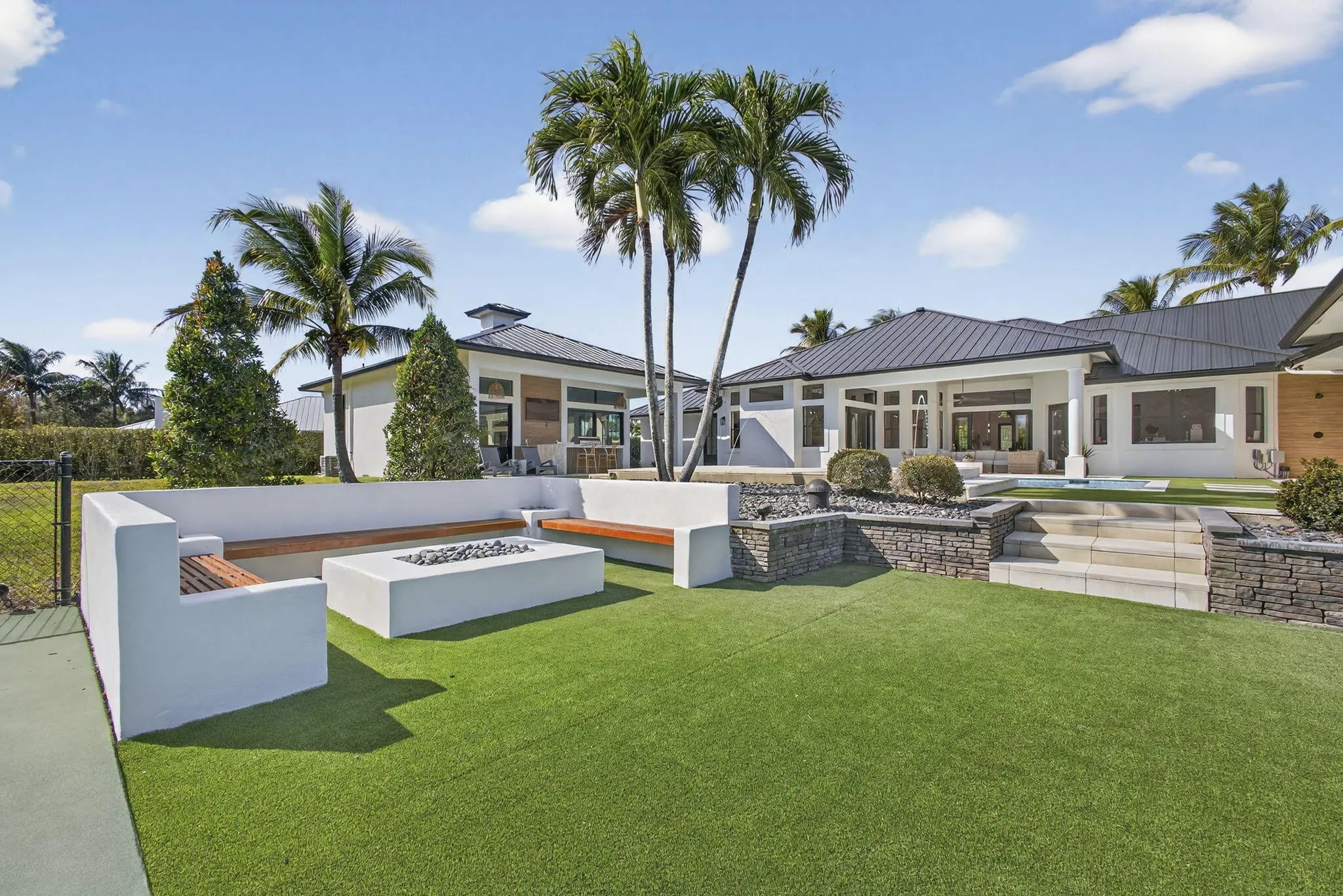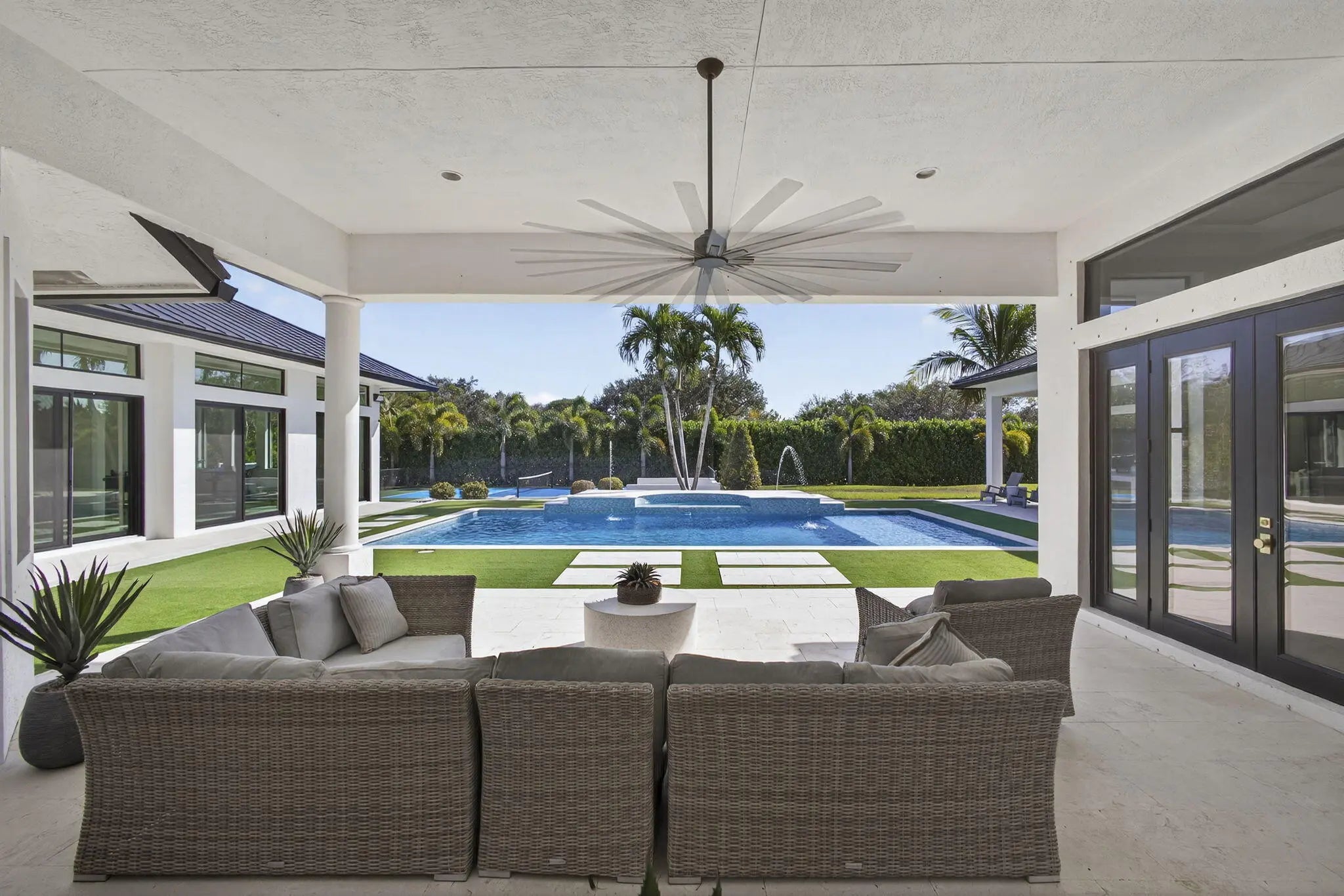 Fully renovated in 2025, this privately gated Aero Club estate offers approximately 6,500 SF of refined living space and over 8,300 SF total, with half the residence newly constructed and the remainder fully remodeled. Designed for elevated living, the home features a new metal roof, detached guest house, private pickleball court, media room, and a wellness suite with sauna, cold plunge, and gym. The chef's kitchen includes a butler pantry, gas range, and double laundry system. The primary suite offers a spa bath with steam room and walk-in closet. Executive office overlooks the heated pool. Hurricane-ready with a house generator powering the home and outdoor kitchen. Located near the entrance of the Aero Club with close proximity to horse farms, the dog park, and the private airport.