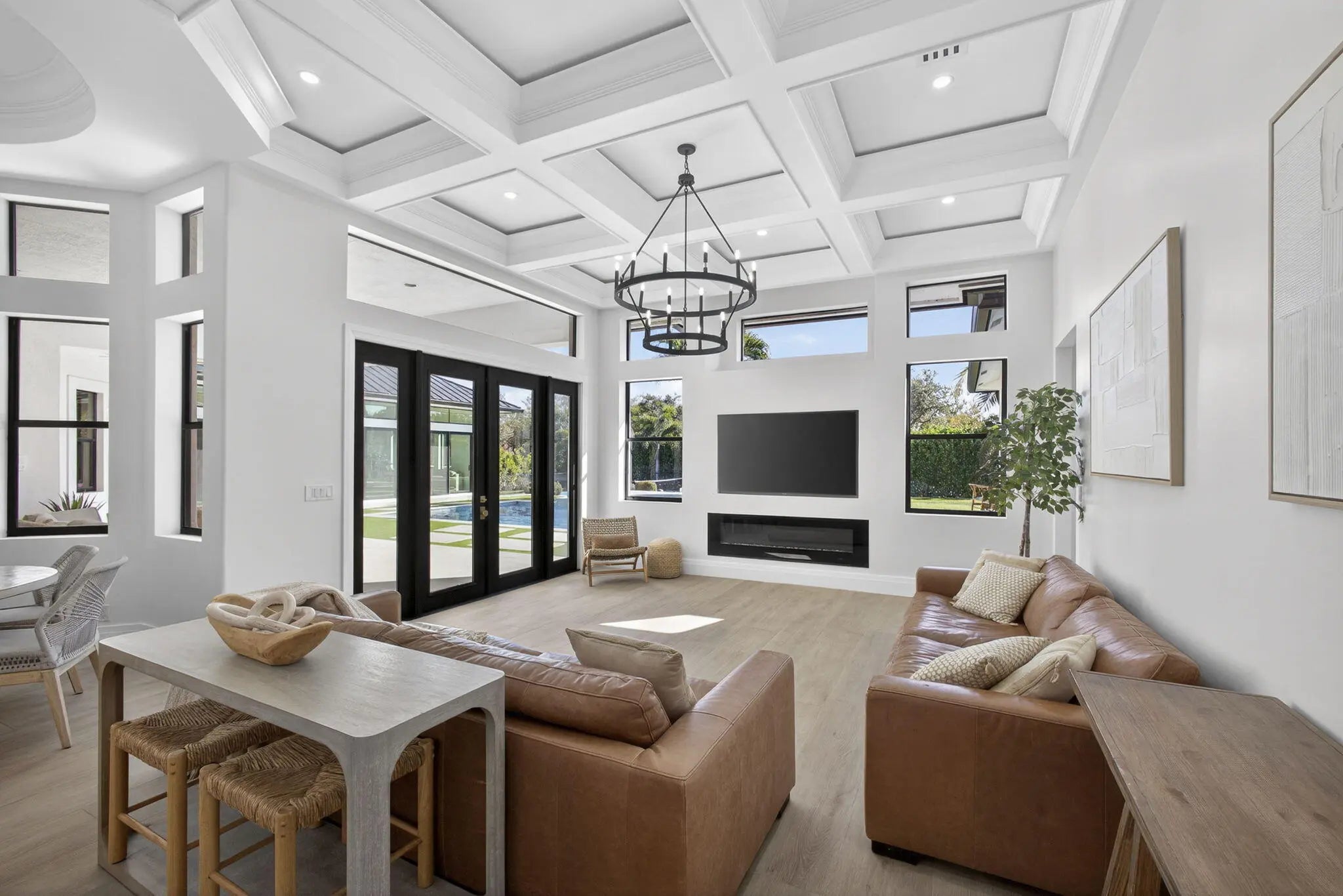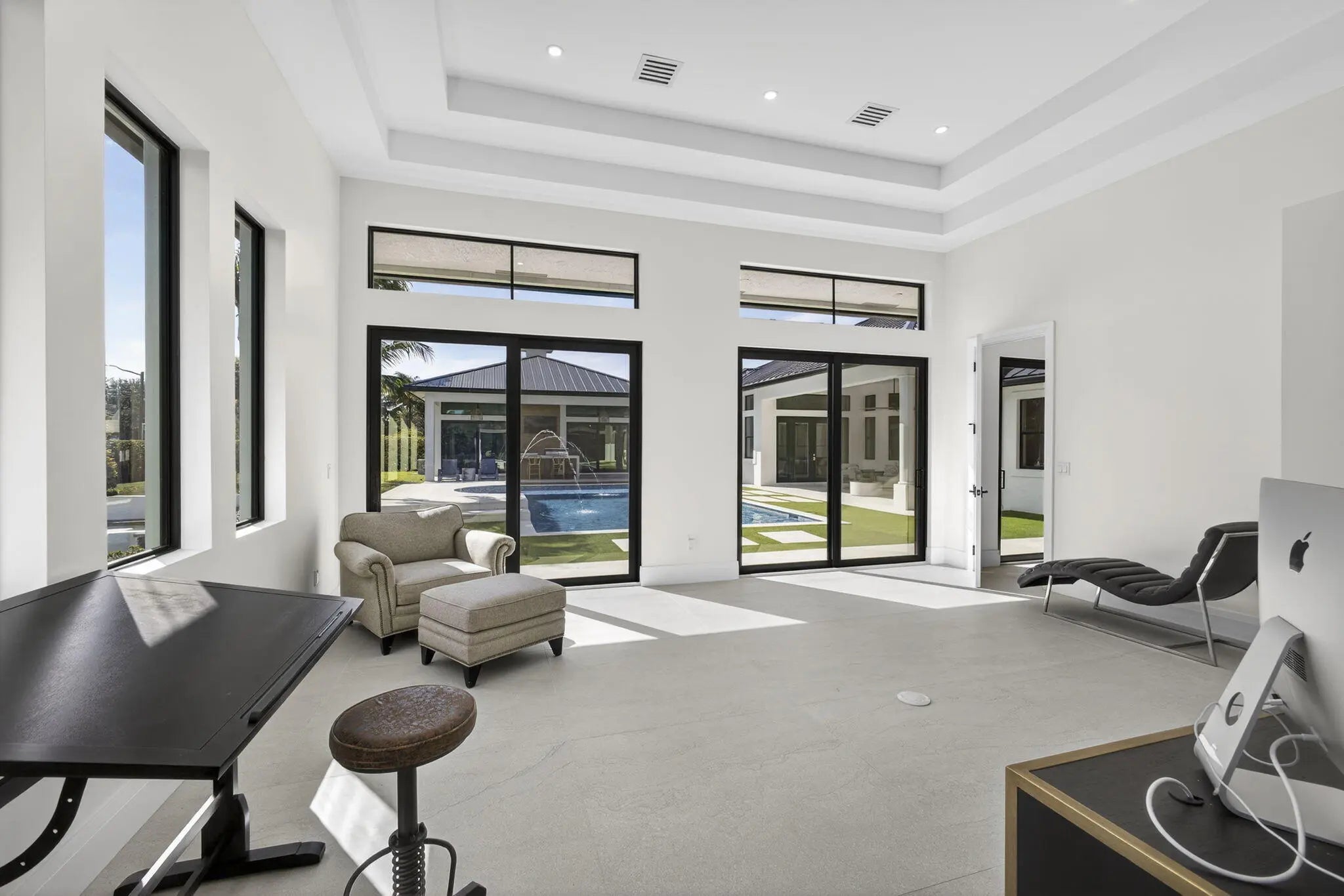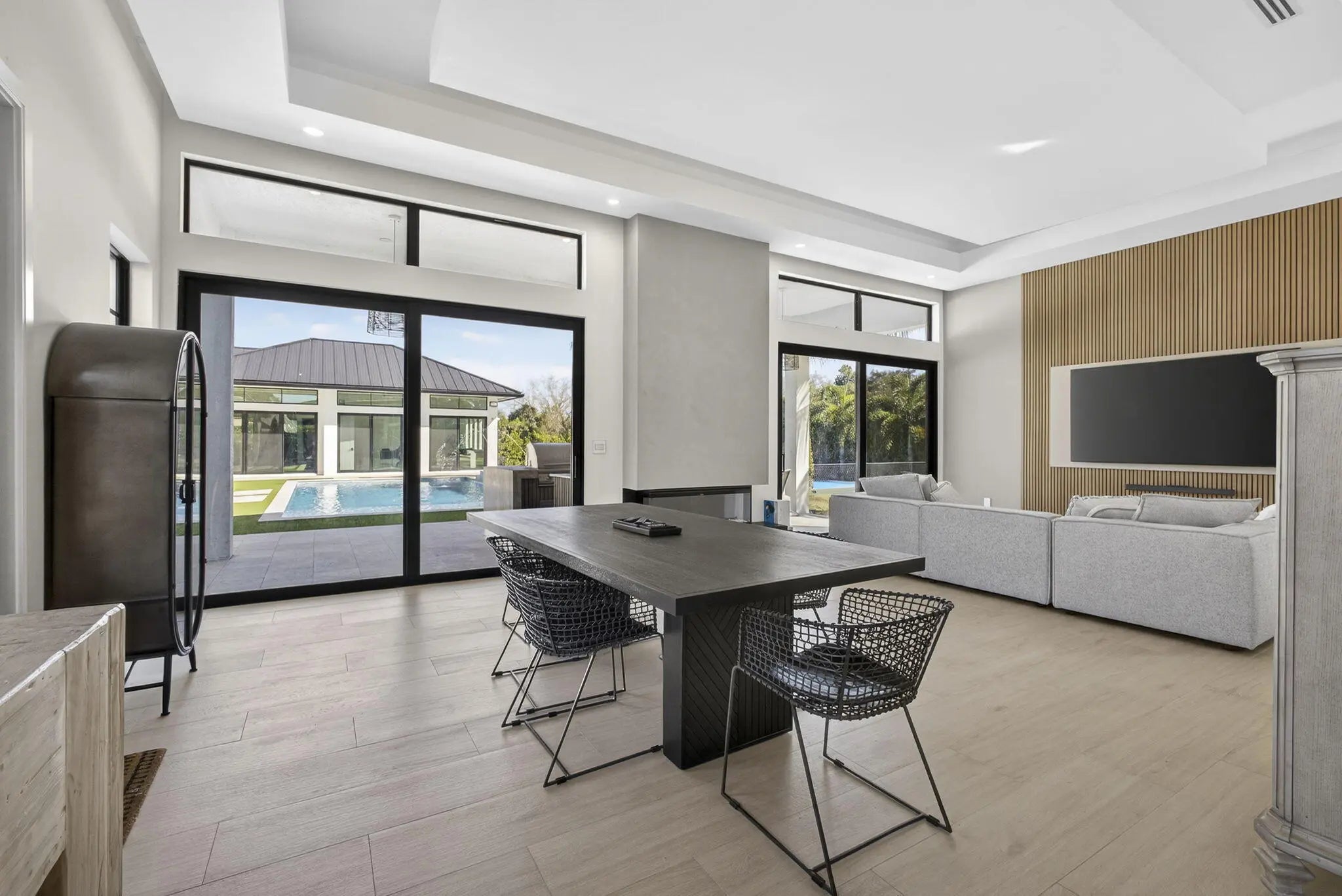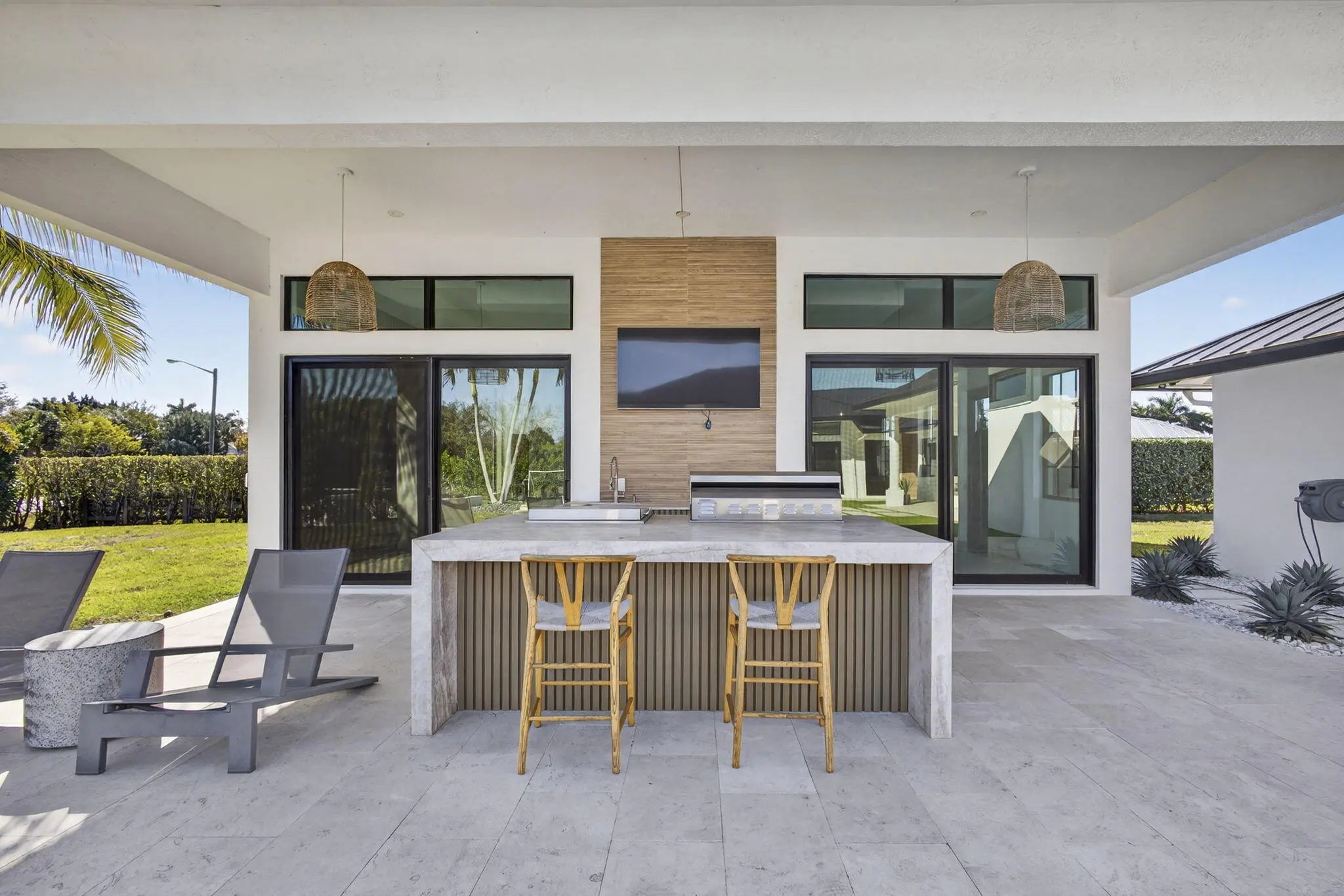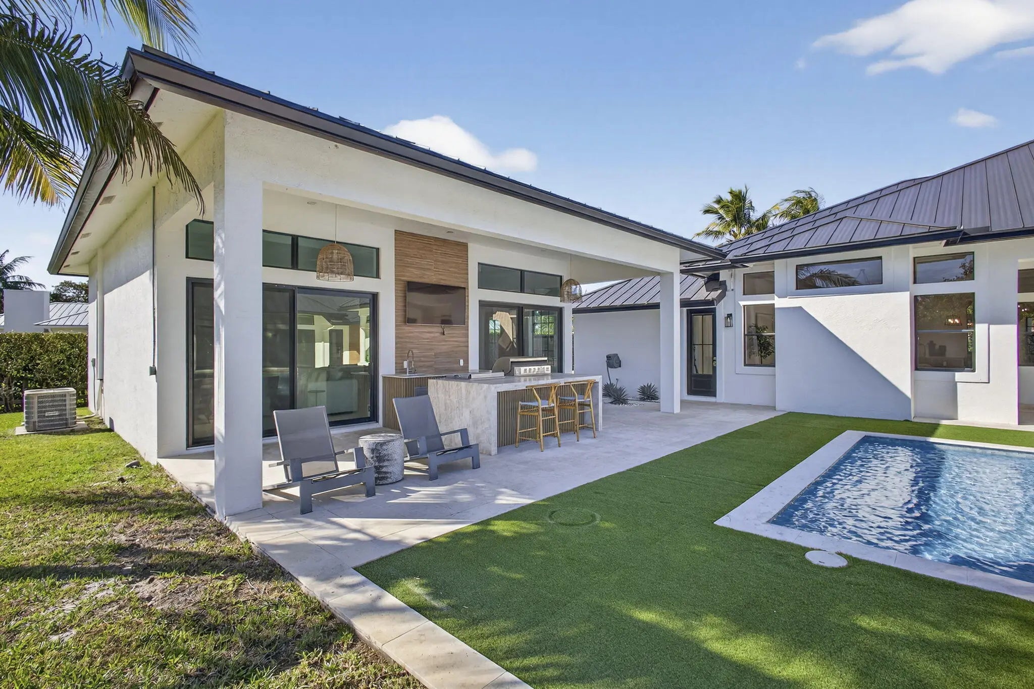 Fully renovated in 2025, this privately gated Aero Club estate offers approximately 6,500 SF of refined living space and over 8,300 SF total, with half the residence newly constructed and the remainder fully remodeled. Designed for elevated living, the home features a new metal roof, detached guest house, private pickleball court, media room, and a wellness suite with sauna, cold plunge, and gym. The chef's kitchen includes a butler pantry, gas range, and double laundry system. The primary suite offers a spa bath with steam room and walk-in closet. Executive office overlooks the heated pool. Hurricane-ready with a house generator powering the home and outdoor kitchen. Located near the entrance of the Aero Club with close proximity to horse farms, the dog park, and the private airport.