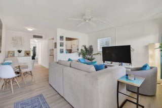 Move right in to this FULLY FURNISHED, desirable FIRST FLOOR residence located directly across from Lake Osborne and John Prince Park. This unit was completely remodeled in 2020 and features hurricane impact windows and doors, along with a newer A/C and water heater for peace of mind.The updated interior showcases beautiful vinyl plank flooring, newer kitchen cabinets and countertops & a bathroom with updated shower and vanity. Enjoy an active, outdoor lifestyle with fishing, birdwatching, and boating at Lake Osborne, or walk and bike the scenic nature trails at John Prince Park. Pickleball, tennis courts, a playground, and a dog park are also available. The HOA includes use of the clubhouse and heated pool, making this an ideal full-time residence or seasonal getaway.