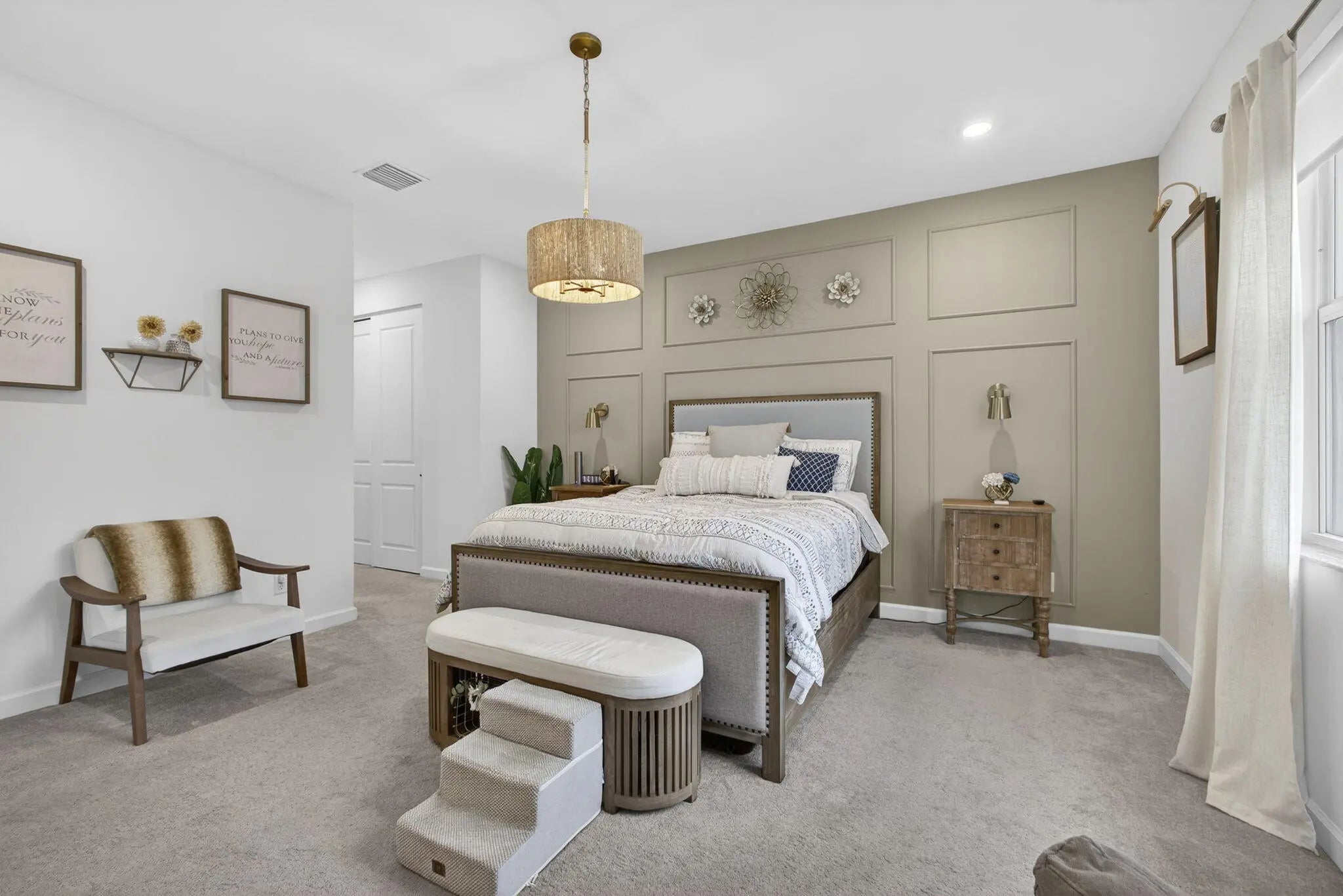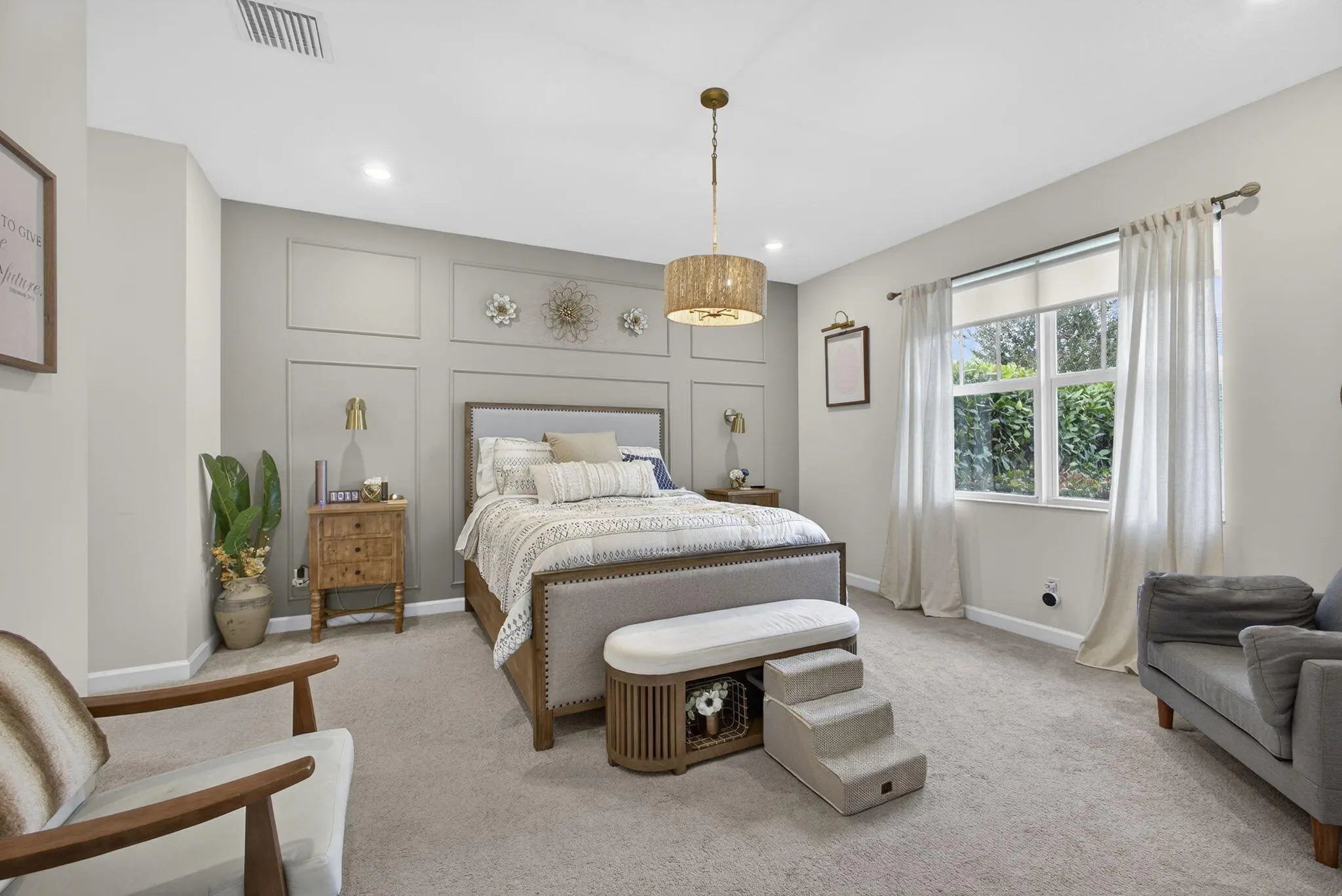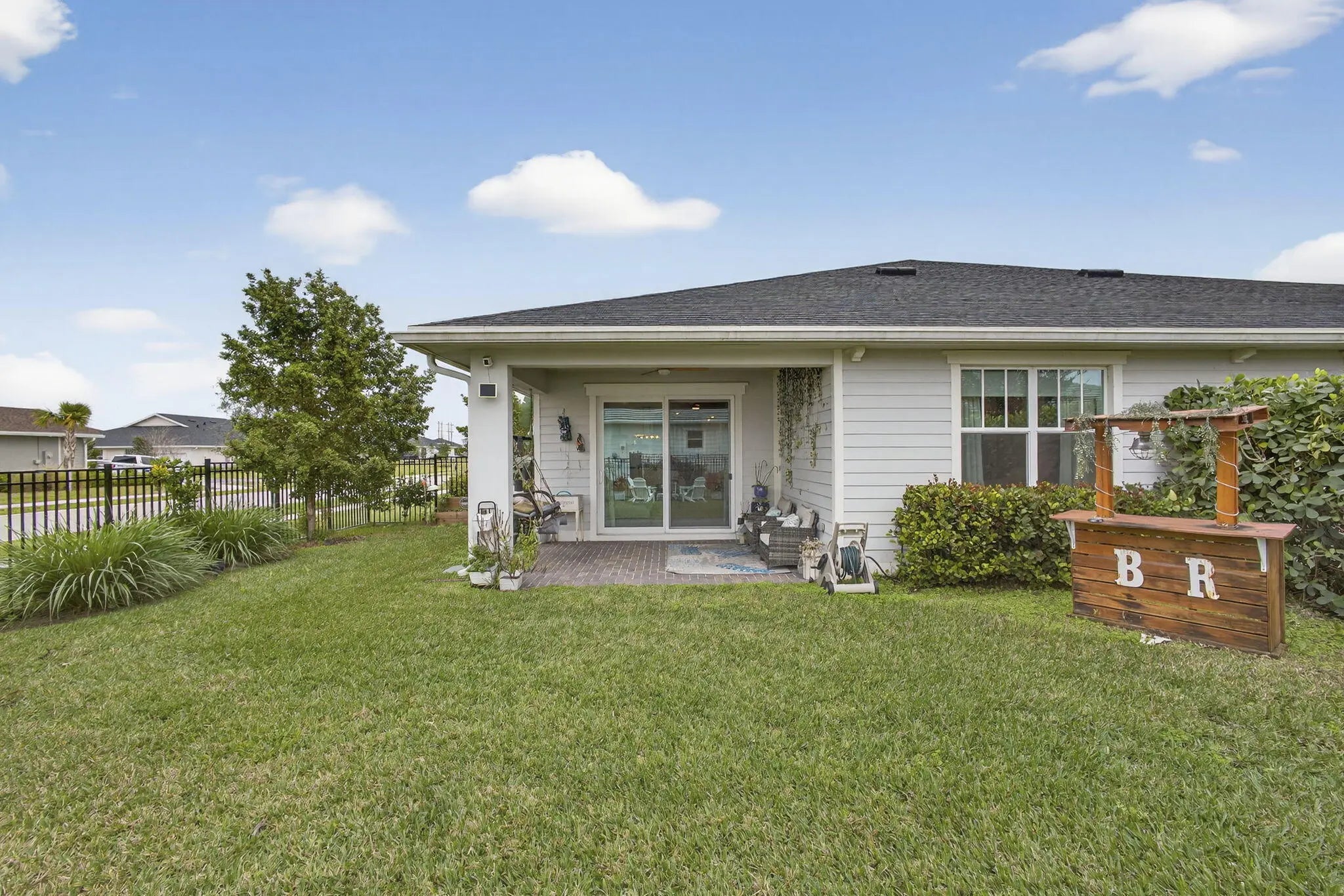 TOP NOTCH! Picture perfect! This villa has custom lighting and custom accent wall features! Enjoy this perfect corner unit with a fence yard. If you have a pet, this location is great as the dog park is a hop, skip and jump away.. literally! This home is light, bright, open and airy with a lot of natural light. Your bill payer's suite is the perfect retreat after a long day and your secondary suites are very spacious. No one likes laundry, BUT YOU WILL in this laundry room! Top tier full size stackable washer/dryer allows for counter space and a custom ironing area. Run DON'T WALK to snag this perfect home and enjoy all that Arden has to offer you!
