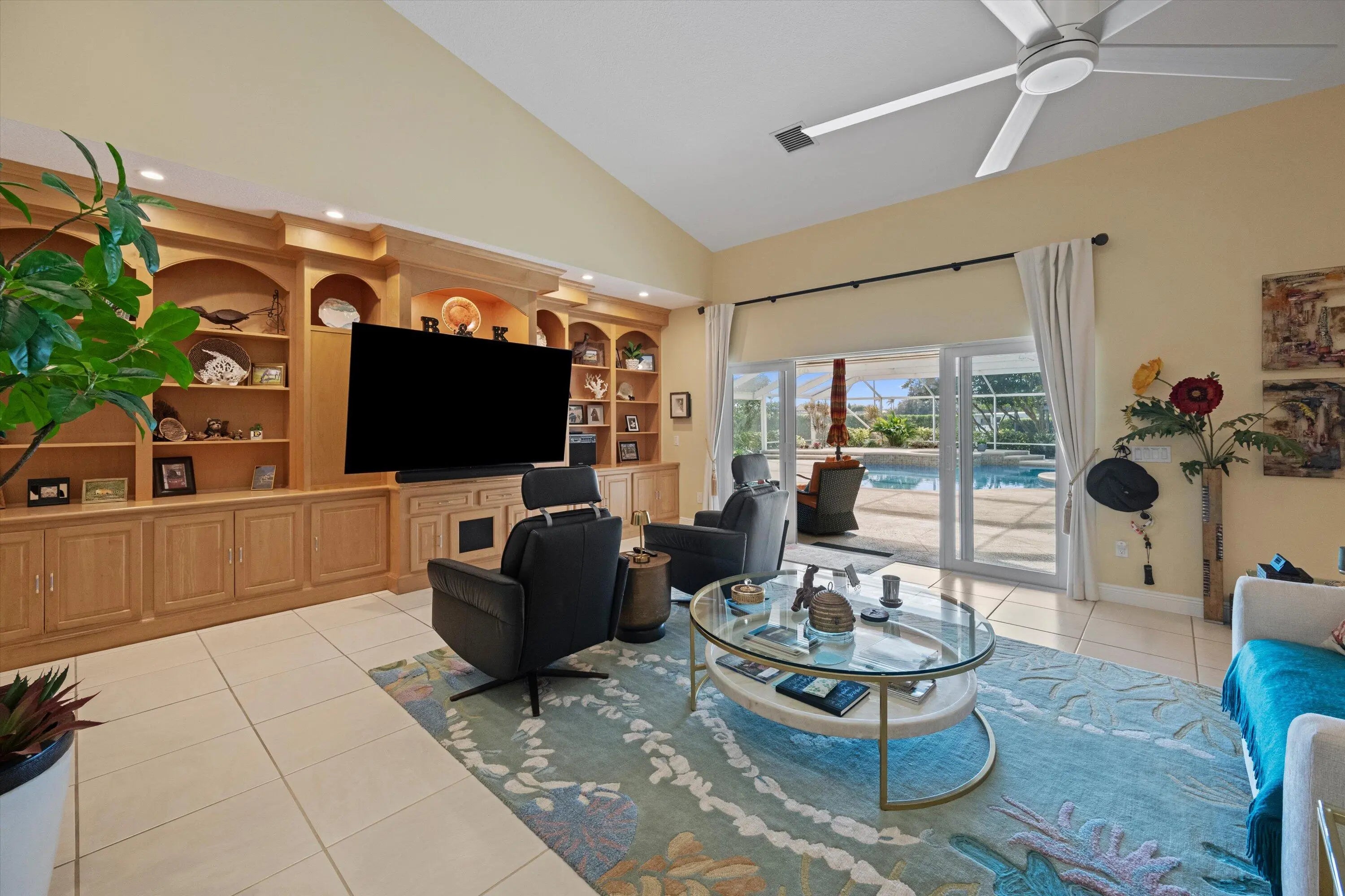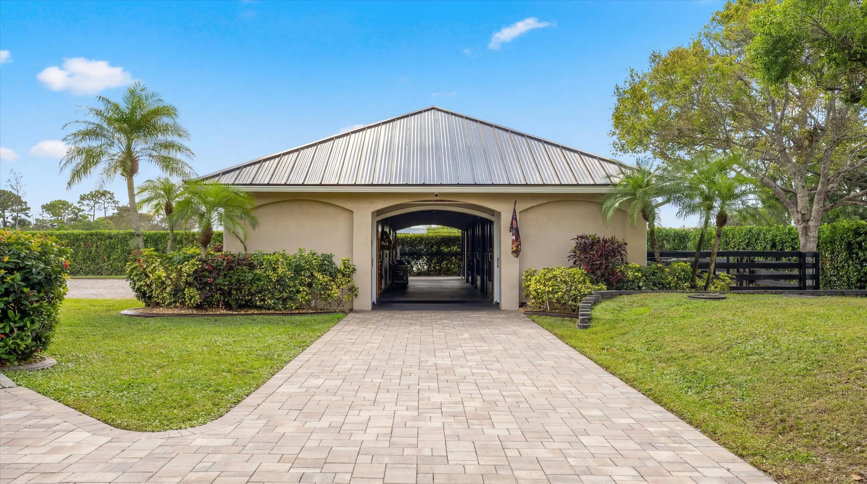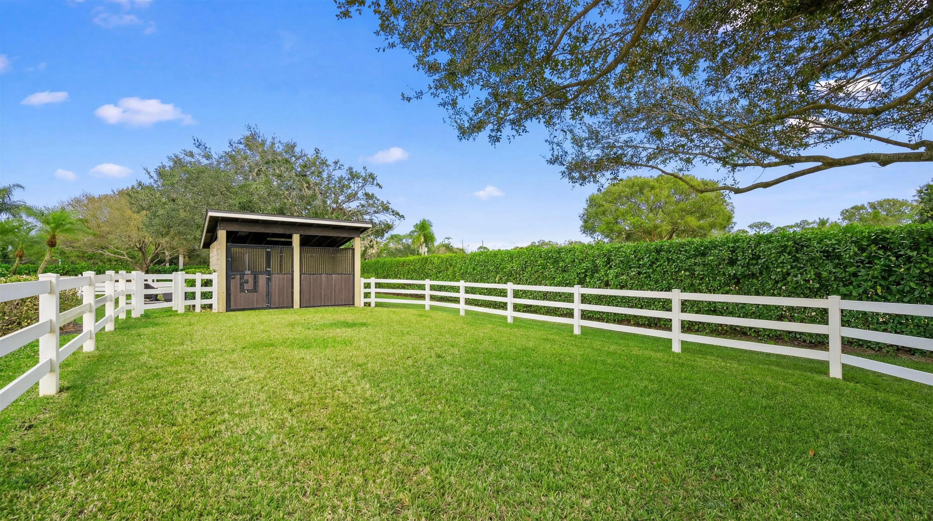 This inviting 3-bedroom, 3-bath single-family home sits on 2.54 acres and blends comfort with equestrian living. Tile flooring and volume ceilings enhance the open-concept layout, featuring a kitchen with family room and breakfast nook. Entertain with ease in the billiard room with bar or outdoors on the large screened-in patio with summer kitchen, pool, and spa. Equestrian amenities include a 3-stall barn with feed room, laundry, and groom's quarters with kitchenette and full bath, plus an additional stall near the paddock. Three paddocks and an arena with dressage mirror complete this exceptional property.