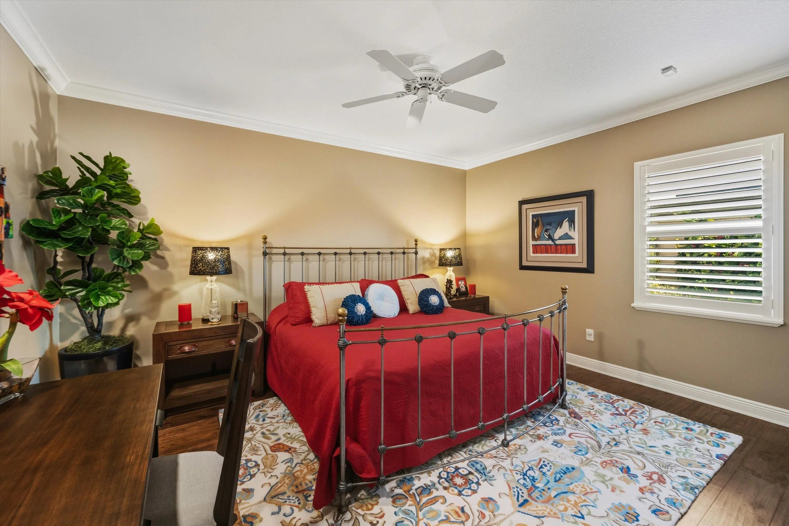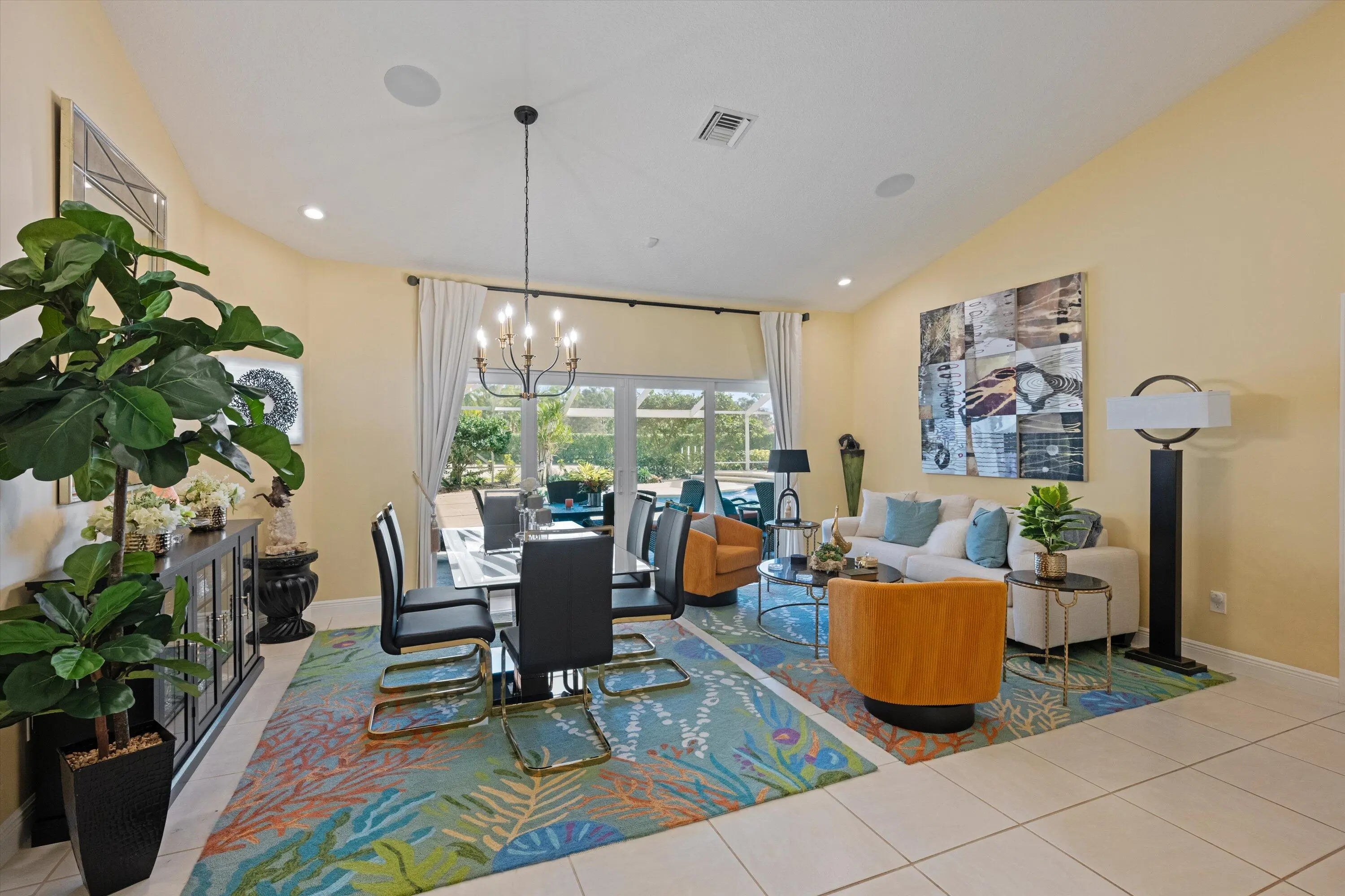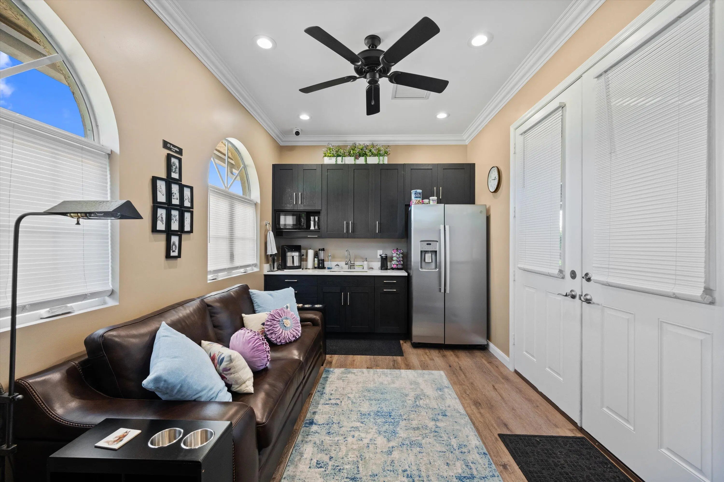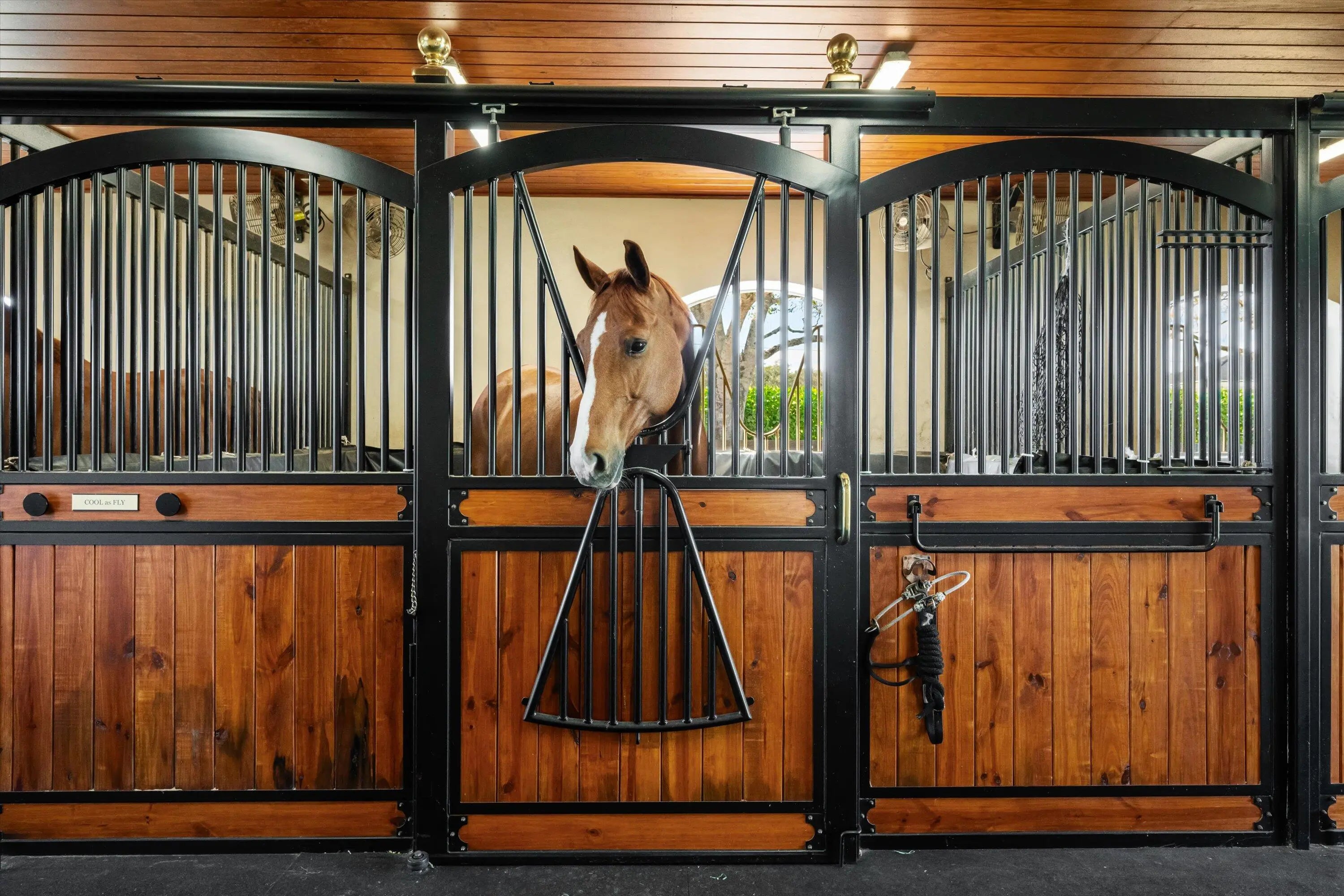 This inviting 3-bedroom, 3-bath single-family home sits on 2.54 acres and blends comfort with equestrian living. Tile flooring and volume ceilings enhance the open-concept layout, featuring a kitchen with family room and breakfast nook. Entertain with ease in the billiard room with bar or outdoors on the large screened-in patio with summer kitchen, pool, and spa. Equestrian amenities include a 3-stall barn with feed room, laundry, and groom's quarters with kitchenette and full bath, plus an additional stall near the paddock. Three paddocks and an arena with dressage mirror complete this exceptional property.