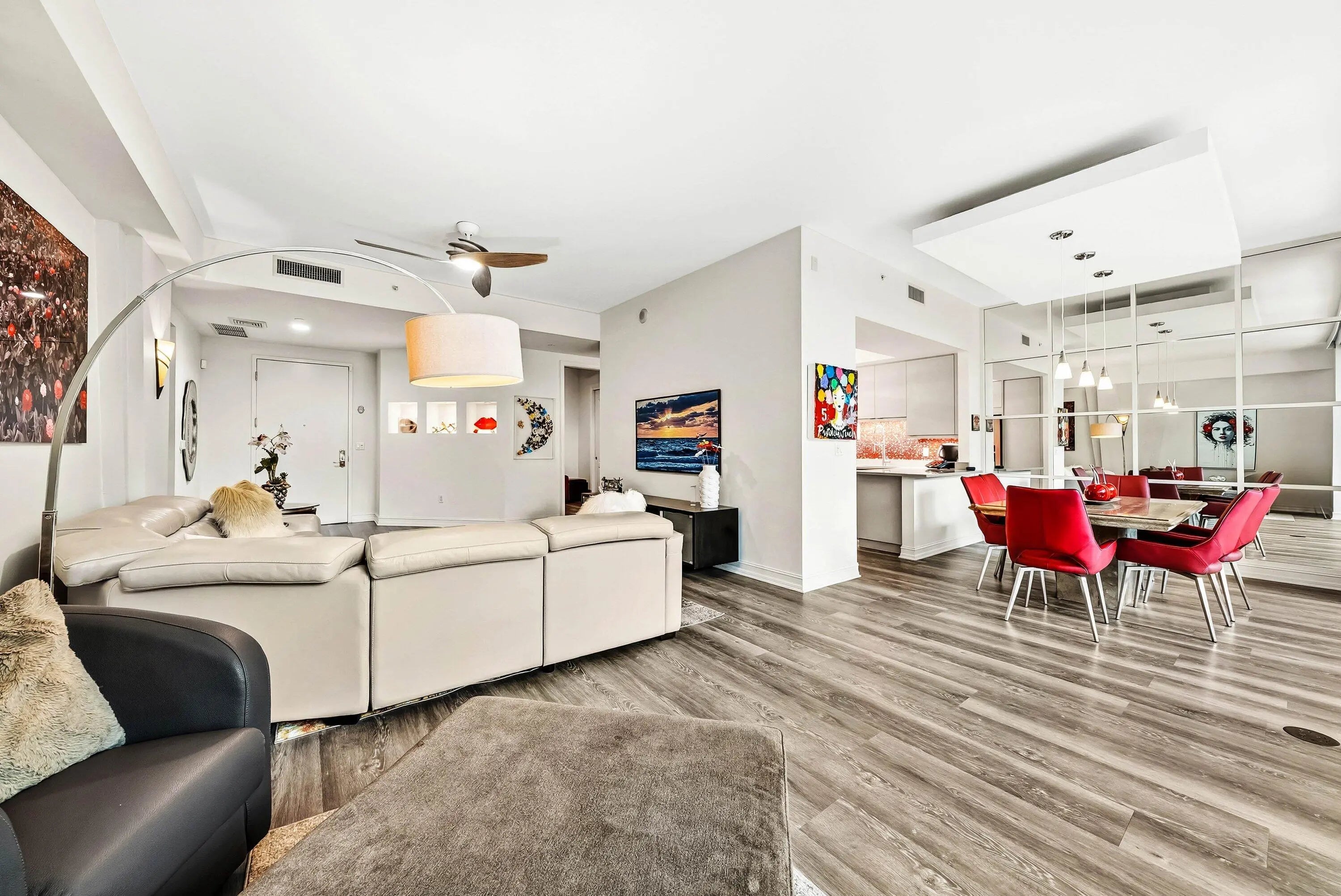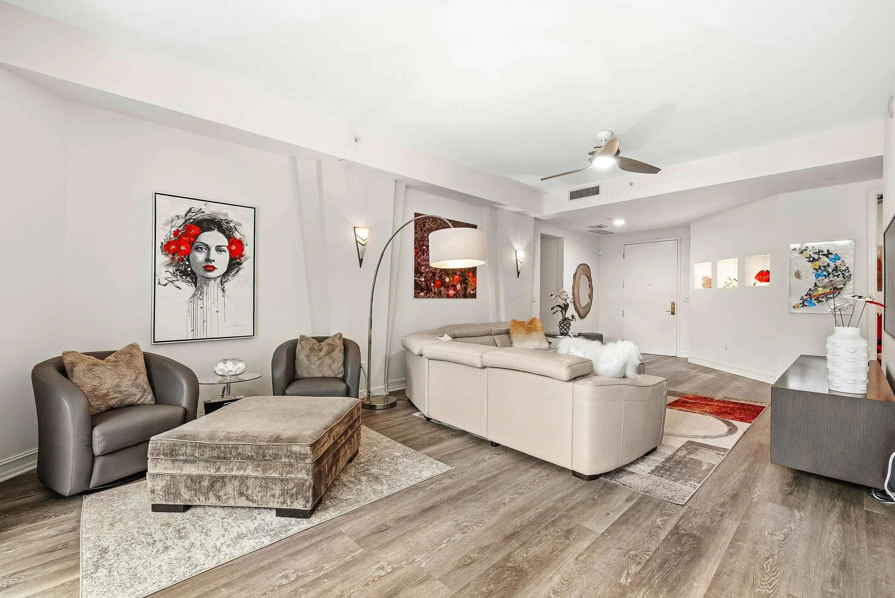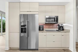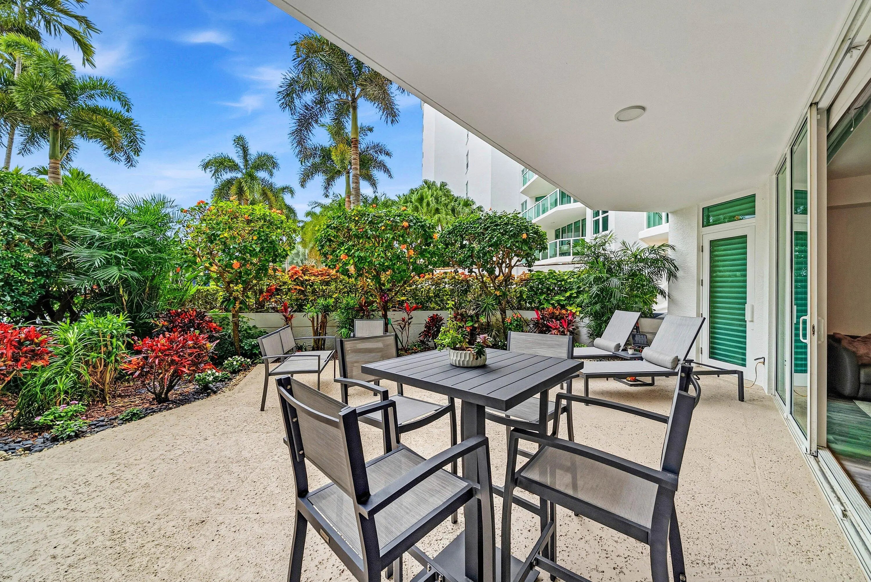 Experience luxury living in this beautifully renovated 2 bedroom plus den condo in Townsend Place. Perfectly positioned with East exposure from your expansive 500+ sq ft terrace, this residence offers the convenience of being on the same level as the pool deck while maintaining your privacy with the lush landscaping surrounding it. The residence has been meticulously renovated, including a gourmet kitchen with sleek modern cabinetry, snack bar, and stainless steel appliances, new a/c - only a year old. 10-foot ceilings, complemented by automatic blinds in the living and dining areas, hurricane impact-resistant glass throughout for your peace of mind.This home lives like a single-family residence while offering the convenience and maintenance-free lifestyle of condominium living.