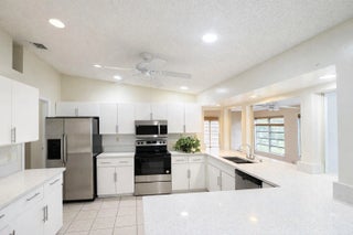 Gorgeous 3BR/2BA corner-lot property. This family home features an open-concept layout, vaulted ceilings, and a bright Florida room. French doors from the primary suite open to the Florida room. Kitchen features a breakfast bar, ample storage, and recessed lighting. Home includes upgraded baths, tile floors, louvered closet doors, panel shutters, pull-down attic access, laundry room with tub, and automatic garage door. Enjoy a large fenced yard, lush landscaping, screened patio, and great schools. HOA provides manned gate security, lawn/hedge/sprinkler maintenance, basic cable, and internet. Minutes to I-95, Turnpike, Palm Beach Outlets, and entertainment. Don't pass on the opportunity to own this amazing property!