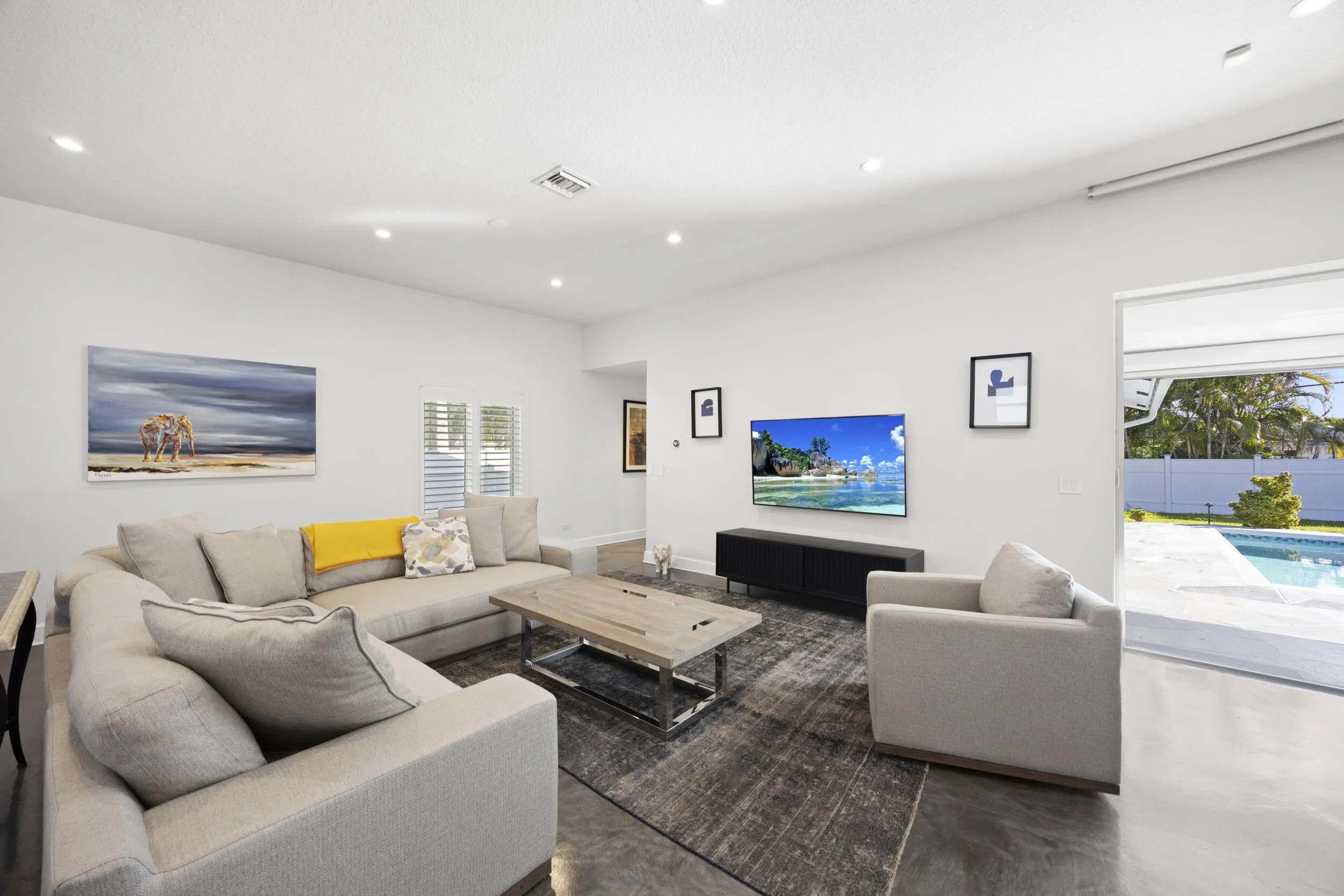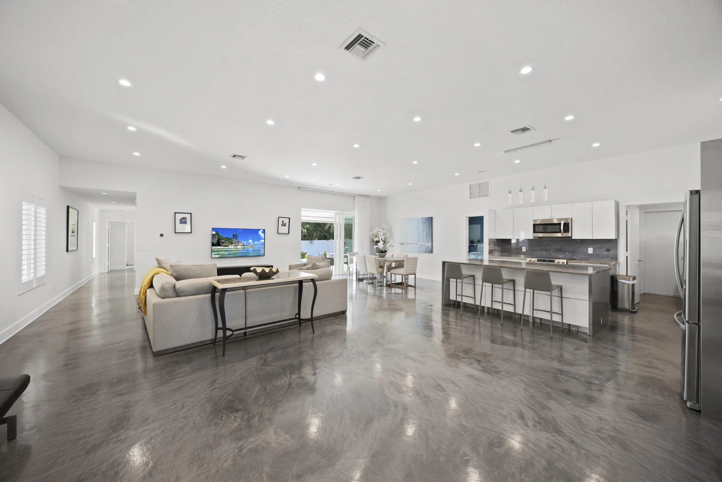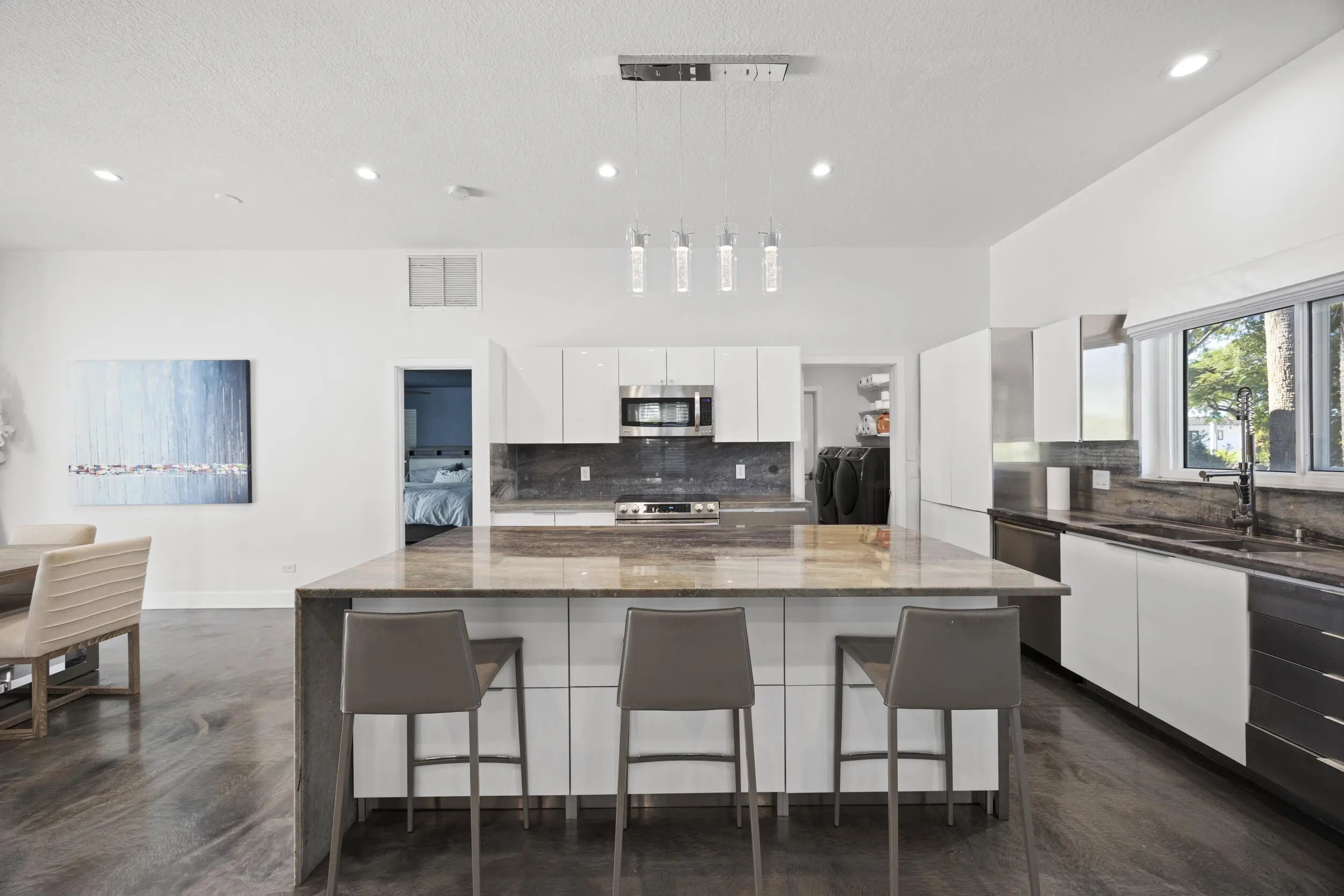 Beautifully renovated 3BR/2BA pool home, fully furnished and move in ready, featuring a spacious split floor plan and a designer kitchen with an oversized island, stainless steel appliances, and custom storage. Expansive sliding doors fully retract to create seamless indoor outdoor living. Both bathrooms showcase luxe Toto Neorest toilets, complemented by impact windows and an automated pool screen. Enjoy a lush, private backyard with a resort style pool and an oversized circular driveway. No HOA. Prime East Boca location just minutes from Mizner Park, FAU, beaches, and fine dining.