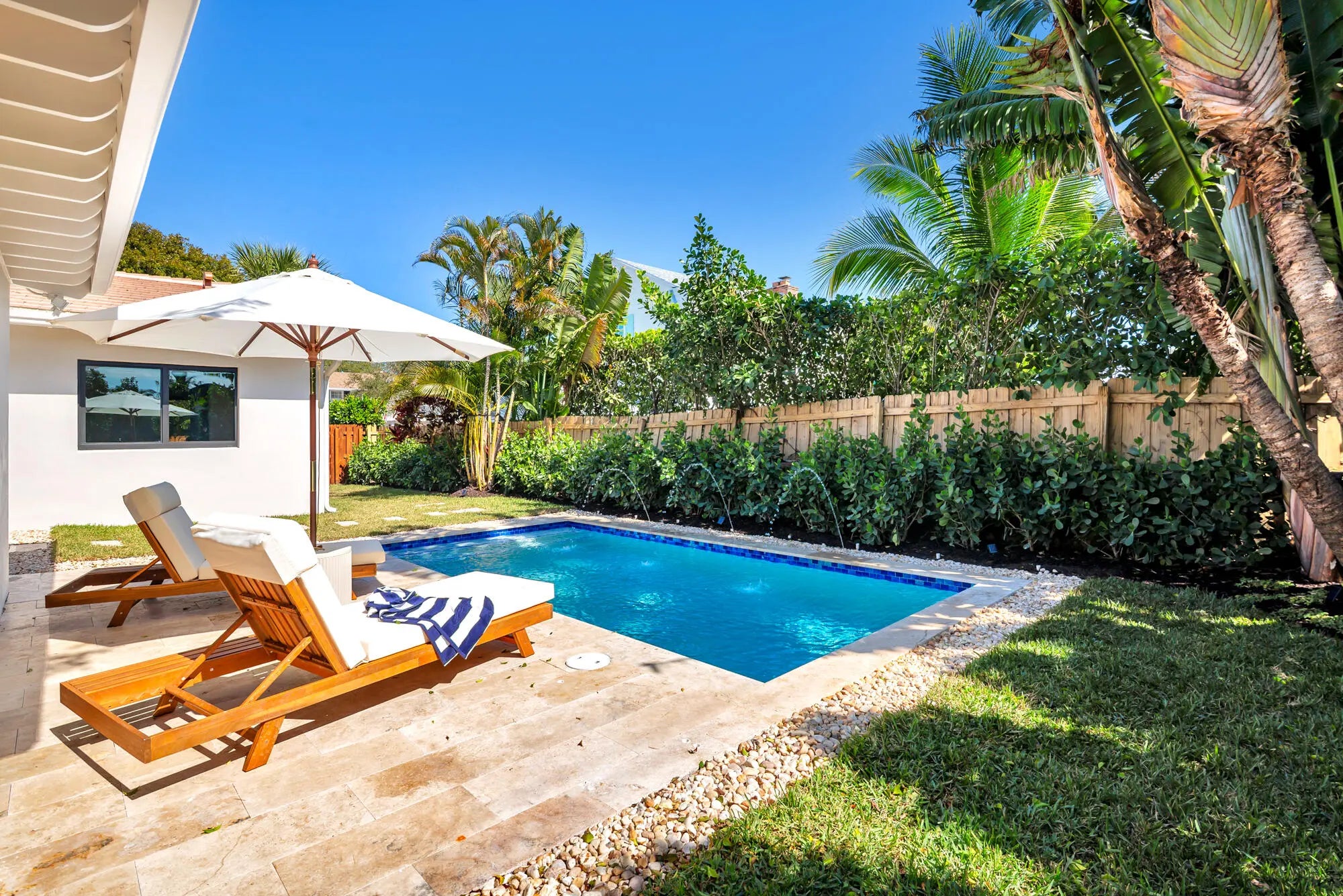 Completely renovated with new everything! New roof! New copper plumbing! New hurricane impact rated windows and doors! New kitchens, bathrooms and swimming pool! This spectacular 3 bedroom/ 3 bathroom home has 2,537' total square feet and is move-in ready! It features hardwood floors throughout and a massive primary bedroom, bathroom, and walk in closet. This home and its private backyard present a rare turnkey opportunity combining timeless finishes, modern upgrades, and resort-style living. Close to area beaches, I-95, Flagler Drive bike trail, fabulous 5 star dining and Worth Avenue shopping. Also, in the South Olive Elementary School district.