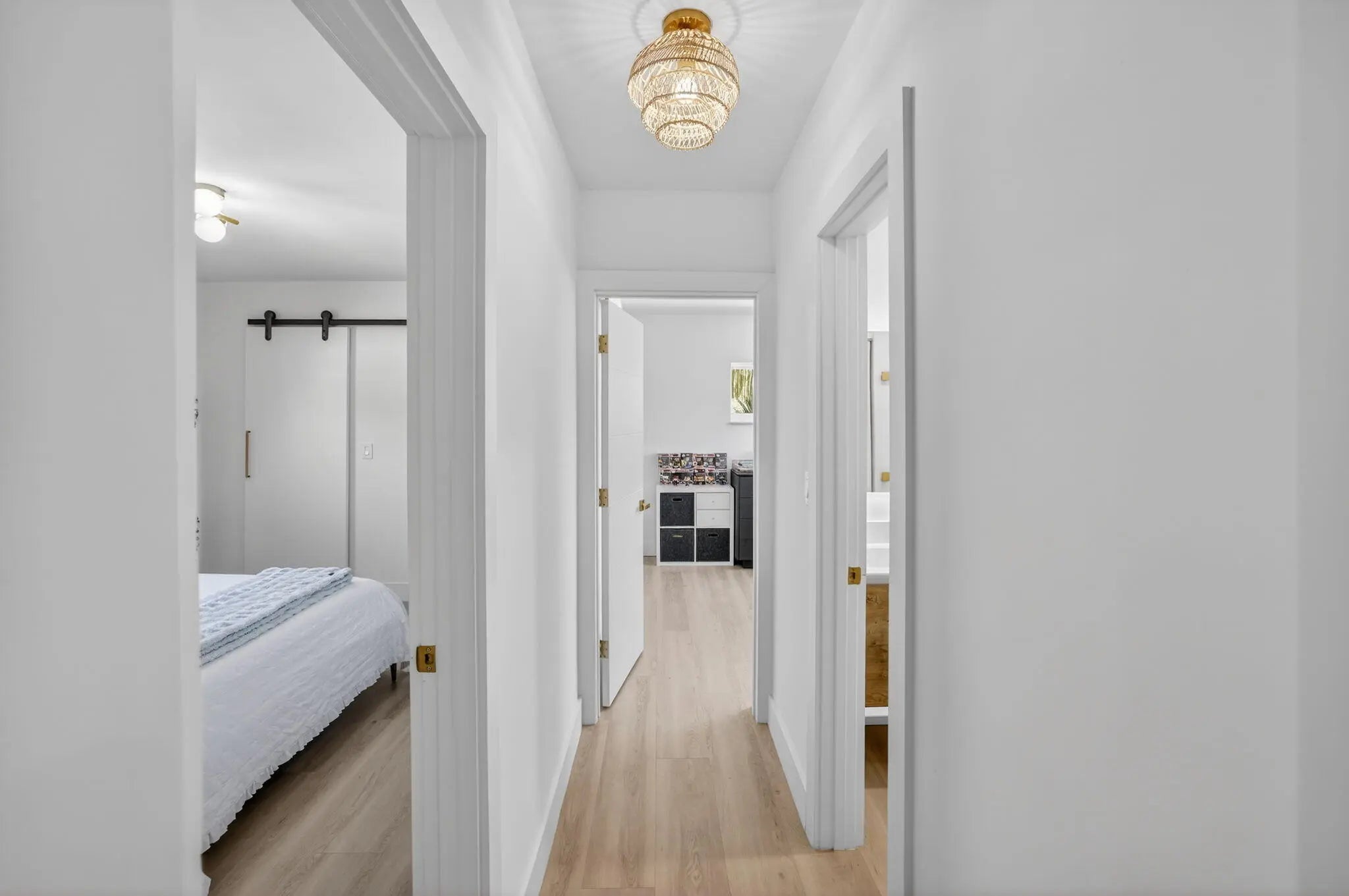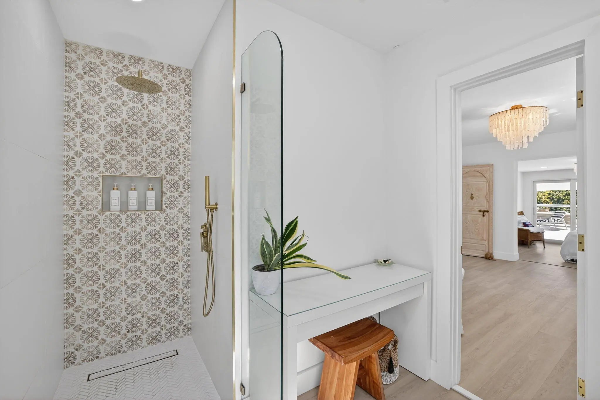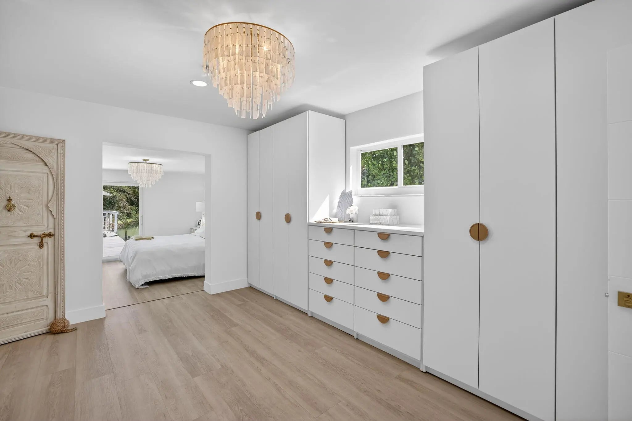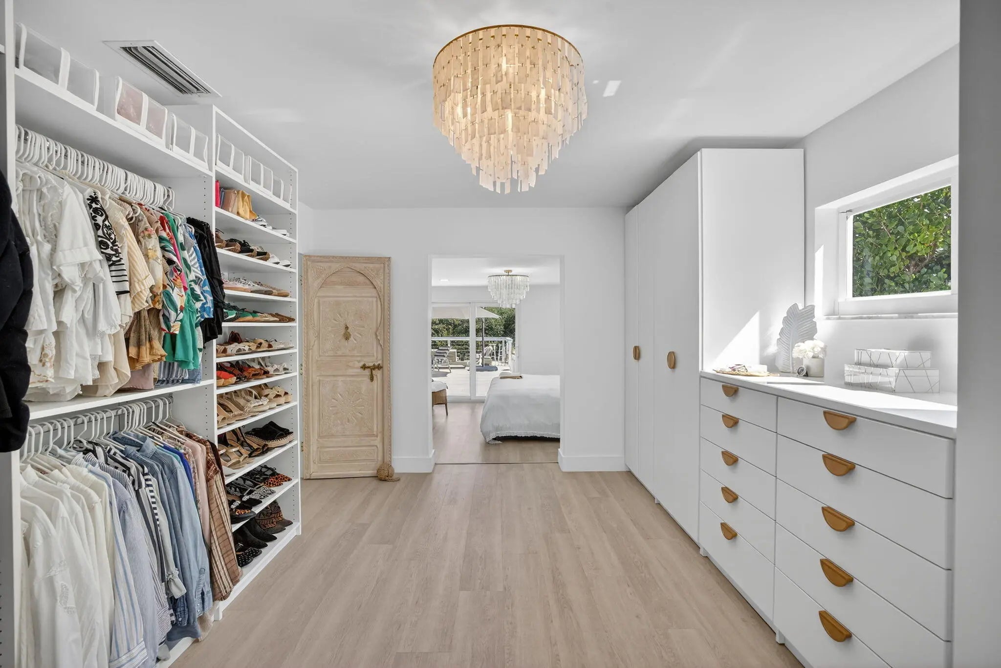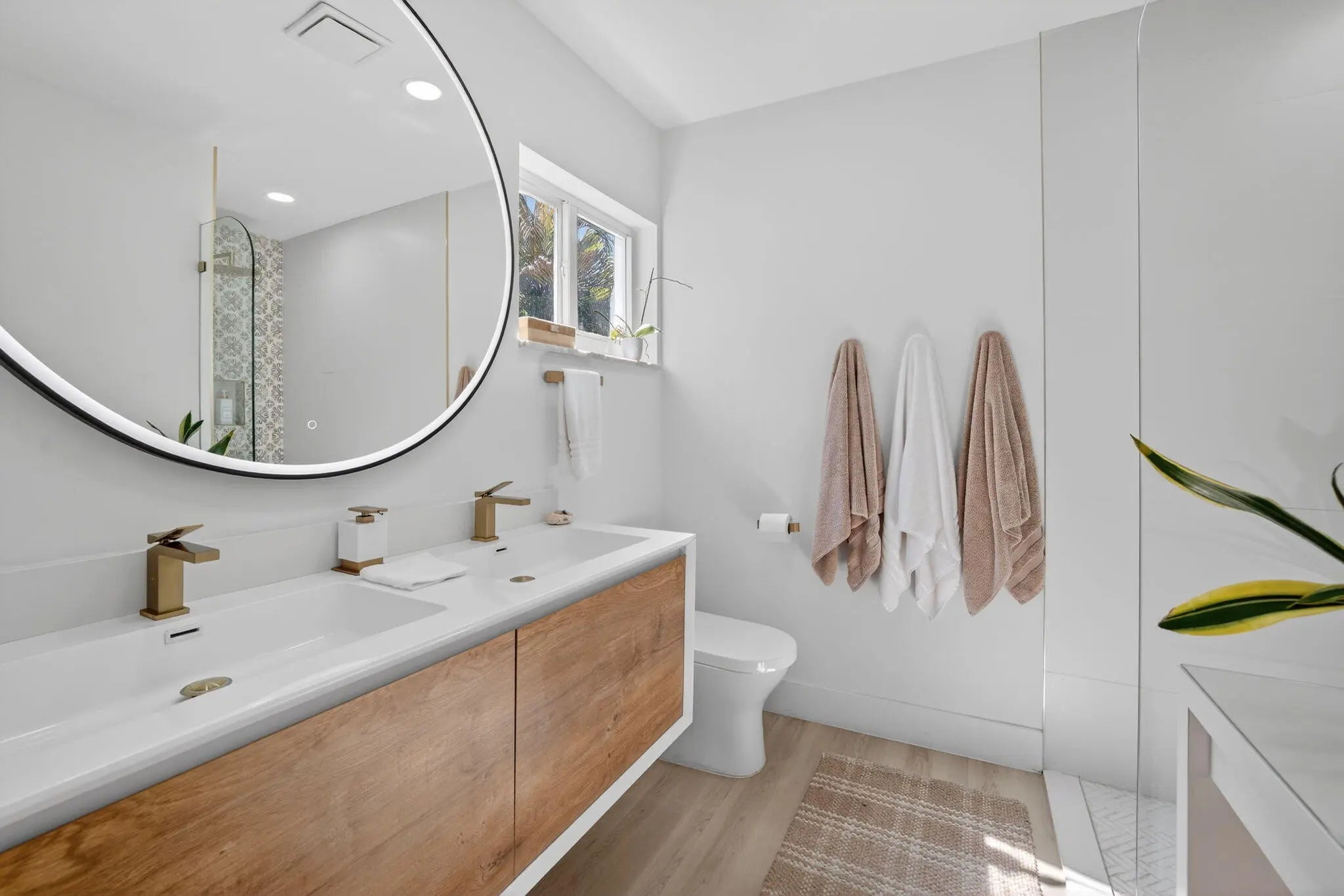 Exquisitely renovated 4BR/2.5BA coastal-modern lakeside residence in Conference Lakes Estates in the heart of east Boca. Impact glass and new roof. Wide-plank wood-look luxury vinyl floors lead to a showstopping chef's kitchen with waterfall-edge Samsung smart appliances, hidden pantry, custom European soft-close cabinetry, and striking quartz countertops. Statement lighting enhances open dining and an expansive great room with dual sliders to a stunning lakefront deck. The primary retreat stuns with a Moroccan entry door, custom closet room, and spa-inspired bath. Tropical grounds, room for a pool, and a 2-car garage.