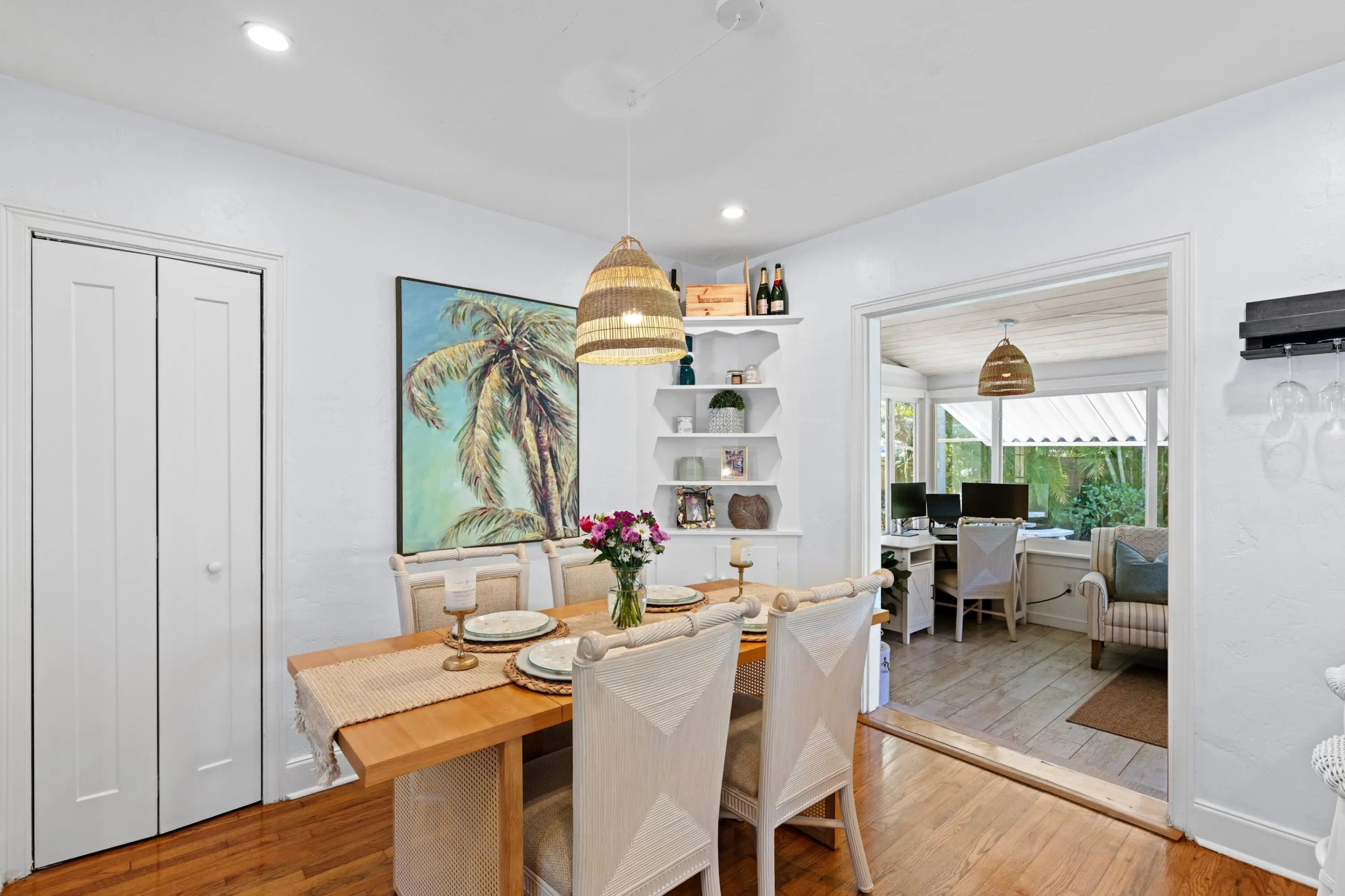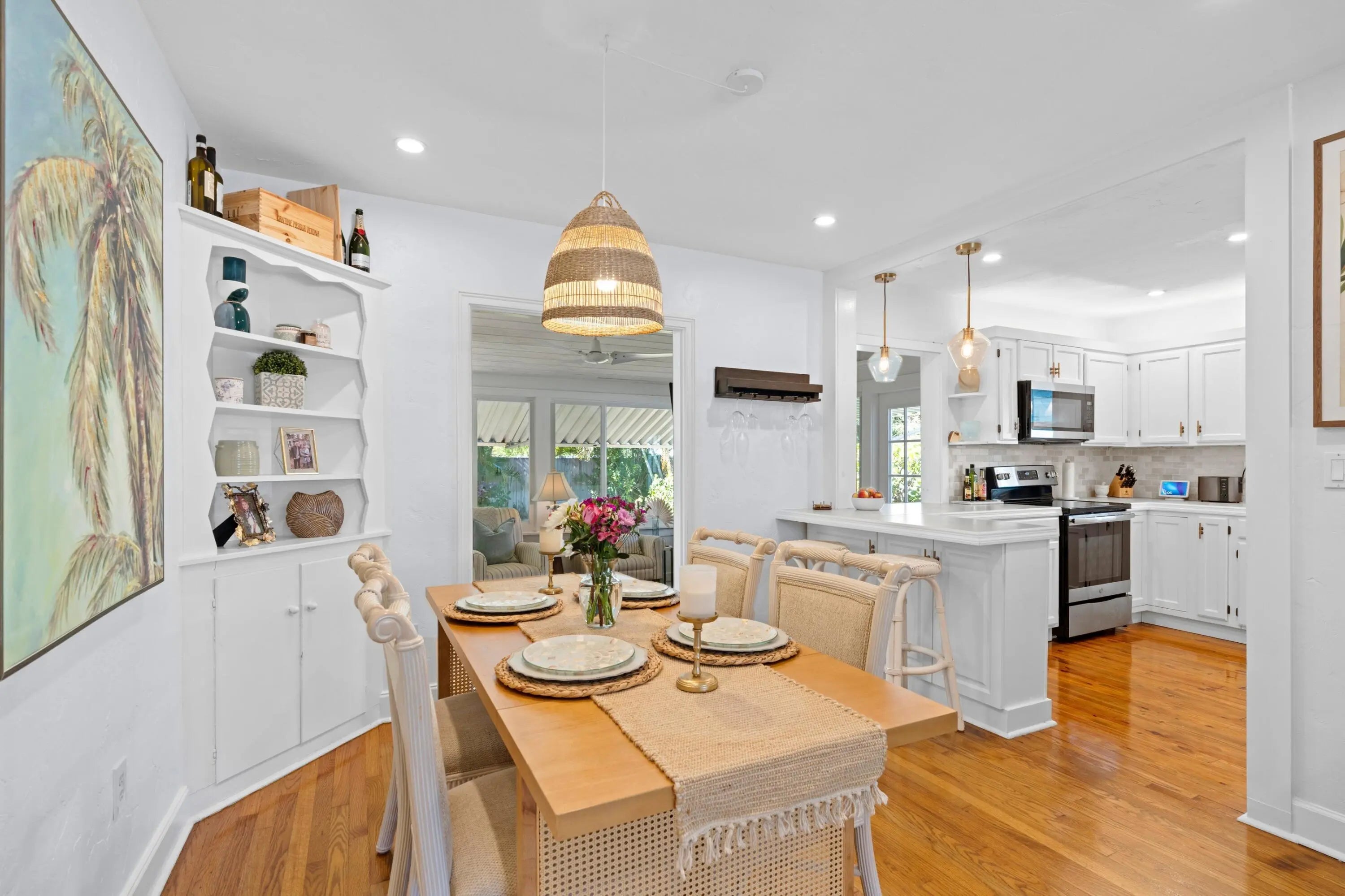 Beautifully updated Lake Worth Beach ''Cottage-Style'' home on North Palmway. Origianal oak hardwood flooring, fireplace mantel, and plaster walls. A very cozy, and solid home, with all impact glass windows, a metal roof, and updated electric system. The living area opens up to the kitchen, and large family room looking out to the fenced yard, and patio area. The primary bath was recently updated, with a step-in shower, the 2nd full bath has the laundry closet inside. There is also a storage garage large enough for a golf cart. The patio area is tiled with re-claimed bricks, and room enough for a pool. The proposed pool photos are in the listing. The location is close to the north entrance to the golf course, and pathway leading to the clubhouse, and restaurant. In move-in-condition!