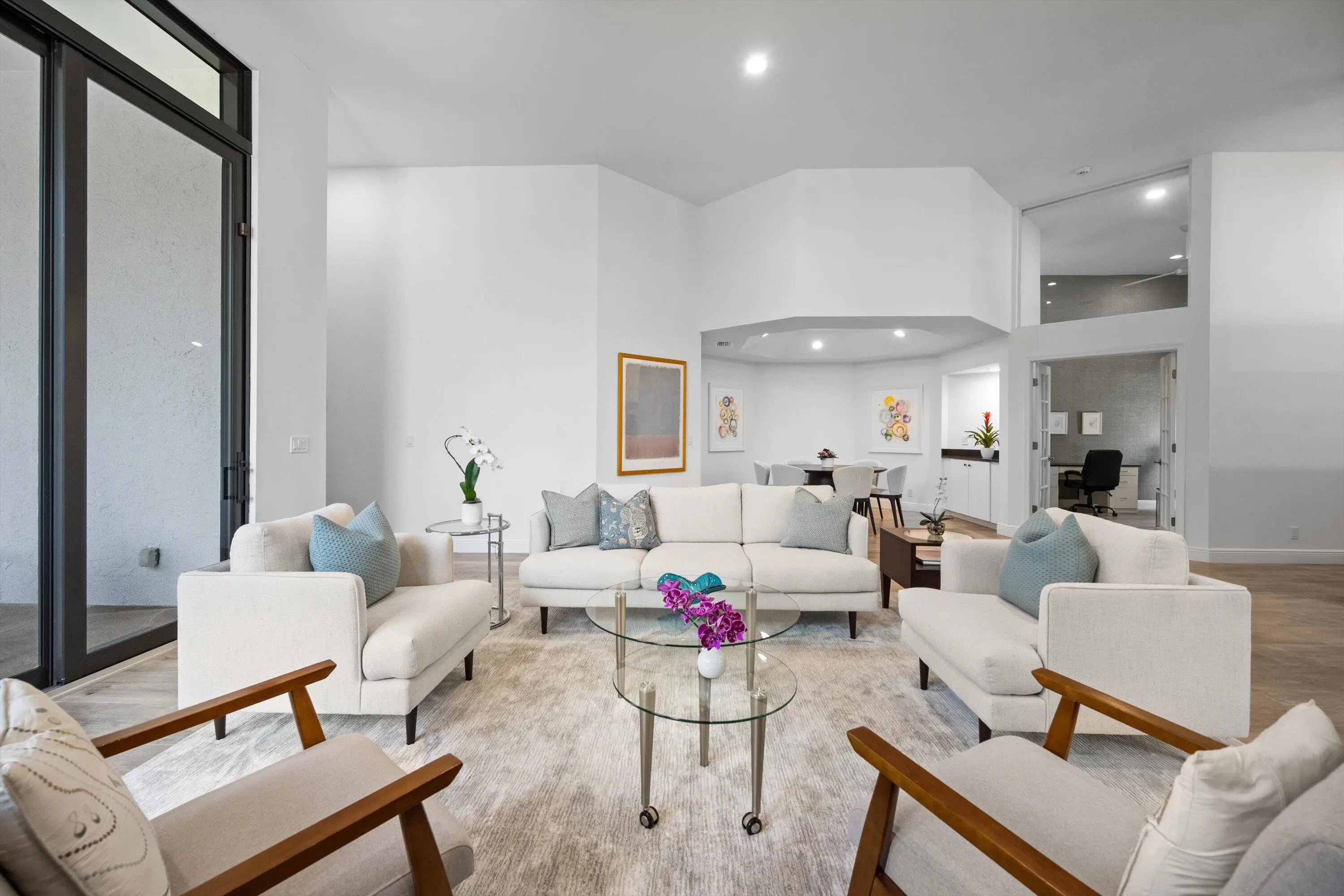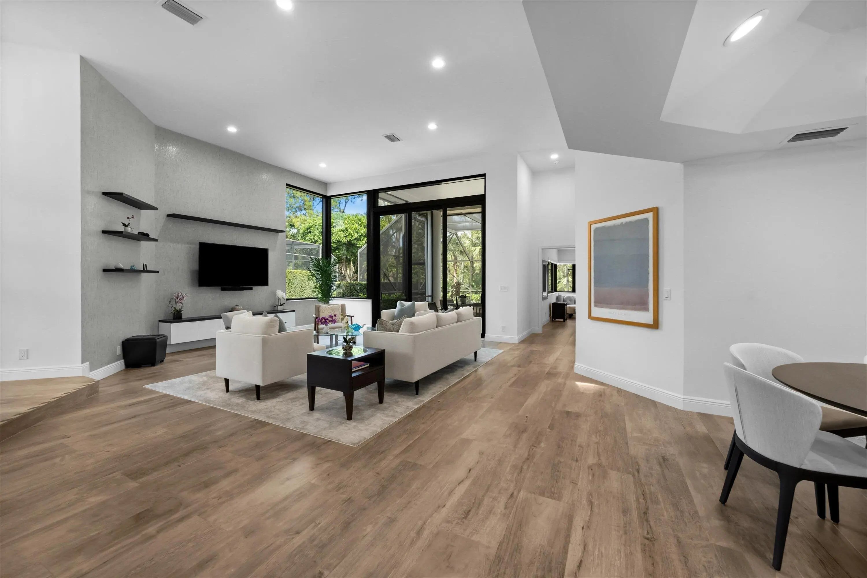 Breakers West 'turn-key' Sand Drift Villa has been recently renovated and ready for you to start enjoying the Palm Beach County lifestyle! With over 2,000 SF Living Area, this home has 3 Bedrooms, 2 Baths, 2-car garage plus a private screen enclosed patio surrounded by manicured landscaping and the Mayacoo Golf course beyond. The 13 ft ceilings in main living areas along w/ 10ft sliding doors are impressive. Some of the many excellent features for a Buyer to enjoy include: New roof in 2023; complete impact windows and doors; Shaker-style kitchen cabinets with white quartz countertops; wide plank flooring; and 2 fully renovated bathrooms. Nothing has been overlooked! Living in the Sand Drift Villa neighborhood, you will enjoy the conveniences the HOA provides: roof maintenance, exterior