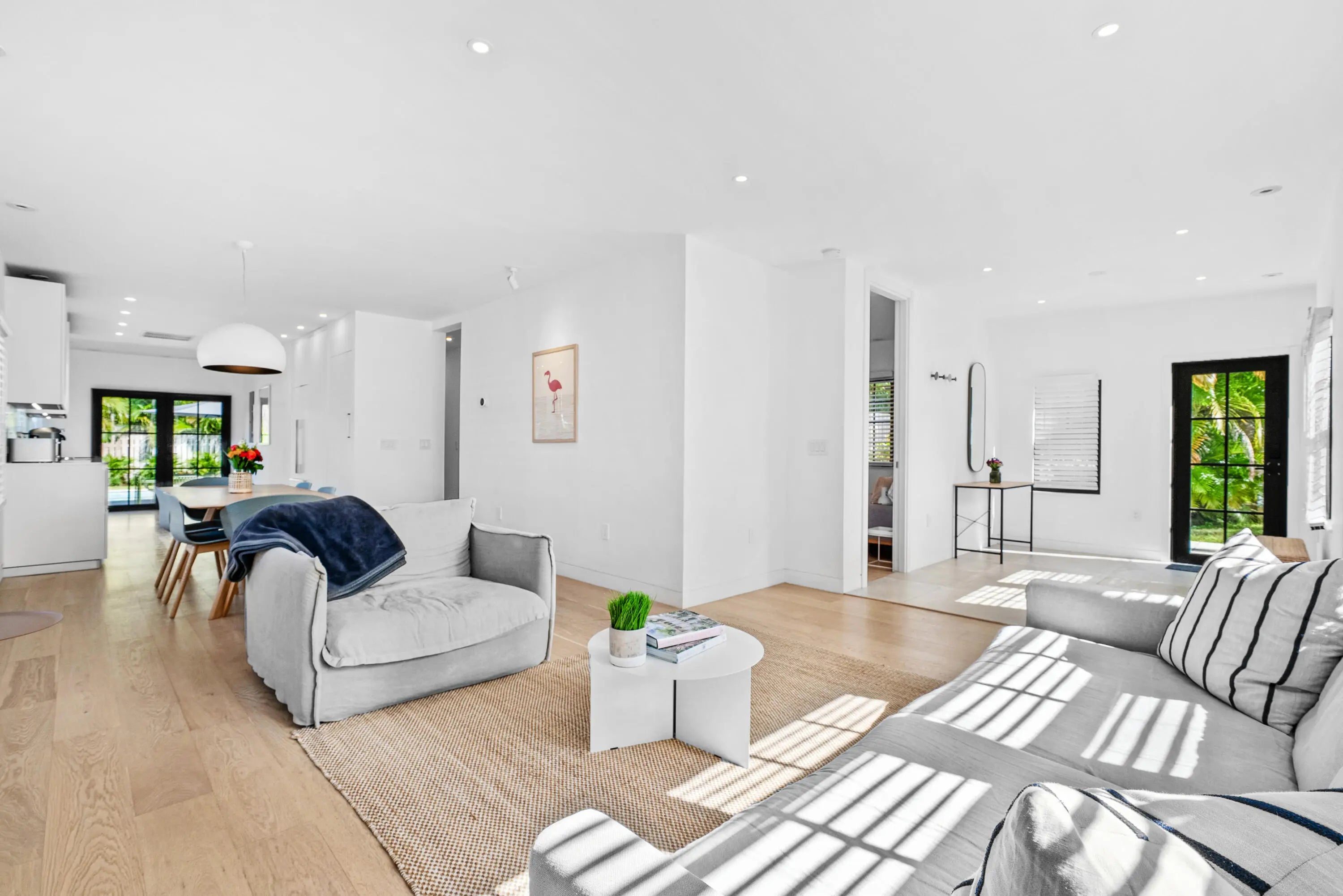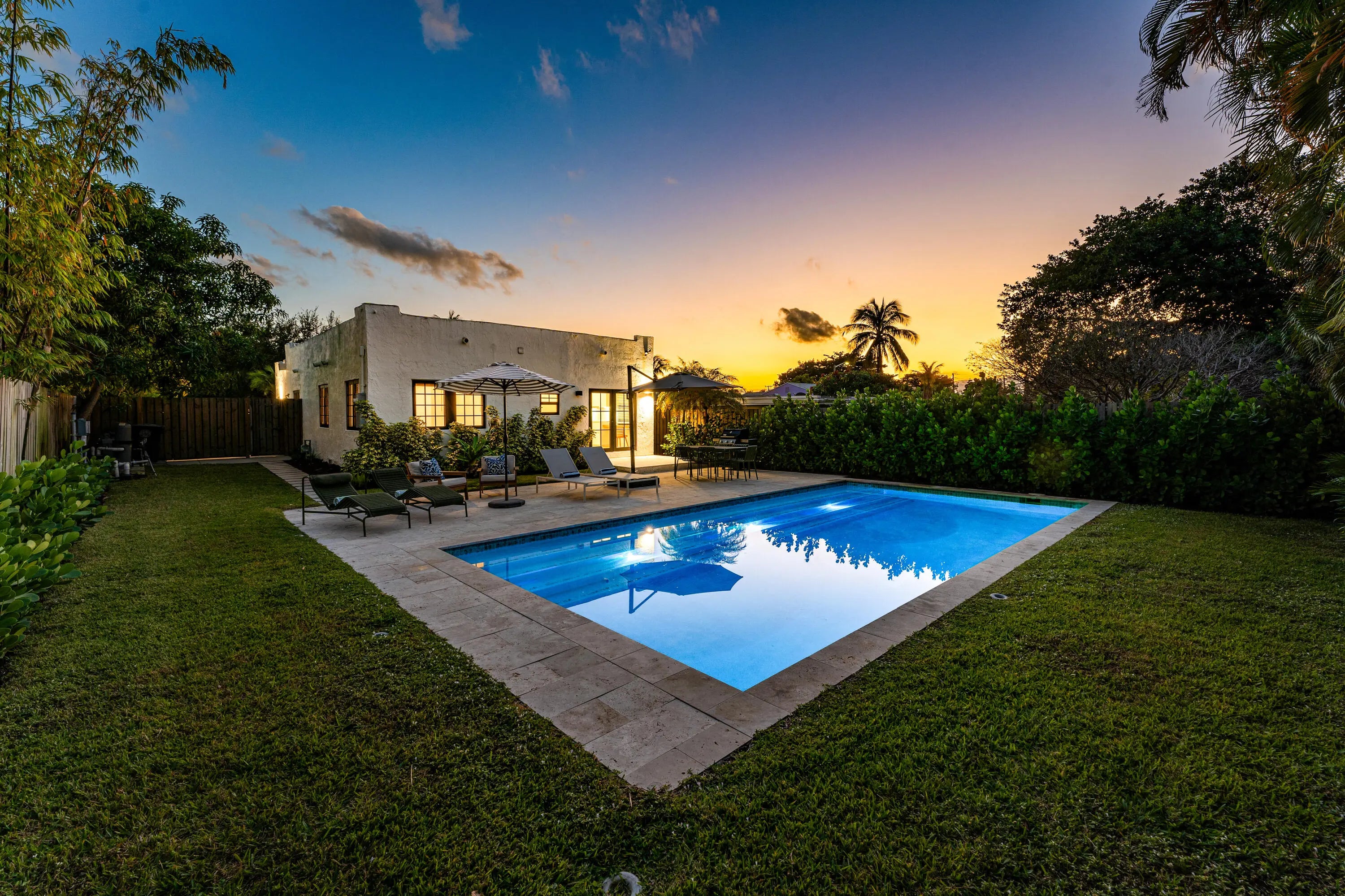 Live the Florida lifestyle with a modern edge in the heart of charming Flamingo Park. This essentially new home was completely rebuilt with no corners cut--only the original stucco remains. Every stage was city-inspected to ensure quality, safety, and compliance. Light-filled interiors feature high ceilings, 8-foot doors, engineered hardwood floors, imported Italian tile, and designer European lighting. The Pedini kitchen from Italy pairs with Bosch and Fisher & Paykel appliances, while spa-like baths feature AquaBrass fixtures. Outside, enjoy a landscaped private yard with a 30x15 walk-in heated saltwater pool and travertine terrace--perfect for entertaining. New roof, plumbing, electrical, HVAC, and spray foam insulation throughout.