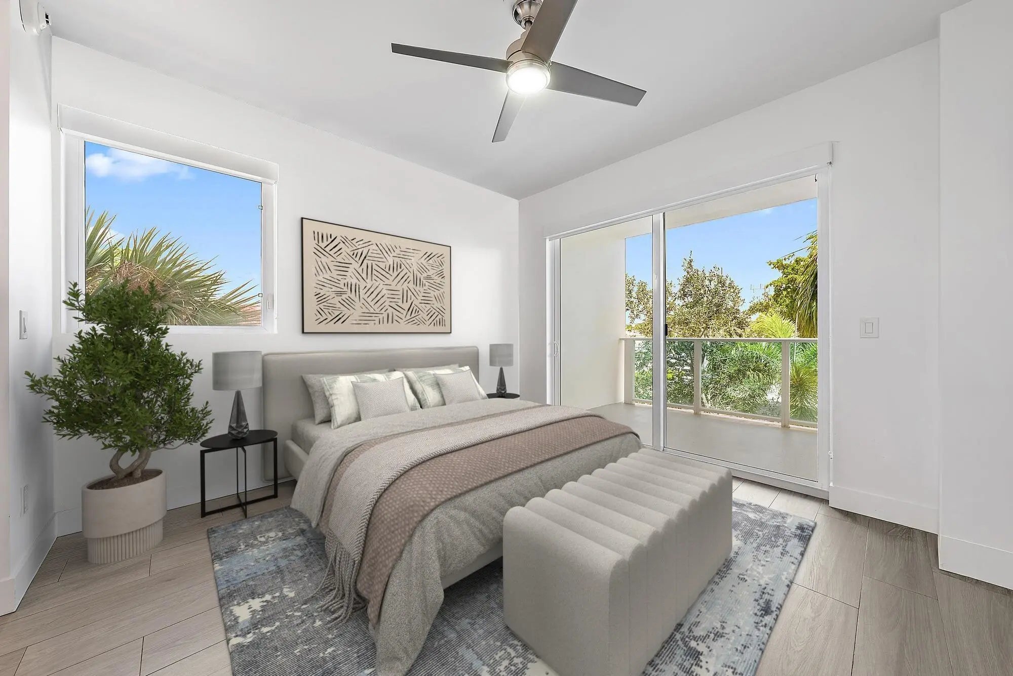 Modern Luxury Condo in the Heart of Lake Worth Beach. Experience boutique coastal living in this rarely available 2-bed/2-bath condo just minutes from the beach & downtown. Built in 2018, this light-filled home offers impact windows, wood-look flooring, 2 en-suite retreats, walk-in closets, spa-inspired bathrooms, a soaking tub, & volume ceilings. The kitchen features sleek cabinetry, quartz countertops, stainless steel appliances, & a breakfast bar. Enjoy an expansive balcony, storage closet & gated parking. The exclusive 14-unit building offers a fob-access lobby, rooftop deck w/ swim spa, BBQ kitchen, & city views. Pet-friendly w/ flexible leasing (4x per year OK). Refined coastal living close to the ocean, golf, tennis, Bryant Park, restaurants, & shops.