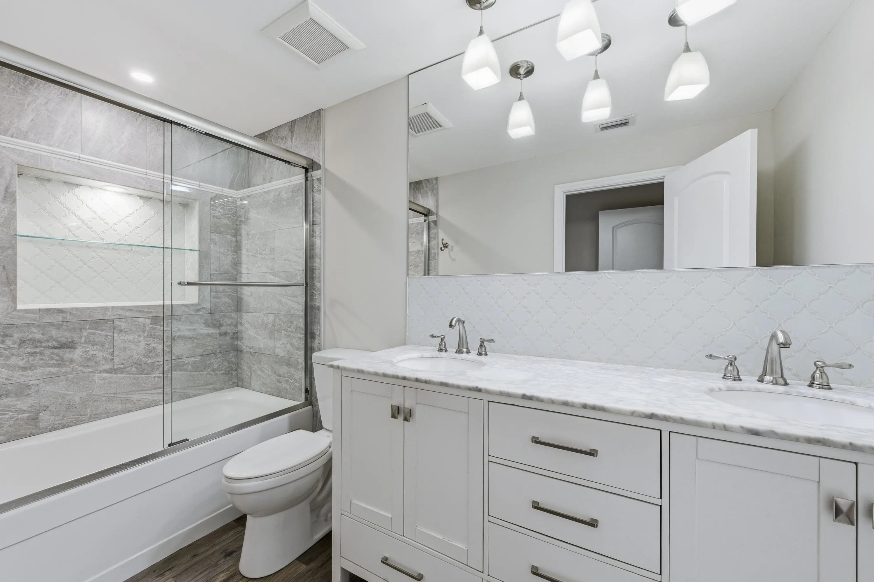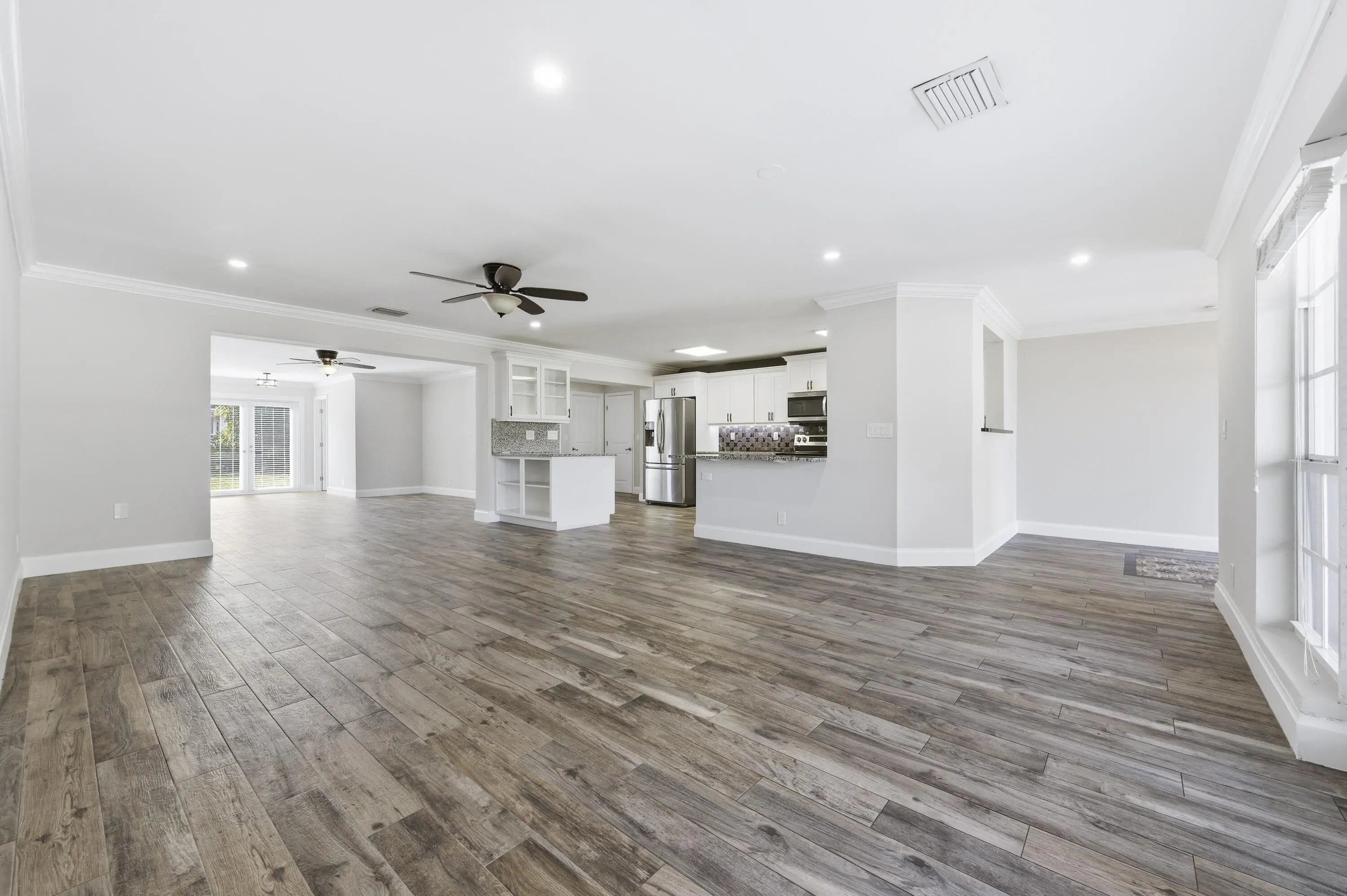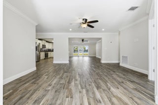 Fabulous direct lake views set the stage for this beautifully updated mid-century modern masterpiece! This spacious 5-bedroom, 4-bath residence offers a versatile layout, including a 4BD/3BA main living area plus a private 1BD/1BA mother-in-law suite with its own entrance--perfect for guests, extended family. Completely renovated down to the studs in 2017, the home features a contemporary open-concept floor plan with new plumbing and electrical. The stunning kitchen is designed for both style and function, showcasing white shaker cabinetry with under-cabinet lighting, granite countertops, and a generous bar counter ideal for entertaining. Situated on an oversized corner lot, the property offers two driveways and ample space for a pool, RV, and boat parking--an exceptional find!