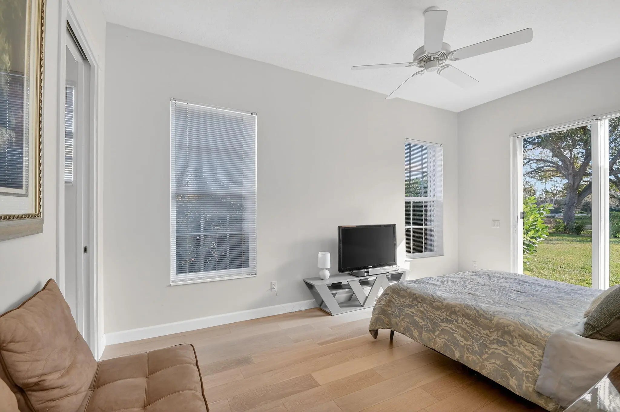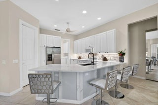 Turnkey Waterfront Living | Fully Furnished | UpgradedMove right into this beautifully maintained Lakeside Windsor home in Riverwalk, a 24-hour manned, gated community. Situated on an extra-wide, nearly 1/4-acre waterfront lot, this residence is offered fully furnished--all furniture included in the asking price.Bright open layout with porcelain tile in main areas and new luxury wood flooring in the dining room and bedrooms. Private library/office, formal living and dining spaces, and a spacious kitchen featuring new countertops, stainless steel appliances, walk-in pantry, and breakfast bar overlooking the family room.Split-bedroom floor plan includes a primary suite with lanai access and spa bath, two additional bedrooms, and a fully remodeled second bathroom, plus a private