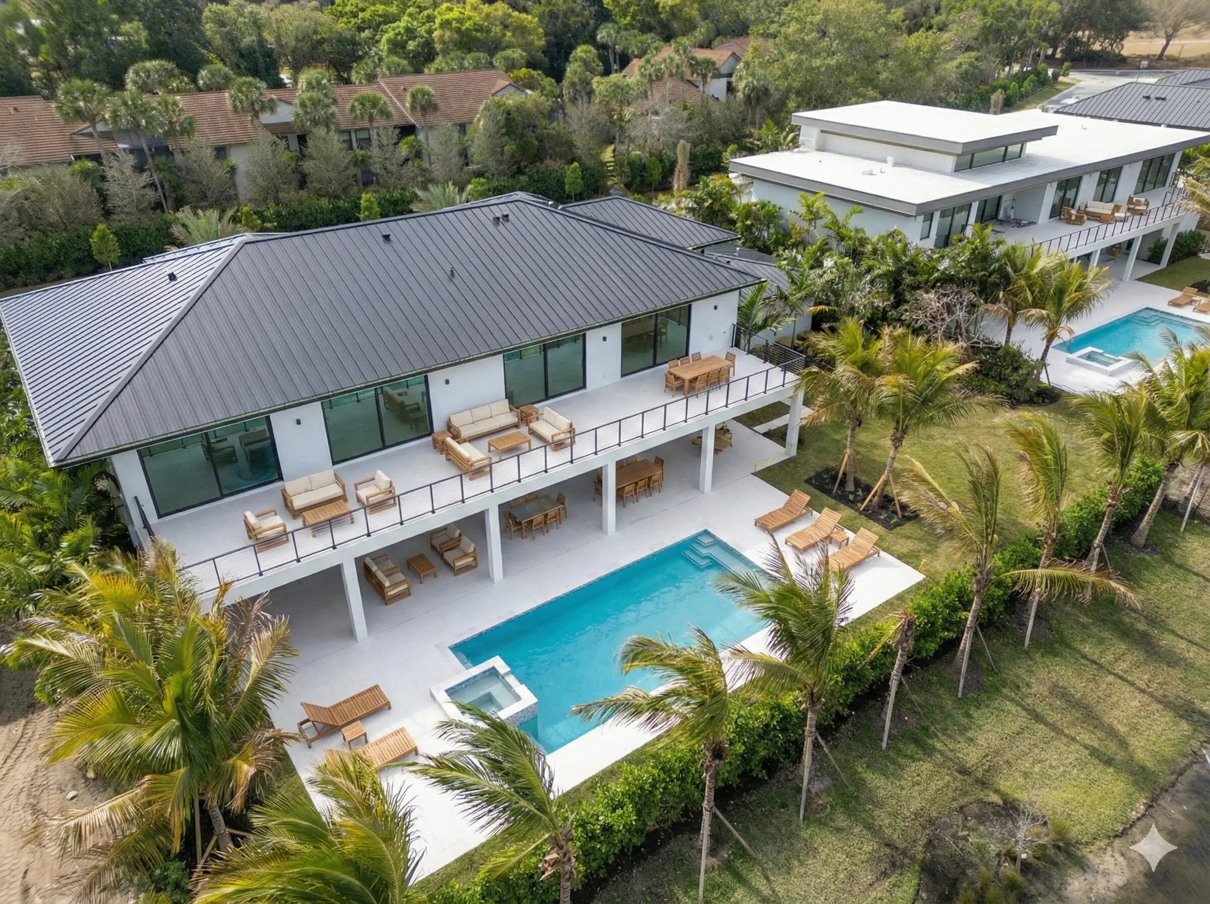 Welcome to Farrell Estates, a premier 27-home enclave in the Palm Beach Polo Club. Lot 22 commands attention with over 7,700 living sq. ft. and 10,000 total sq. ft. of architectural excellence. A grand staircase and two-story foyer lead to a main level finished in grand porcelain tile, featuring an open-concept family room, side bar, and chef's kitchen. This level includes a Junior suite and a unique flex-wing with a separate entrance, perfect for a gym or office. Upstairs, warm oak floors flow through five ensuite bedrooms and an expansive bonus room. The primary sanctuary offers a private sitting room and spa-like bath. Outside, a 1,000+ sq. ft. patio with a pool and spa defines Hamptons-style luxury. Experience a residence designed for the most discerning buyer.