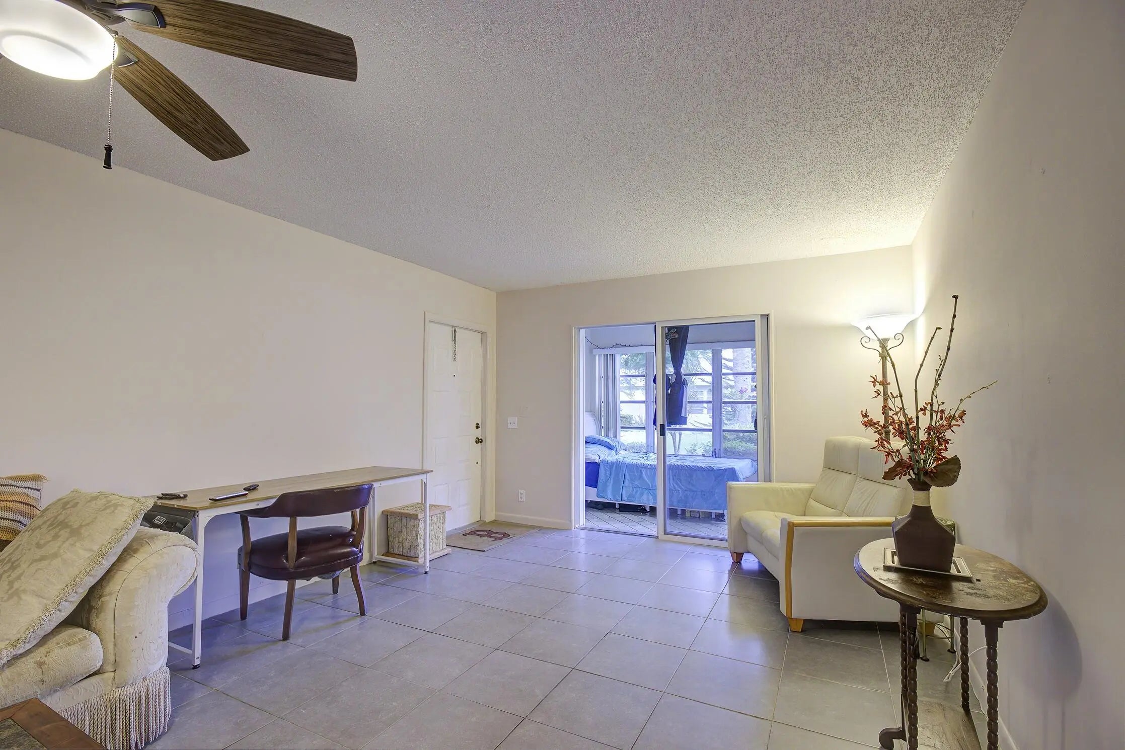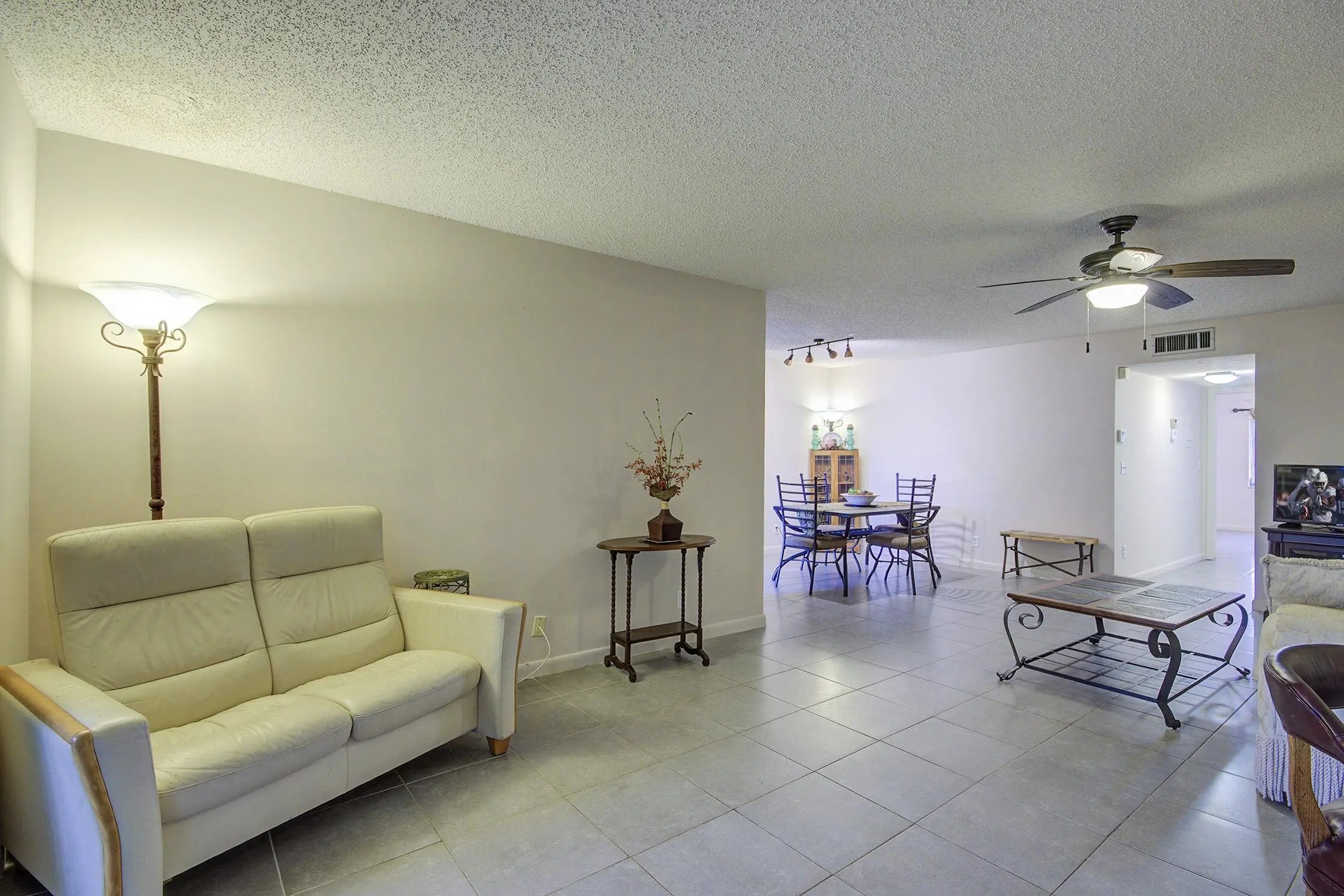 Your golden opportunity to purchase a bright, spacious, and airy 1BR/1.5BA villa. This villa is the most desired corner of a Florida Model, nestled in an active 55+ community waiting for your designer's touch. This villa features: roof installed in 2020; enclosed Florida room with air conditioning; awning shutters; large galley kitchen; AC handler and compressor installed in 1/2025; neutral tile flooring throughout. This villa is offered furnished. Enjoy Florida living at its best in this very active 55+ community, where you'll find many planned social activities, a large, heated resort-style community pool, an updated clubhouse, tennis, pickleball courts, and shuffleboard. Located close to all amenities, just minutes to the beach, discover quaint shops, open-air cafes, fine restaurants,