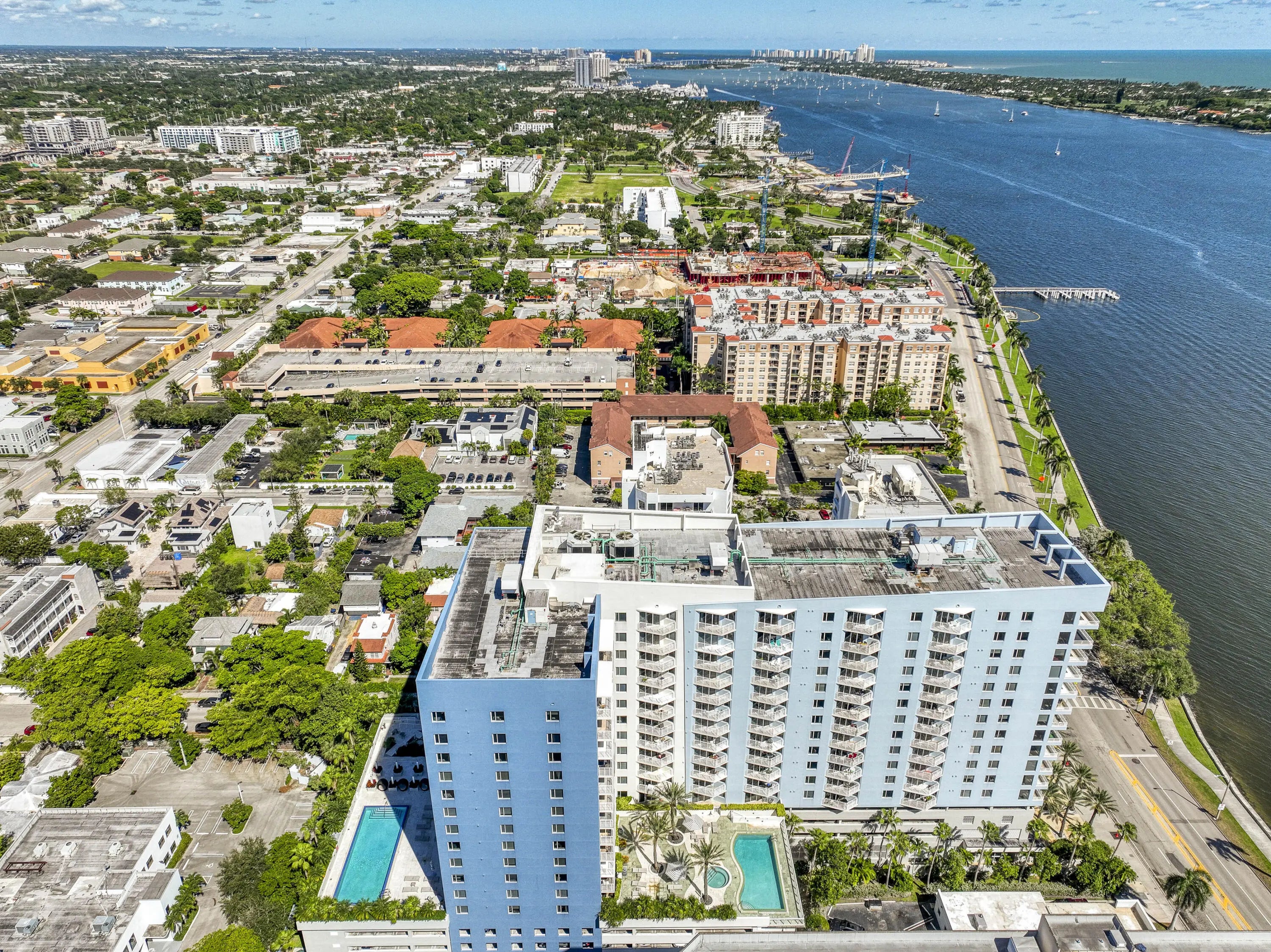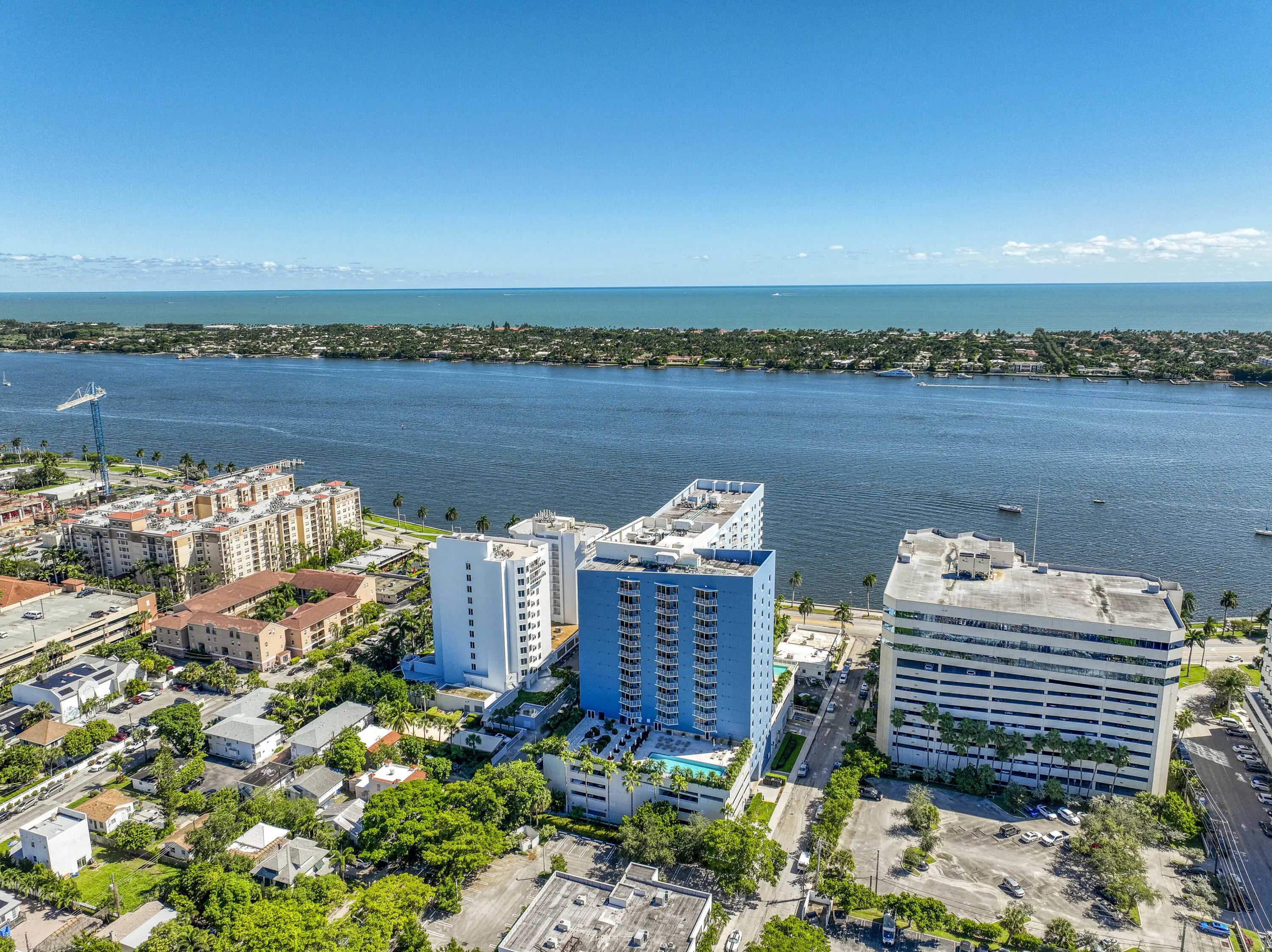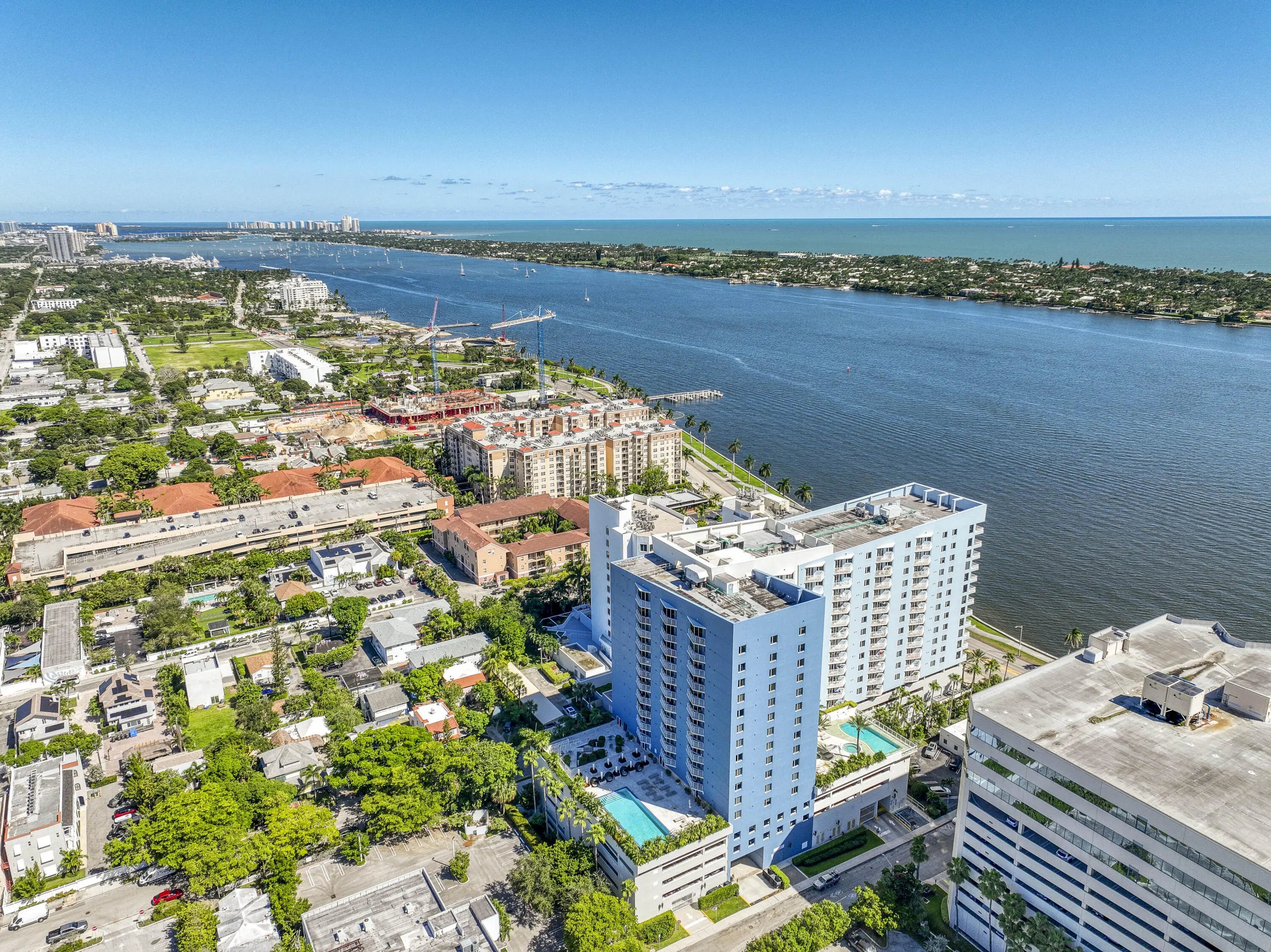 Discover LP16 at The Slade, a rare 2BR/2BA lower-level penthouse where architectural design, light, and panoramic views converge. Fully reimagined in 2024, this residence features a complete top-to-bottom renovation with custom doors, trim, kitchen, baths, and refined living spaces throughout. Soaring 10' ceilings, exclusive to penthouse floors, create a dramatic sense of volume, while the ideal east-west orientation with southern exposure floods the home with natural light. From the terrace, enjoy a stunning 180-degree panorama of the Ocean, Palm Beach Island, the Intracoastal, downtown West Palm Beach, and sunset skies. The Slade offers a true waterfront lifestyle along the Intracoastal Waterway, with front-row boating views, morning walks on Flagler Drive, sunset moments from private