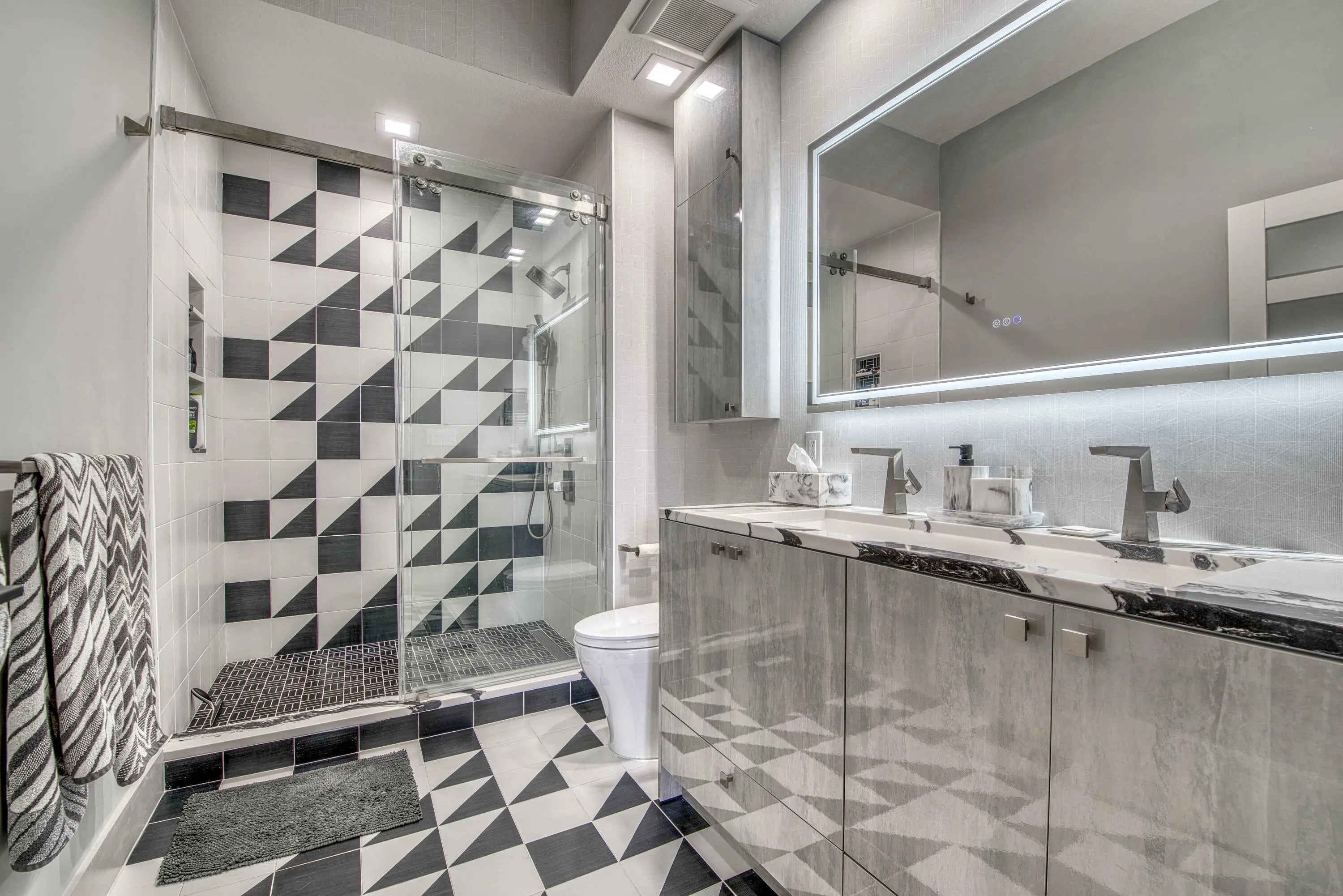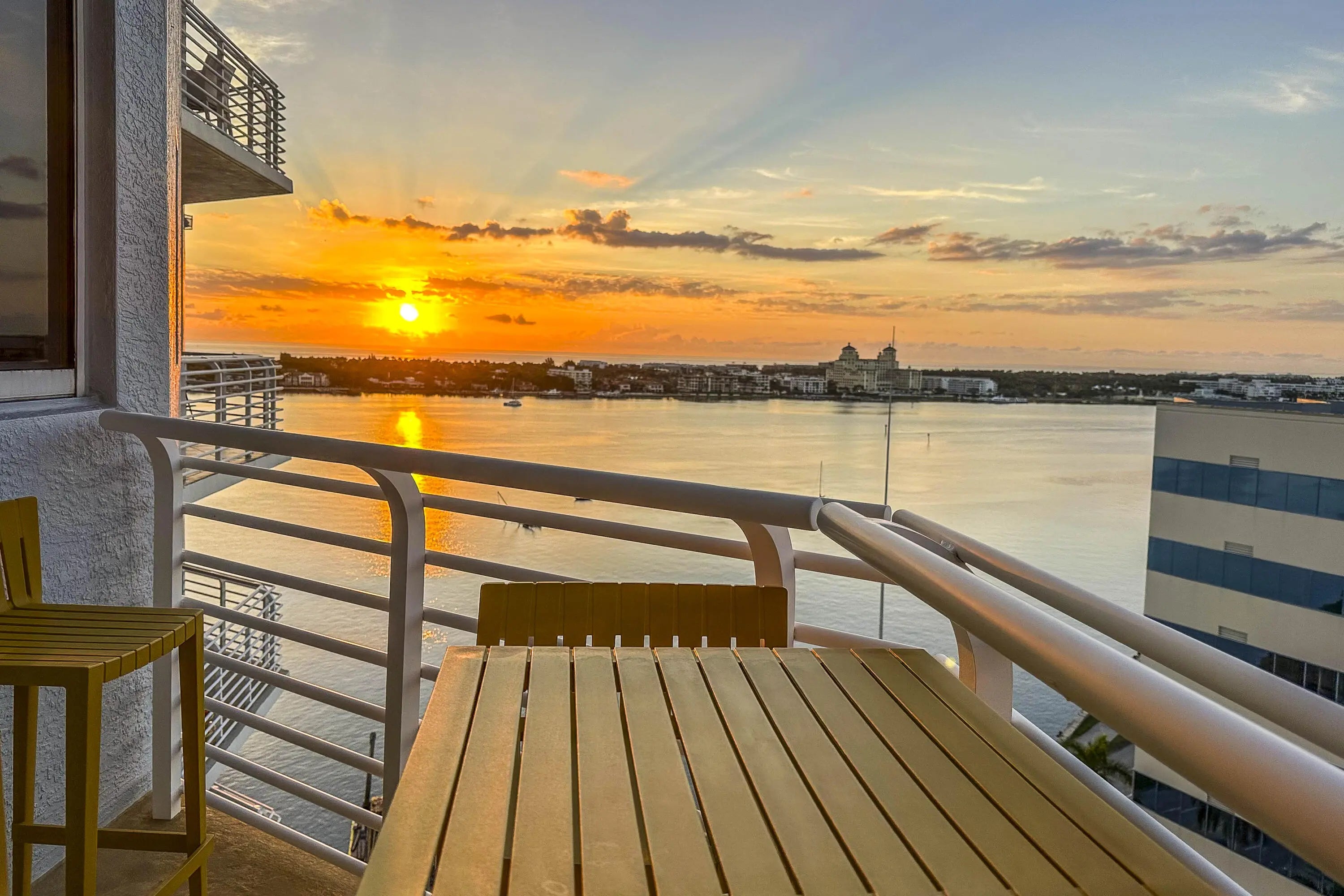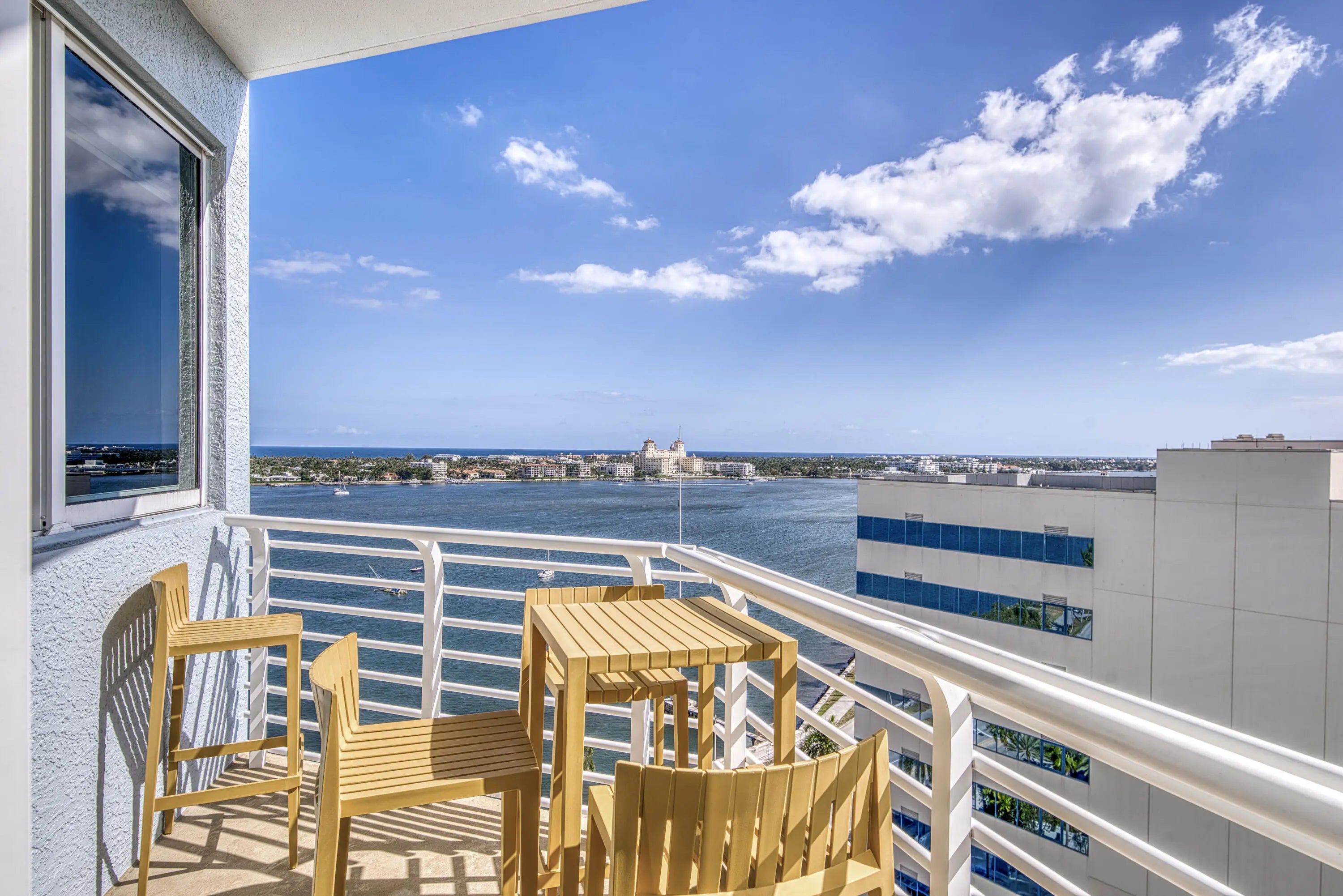 Discover LP16 at The Slade, a rare 2BR/2BA lower-level penthouse where architectural design, light, and panoramic views converge. Fully reimagined in 2024, this residence features a complete top-to-bottom renovation with custom doors, trim, kitchen, baths, and refined living spaces throughout. Soaring 10' ceilings, exclusive to penthouse floors, create a dramatic sense of volume, while the ideal east-west orientation with southern exposure floods the home with natural light. From the terrace, enjoy a stunning 180-degree panorama of the Ocean, Palm Beach Island, the Intracoastal, downtown West Palm Beach, and sunset skies. The Slade offers a true waterfront lifestyle along the Intracoastal Waterway, with front-row boating views, morning walks on Flagler Drive, sunset moments from private