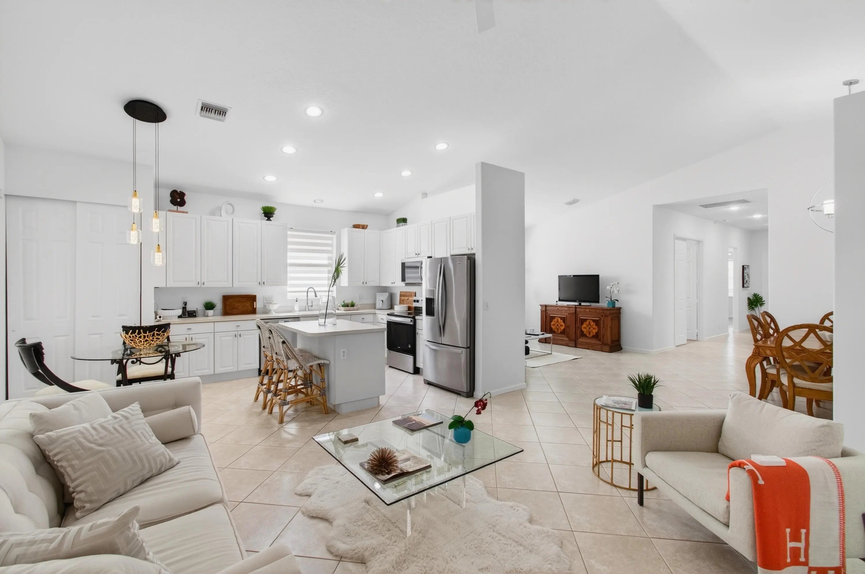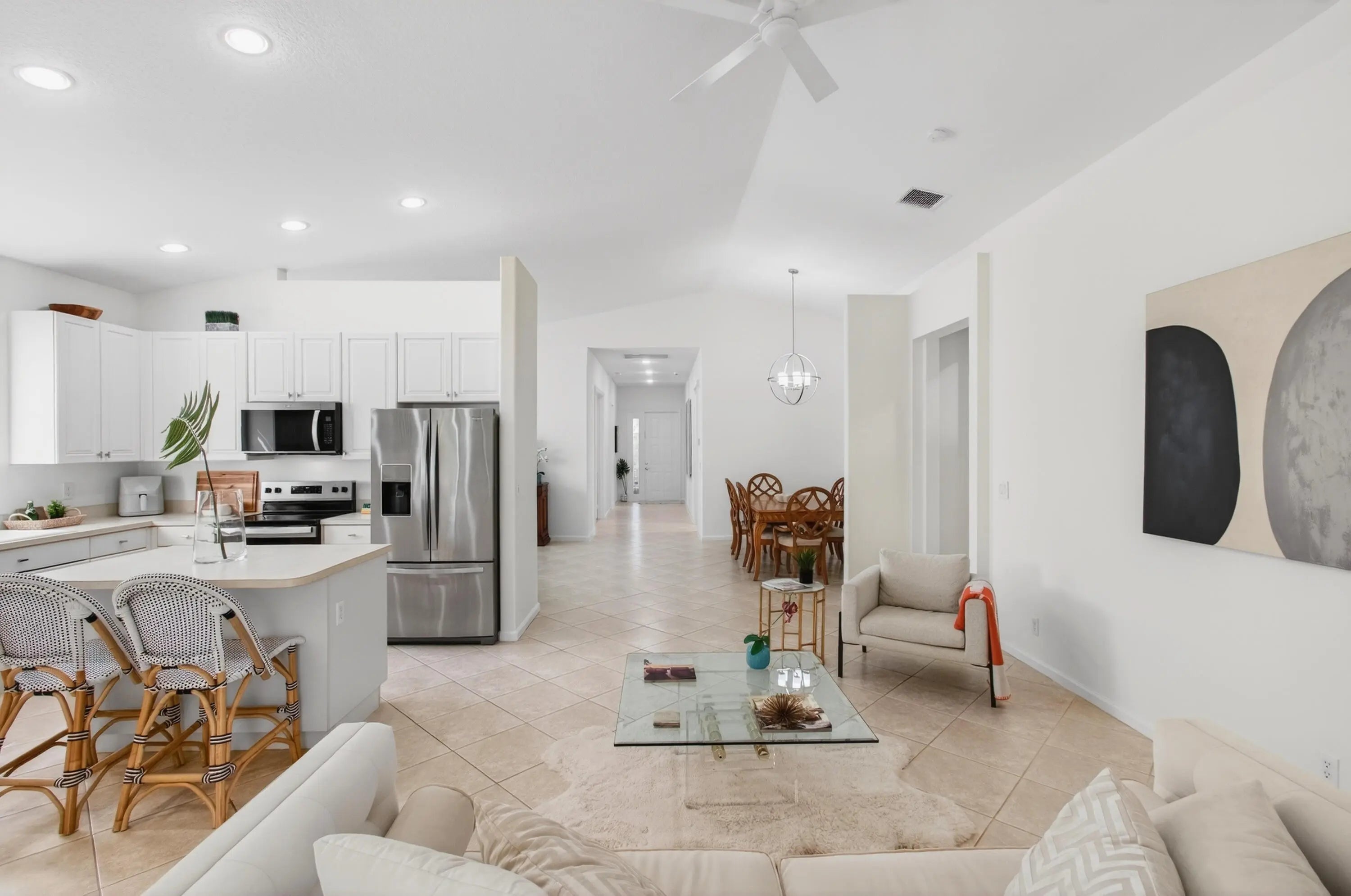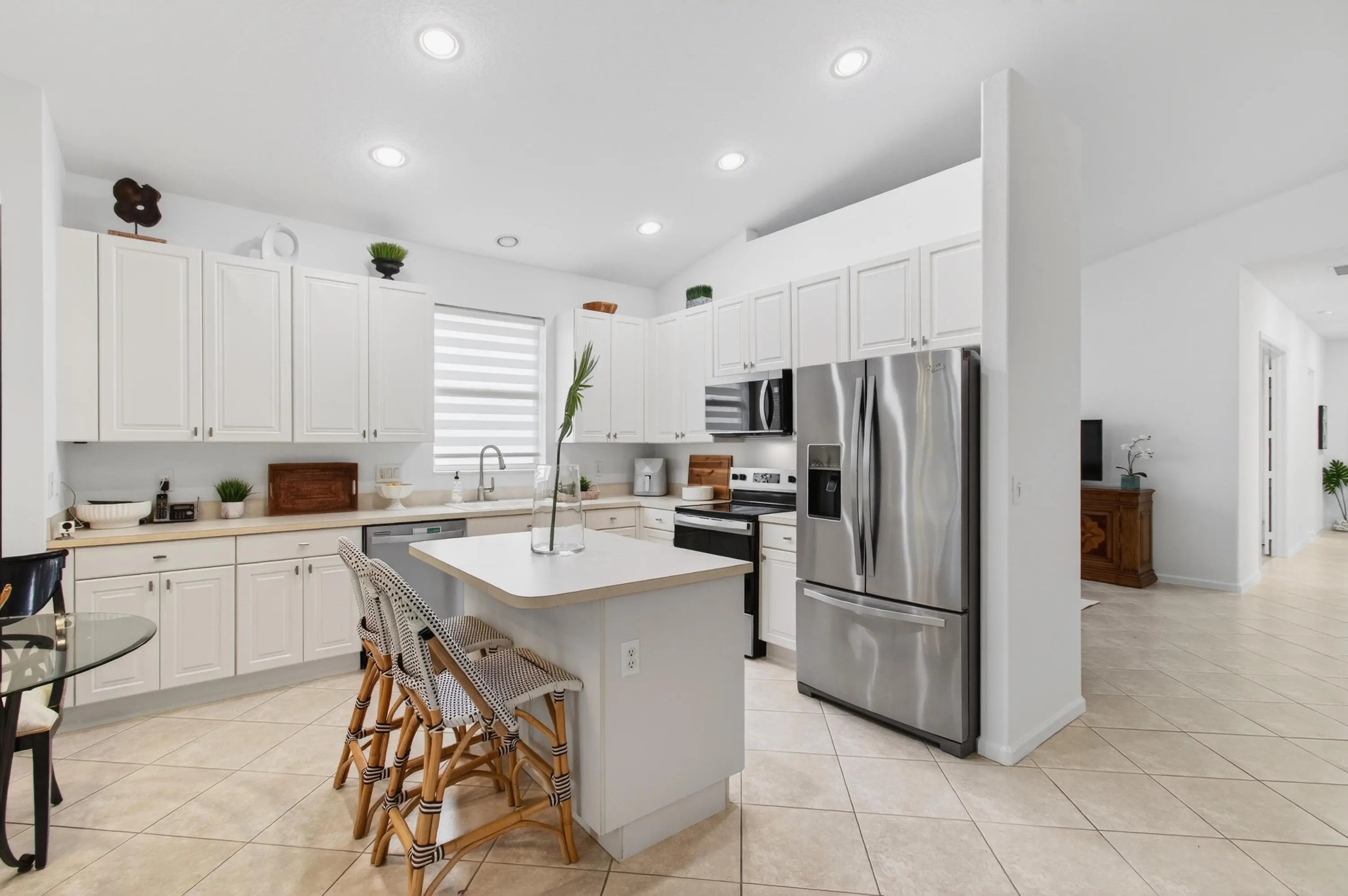 STUNNING HOME 3/2. Gracious Living in This Impeccably Maintained & updated Nantucket Model in Baywinds, Prestigious 55+ Pet-Friendly Resort Style Community. Dramatic Entry Foyer & Long Hall Lead to Open Plan Living, LR, DR, Family Rm, EIK w Newer SS Appliances, Pantry. Chef's Island, Cafe Area, En-Suite PBR Huge Walkin, PBA has Dual Vanities, Sep Stall Shower, Roman Tub, Block Glass Window for Natural Light. 100% Carpet Free, New LVT Flooring in BR's, Vaulted Ceilings, New Ceiling Fans, Freshly Painted. All Furn Can Be Inc.