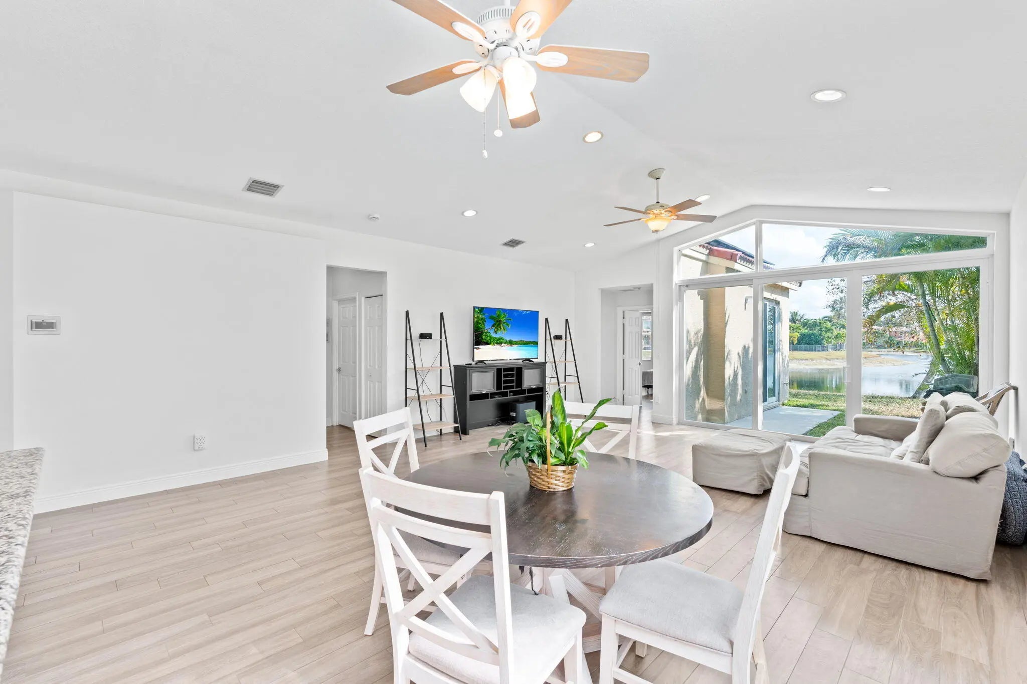 Welcome home to this rarely available and highly sought-after Marsala model offering the ease of single-story living with breathtaking long lake views in Olympia.From the moment you enter, soaring vaulted ceilings and expansive water views create a bright, open atmosphere that feels both inviting and impressive. The split floorplan provides privacy and functionality, with four spacious bedrooms and two bathrooms thoughtfully designed for comfortable everyday living and effortless entertaining.This home is more than beautiful - it's smartly upgraded: 2022 roof Impact glass Fully paid solar panels New flooring 2018 HVAC 2025 water heater With the major systems already updated, you'll enjoy peace of mind, energy efficiency, and long-term value.