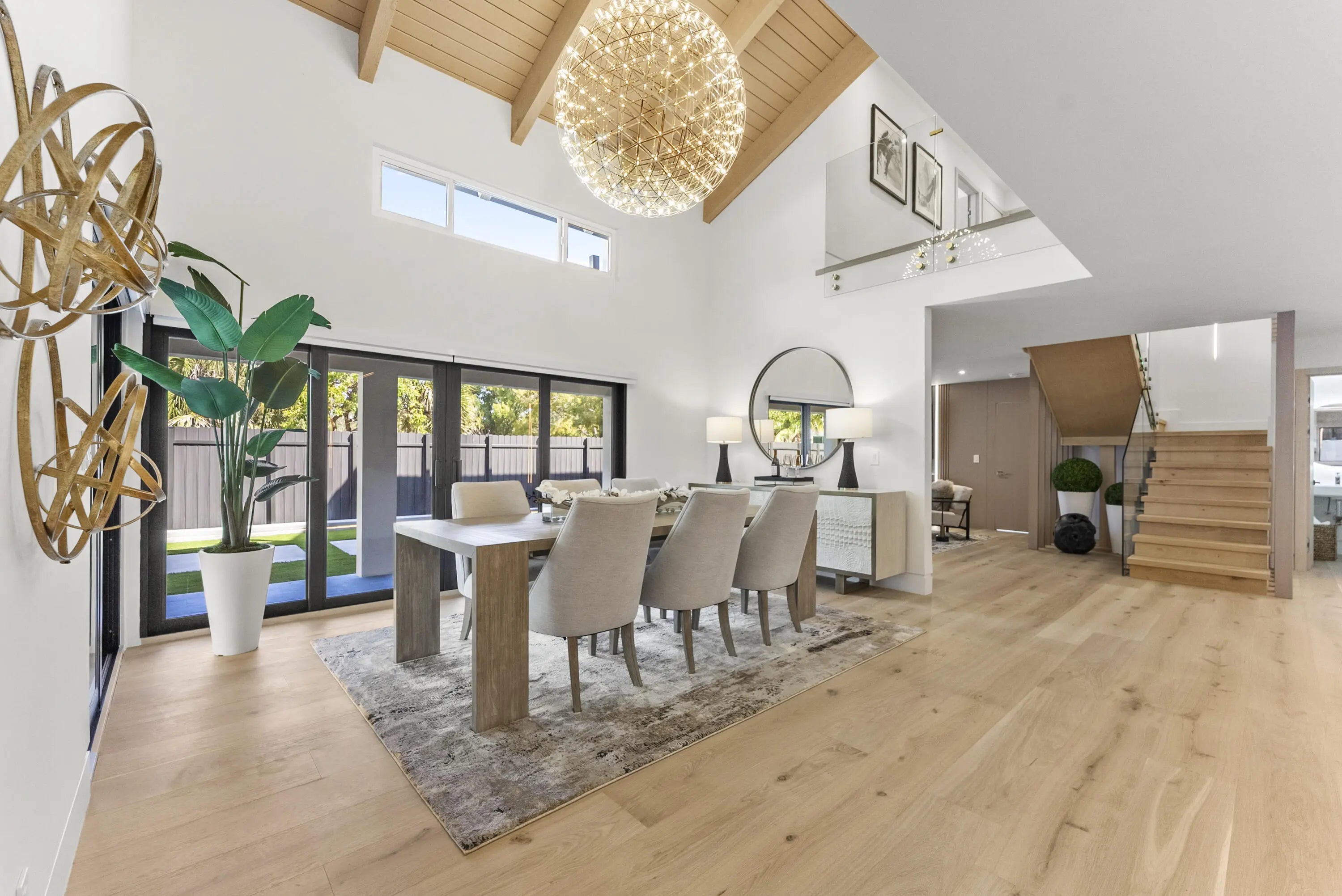 A showstopper from top to bottom! This 5-star renovation is the epitome of modern luxury, featuring exquisite wood floors, sleek custom cabinetry, and solid wood hinge-less doors that make a bold statement. The Thermador appliances and wood-paneled walls bring both sophistication and warmth, while the brand-new AC, custom lighting, and expertly tiled baths showcase impeccable attention to detail. Professionally wallpapered accents add a touch of elegance throughout. With a spacious 2-car garage and just a short stroll to the beach, this home offers the ultimate in style and convenience. This home is centrally located and just minutes from world renowned Atlantic Ave. nightlife, shopping and restaurants. Don't wait--this gem won't be on the market for long!