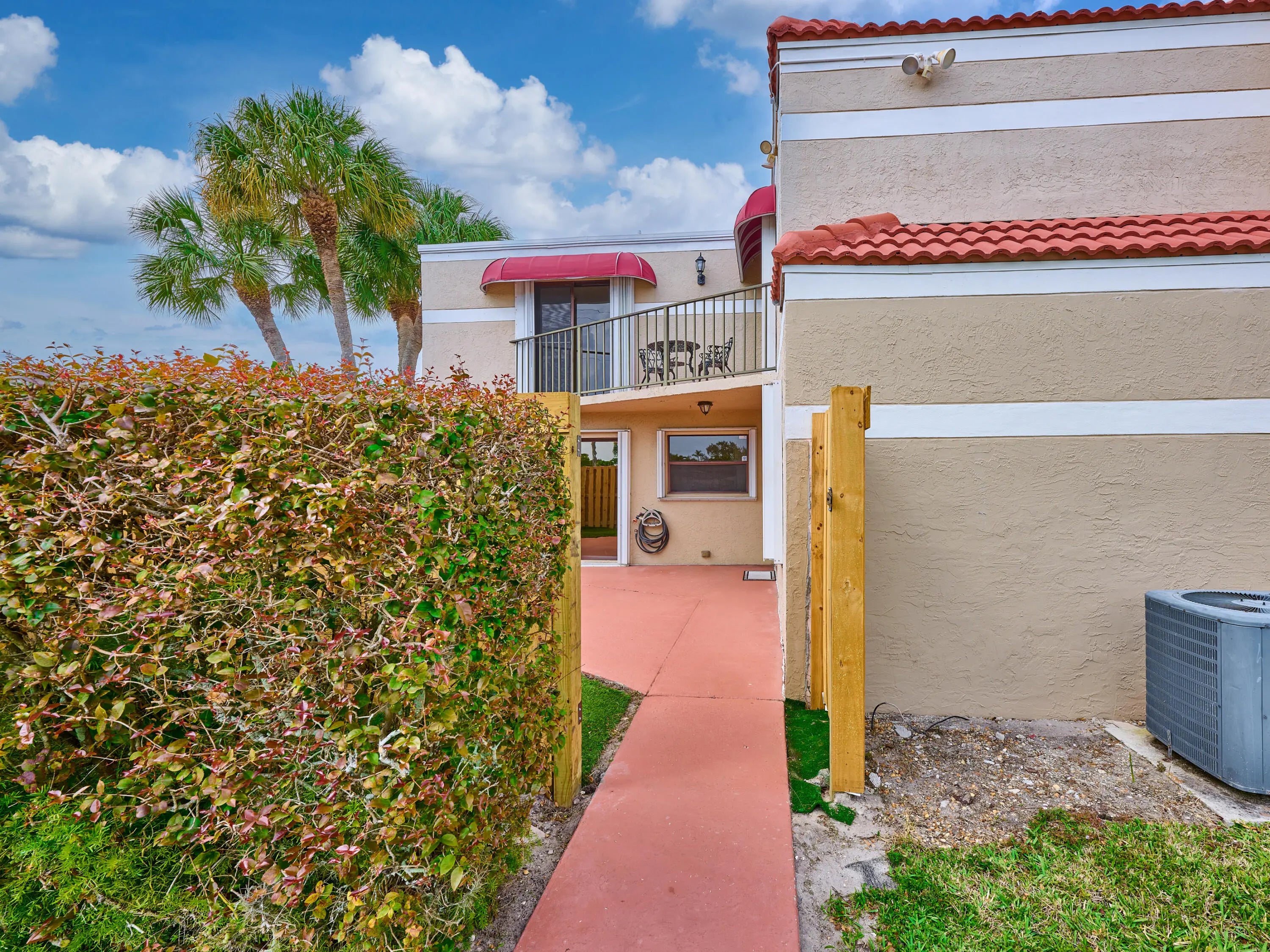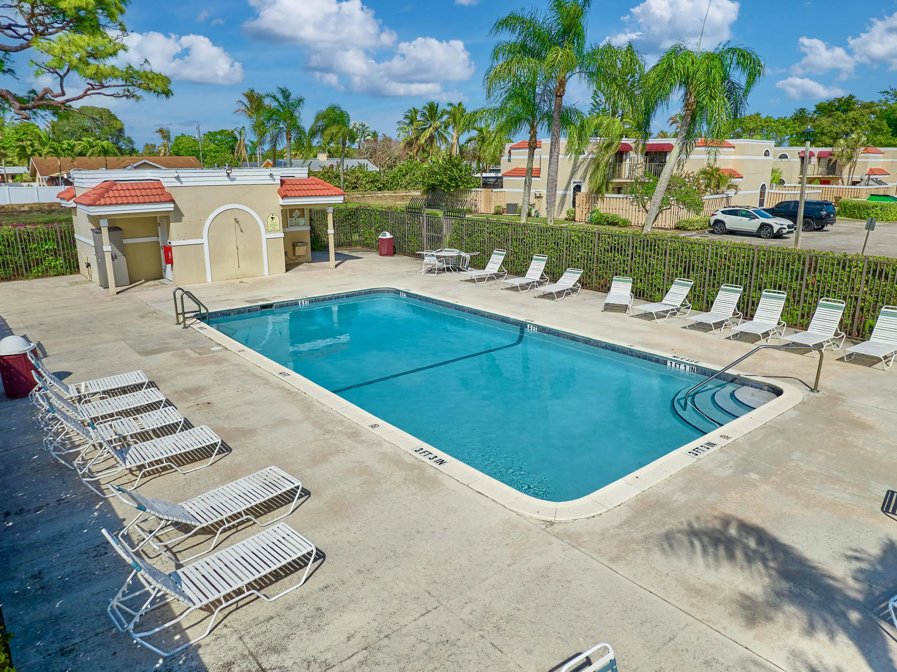 Move right into this spacious 3 bed, 3 bath townhouse in a prime Delray Beach location. The first floor offers great living space with tiled flooring, an updated kitchen with granite counters, breakfast bar, newer appliances and a bedroom with a FULL bath! The upstairs boasts laminate flooring with 2 suites, a laundry closet and a shared balcony. A new fence was recently installed around the private courtyard. There is decorative turf for low maintenance outdoor living. Each window has accordion shutters for peace of mind. The 2 closest parking spots are assigned to this townhouse. A new water heater was installed in 2025. Chateau Woods offers a 2 pool areas, Tennis court and is minutes to Beaches, Downtown Atlantic Ave, Shopping, Fine Dining & More!