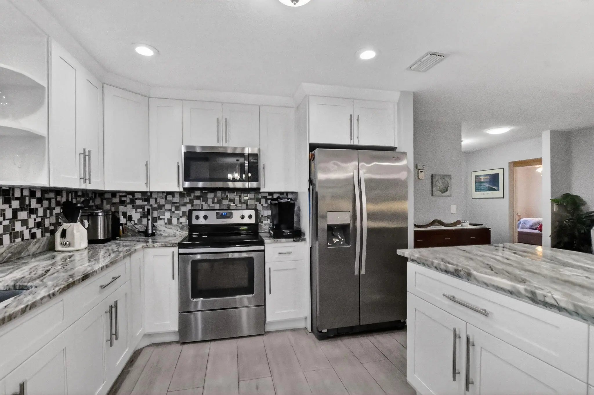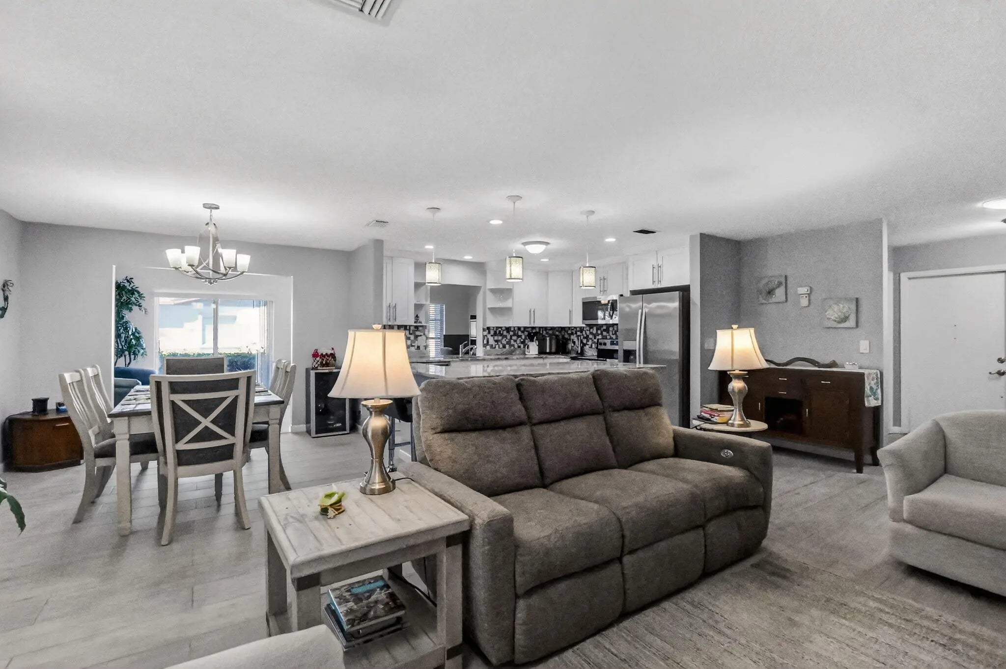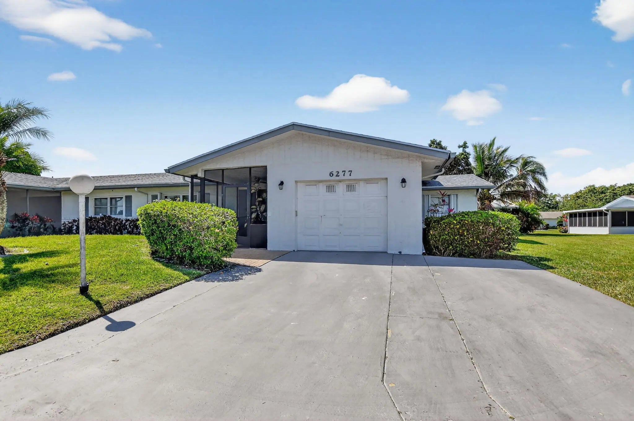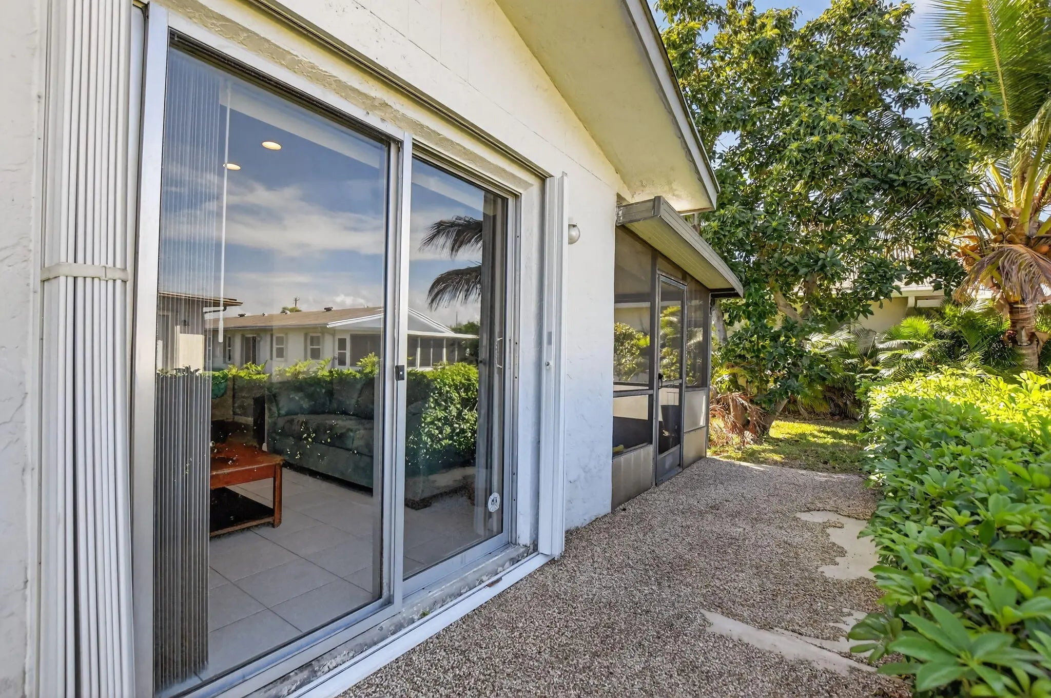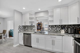 Welcome to this beautifully updated and remodeled villa adjacent to an oversized lot. Updated features include tile and laminate flooring throughout. Oversized kitchen island with quartz countertops, shaker cabinets, and stainless steel appliances. Both Bathrooms have been updated including a master walk in shower. This home has an oversized living area adjacent to the kitchen and dining area giving you an extra living area for work, entertaining or extra guest quarters. Both the back and front patios are screened and the entire home has accordion shutters for hurricane protection. This home has an extra wide driveway for ample parking and located adjacent to a wide lot providing with tremendous green space. Delray Villas is close to shopping, beaches, restaurants and downtown Delray.