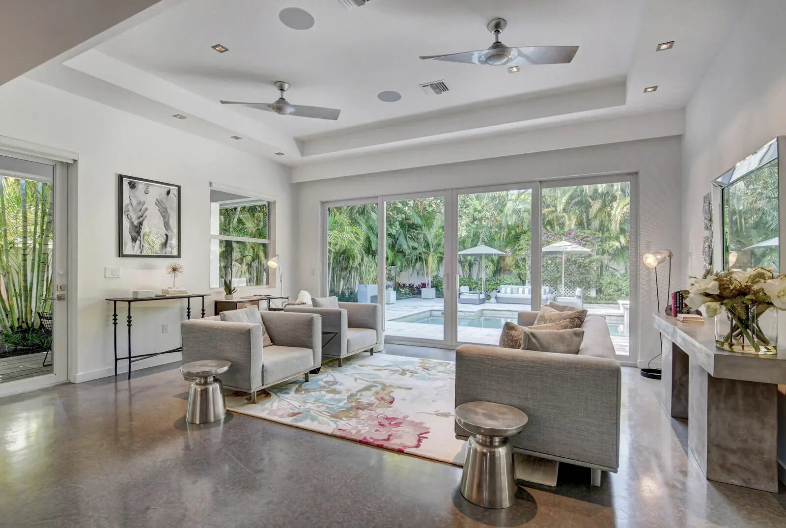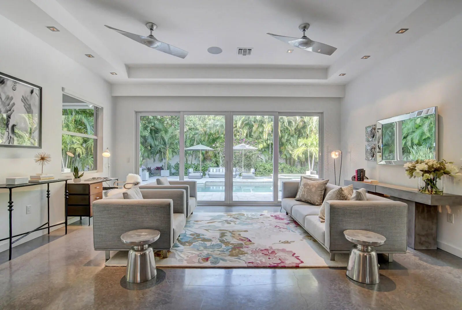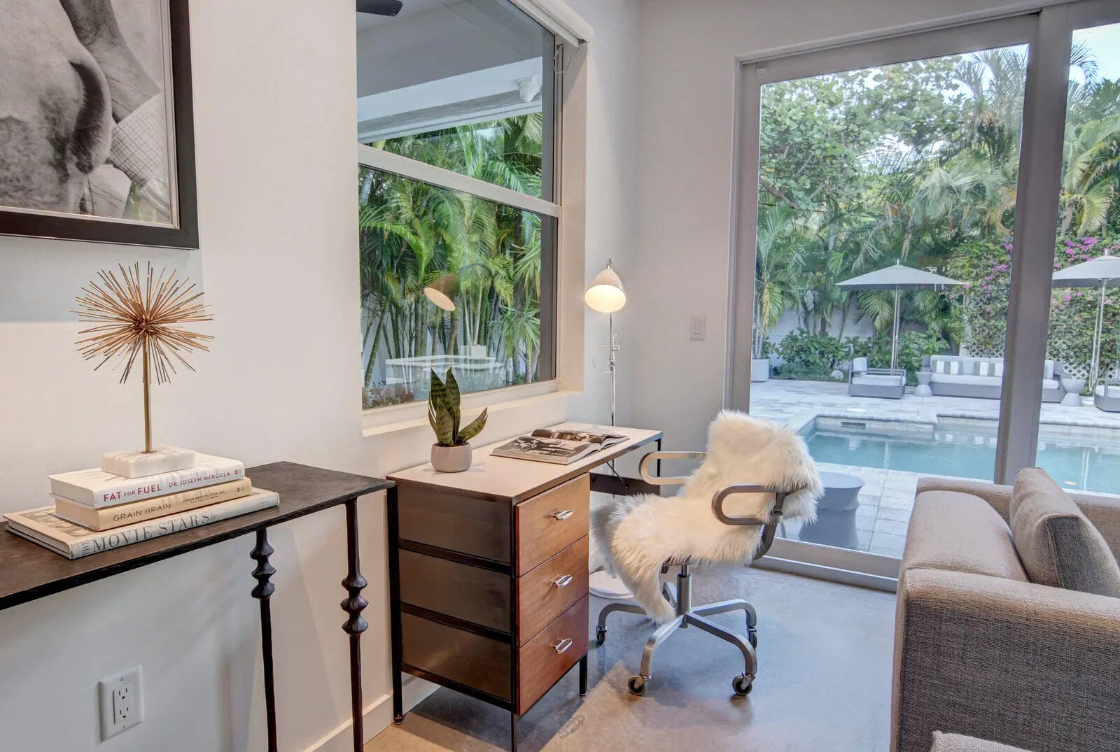 THIS STUNNING CONTEMPORARY HOME IS COMPLETELY RENOVATED! ENJOY TOP OF THE LINE APPLIANCES, A 5 BURNER GAS STOVE, ELECTRIC WINDOW TREATMENTS, CUSTOM LUTRON LIGHTING, BUILT-IN SOUND SYSTEM, SOFT TOUCH CABINETRY, QUARTZ COUNTERTOPS, HEATED SALT WATER POOL & SPA, OUTDOOR SHOWER, ALARM SYSTEM, STAINED CONCRETE FLOORING & MORE! THE FULLY FENCED LARGE BACKYARD IS LUSHLY LANDSCAPED WITH MATURE PALM TREES--PROVIDING EXCEPTIONAL PRIVACY! DINE AL FRESCO ON THE COVERED PATIO! BOTH BEDROOMS HAVE ELECTRIC BLACK-OUT SHADES. THE 1 CAR GARAGE & CIRCULAR PAVED DRIVEWAY ALLOW PARKING FOR 5 CARS! STYLISHLY & COMFORTABLY FULLY FURNISHED TURNKEY. A ''ZEN'' FEELING PERVADES THROUGHOUT THIS EXCEPTIONAL HOME! AVAILABLE OFF-SEASONALLY FROM 4/2/2026 UNTIL 11/30/2026. EXCEPTIONAL HOME, LOCATION, AND LANDLORD!