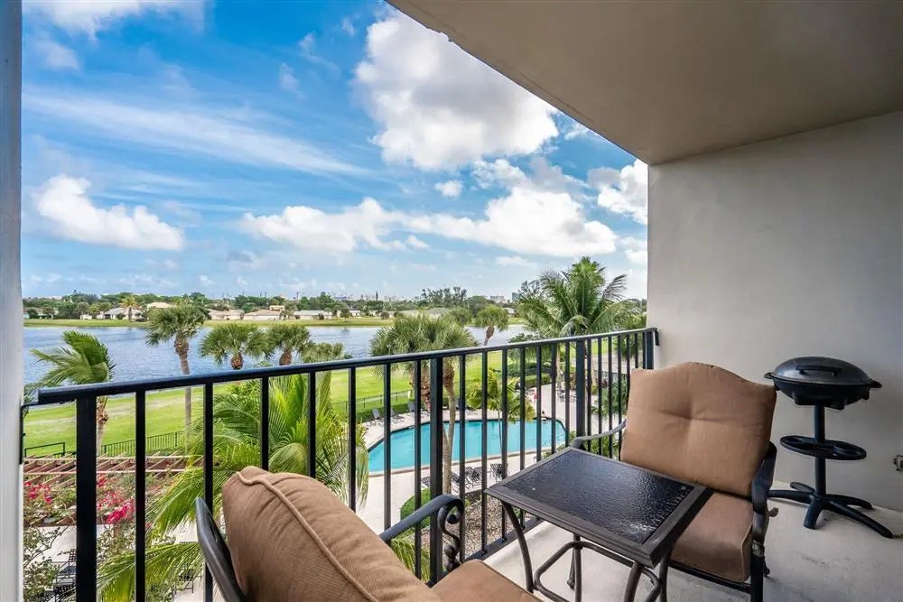 SHORT TERM RENTAL ONLY- Available only from 5/3 until 10/30. This fully furnished beautiful condo with spectacular pool side and lakeside views of Lake Magnolia comes with all the amenities in resort style living including large expanded outdoor balcony. Secured community entry, heated pool, fitness center, laundry facilities on all floors, clubhouse, and on site management. Laundry facilities on each floor.