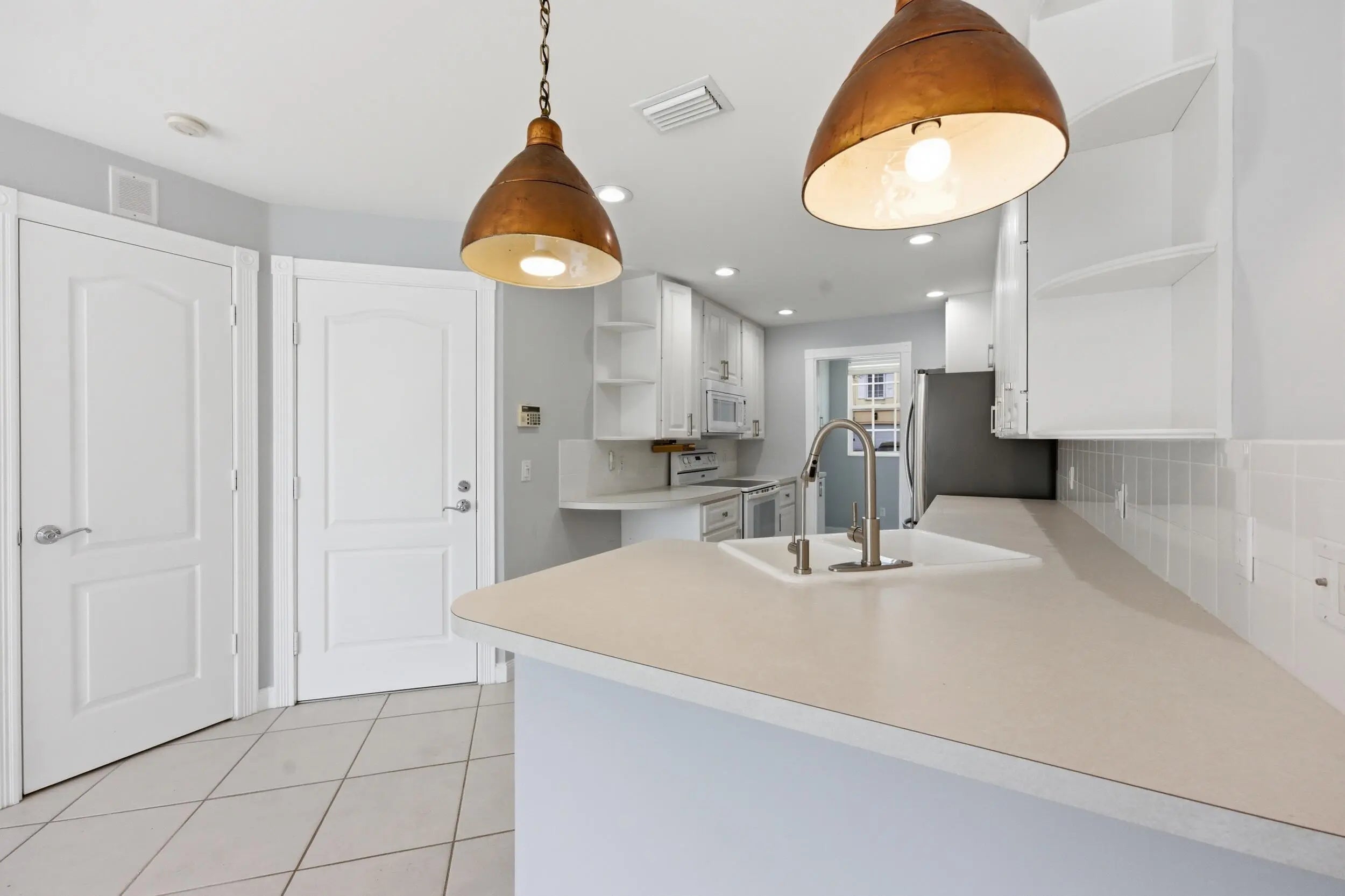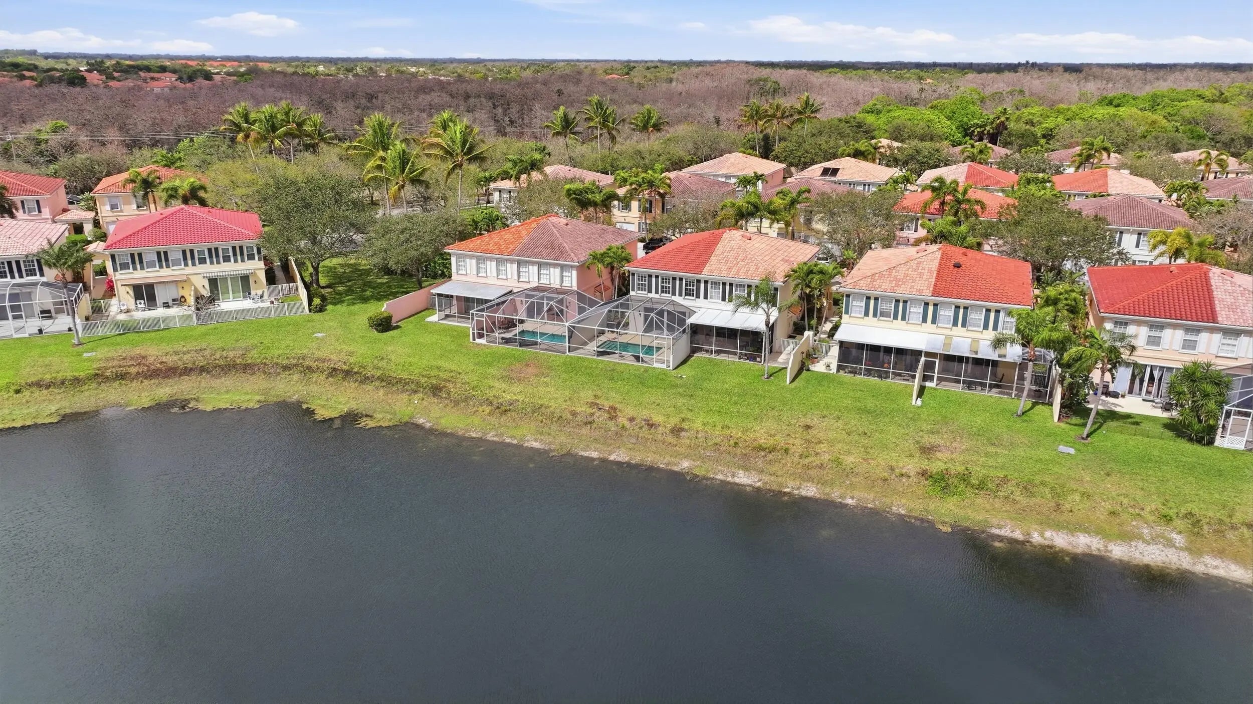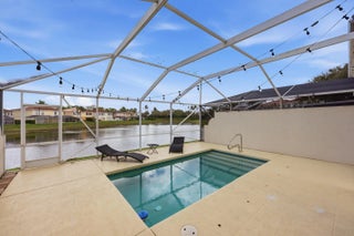 Welcome home to this freshly painted three bedroom, two and a half bathroom townhome with a one car garage and private lakefront pool, located in the desirable gated community of Riverwalk.As you approach the home, you'll immediately notice the meticulously maintained grounds and beautiful landscaping that make Riverwalk such a sought-after neighborhood.Step inside and you're welcomed by diagonally laid tile flooring that flows throughout the main living area. The spacious living room features custom built-ins and large sliding glass doors that open to your own private screened-in pool overlooking the lake, creating the perfect space for both relaxing and entertaining. The dining area sits just off the living room and is highlighted by an updated light fixture and decorative ceilin