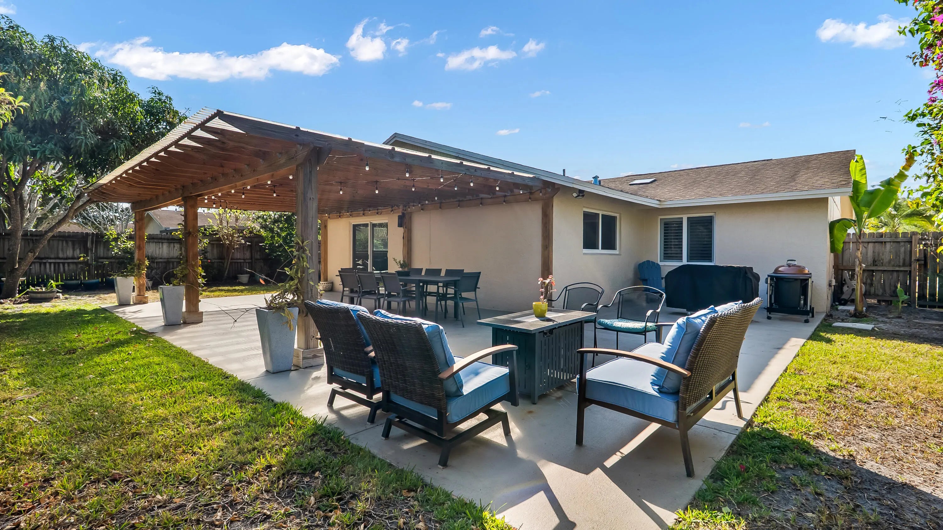 Rarely available 3-bedroom, 2-bathroom updated home in Saddlebrook in West Boca Raton. This bright, open floor plan is filled with natural light and features crown molding and upgraded LED kitchen lighting with a convenient night-light feature. The updated kitchen and bathrooms offer modern finishes throughout. Major improvements include roof (2020), impact windows throughout, hurricane-rated garage door (2021), water heater (2023), and A/C (2017) for added peace of mind. Enjoy outdoor living with a large covered pergola patio, spacious entertaining area, and fully fenced yard. Located in an excellent A-rated school zone with a low HOA and the ability to rent right away, making this home ideal for both homeowners and investors. Near dining, shopping and places of worship.